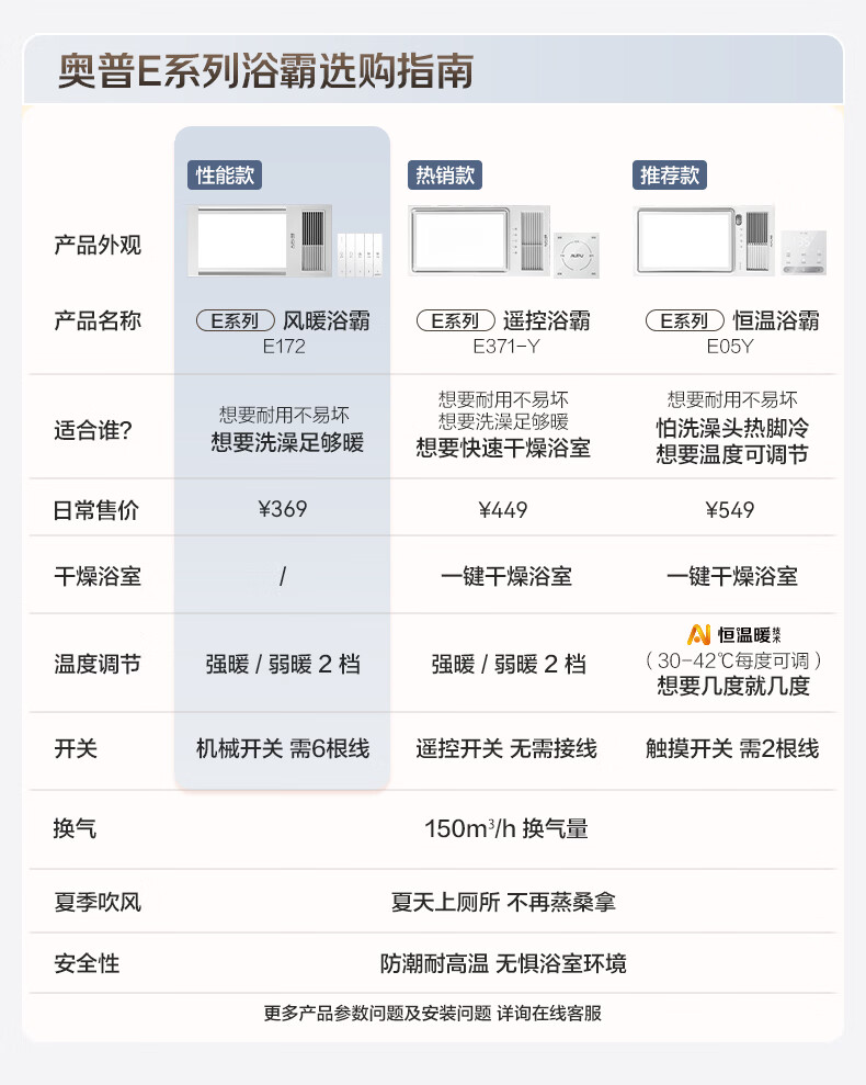 奥普(AUPU)风暖浴霸E系列 纤薄机身 强弱风暖 大照明 E172适配集成吊顶