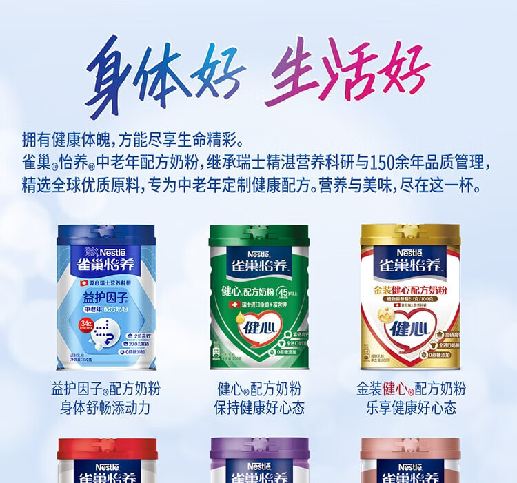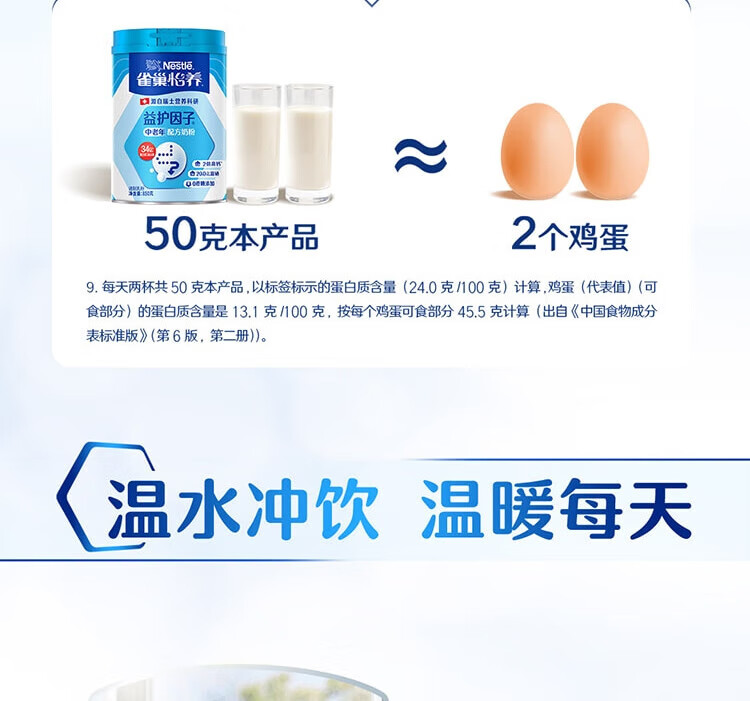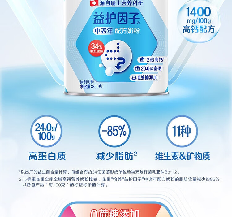 雀巢(Nestle)怡养中老年成人高钙奶粉850g*2罐礼盒装无蔗糖含益护因子益生菌