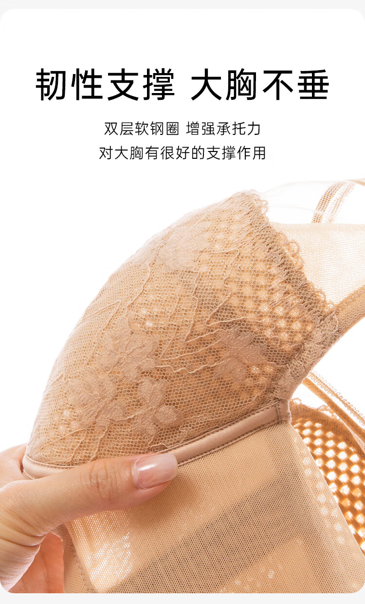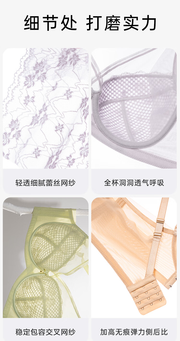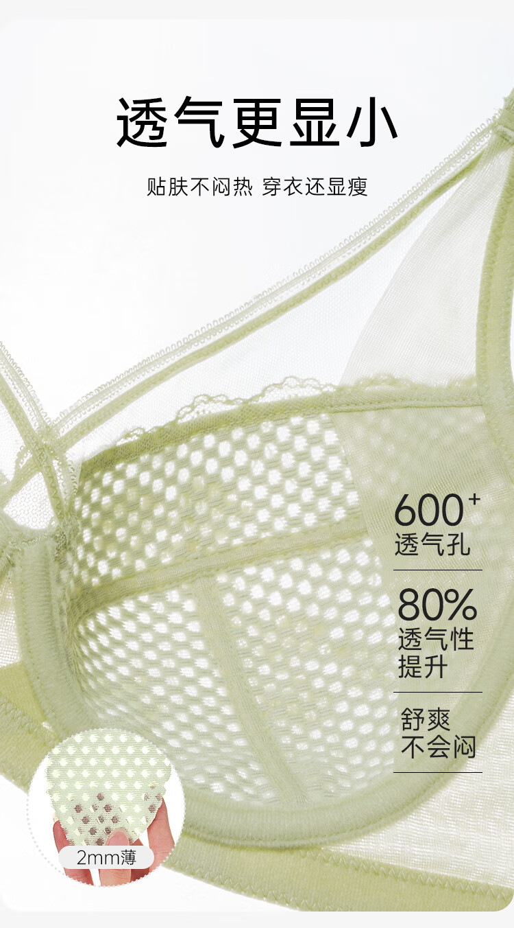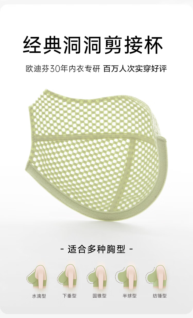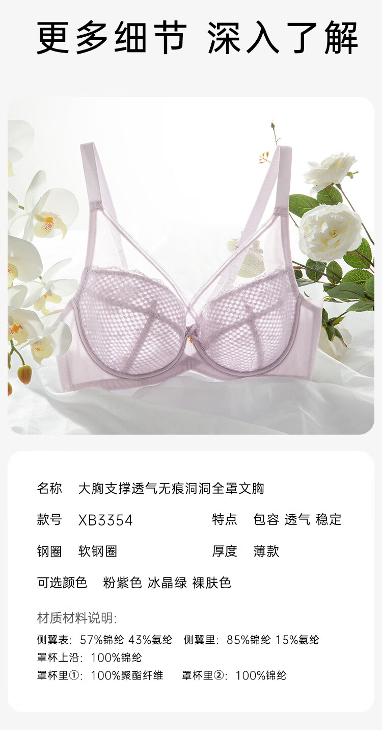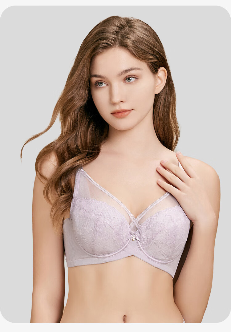 欧迪芬内衣女薄款透气文胸大胸显小全罩包容软钢圈支撑上托洞洞杯胸罩 粉紫色 80C