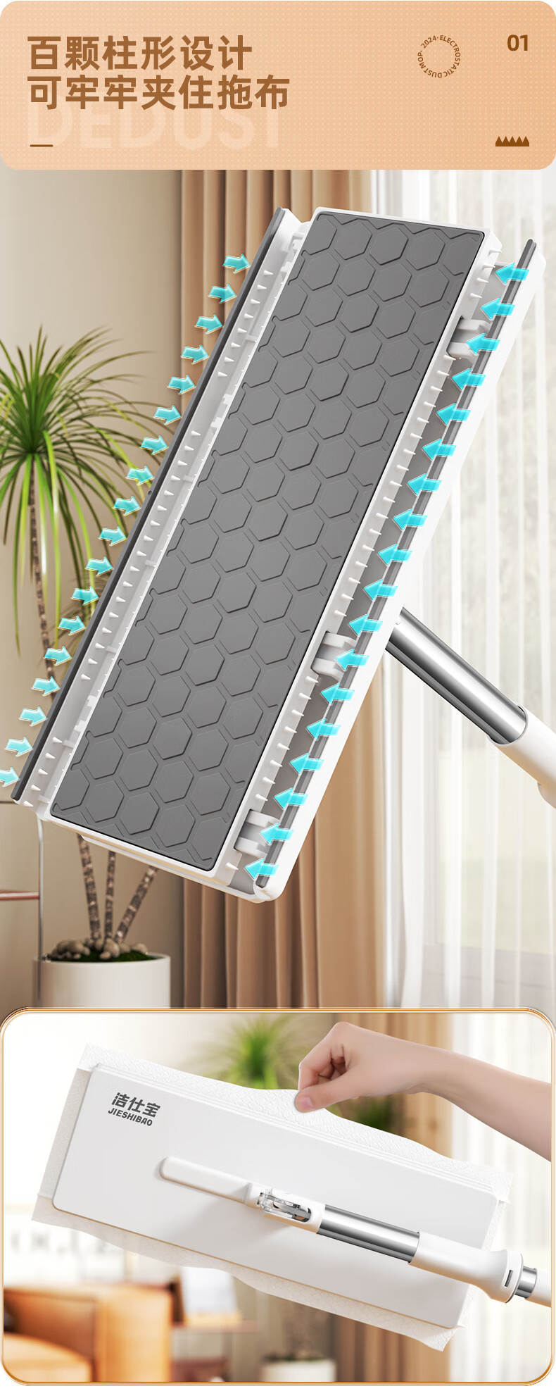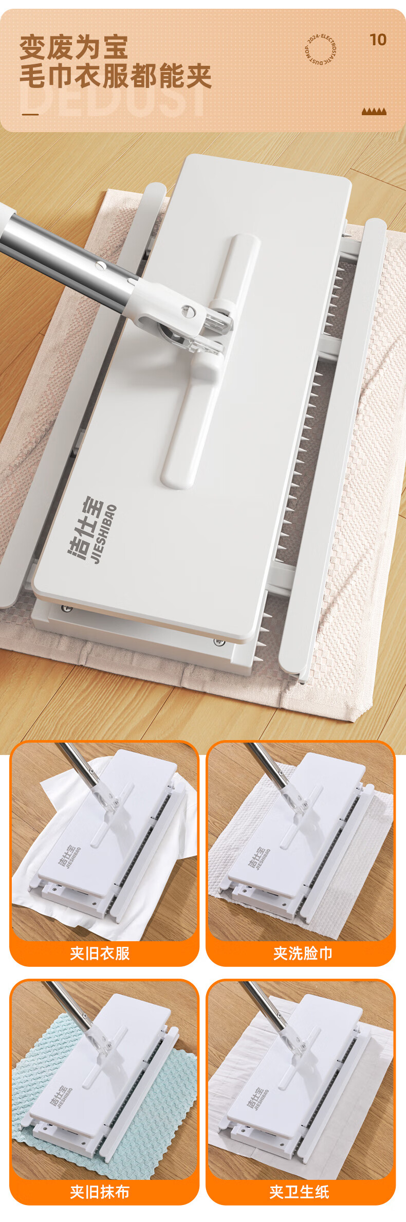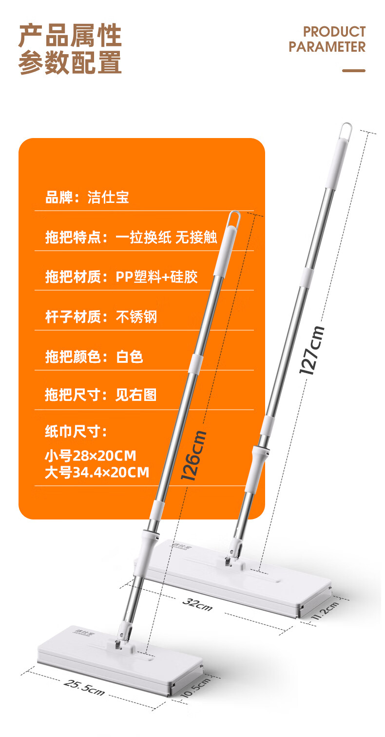 洁仕宝自动夹布拖把洗脸巾懒人拖把新款静电除尘纸大号加长一次性拖把 【洗脸巾拖把32cm】单拖把