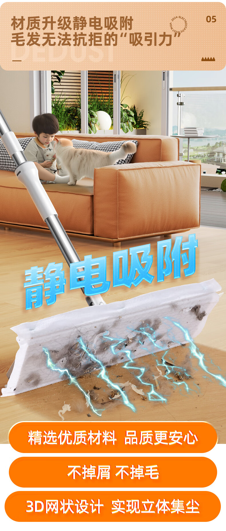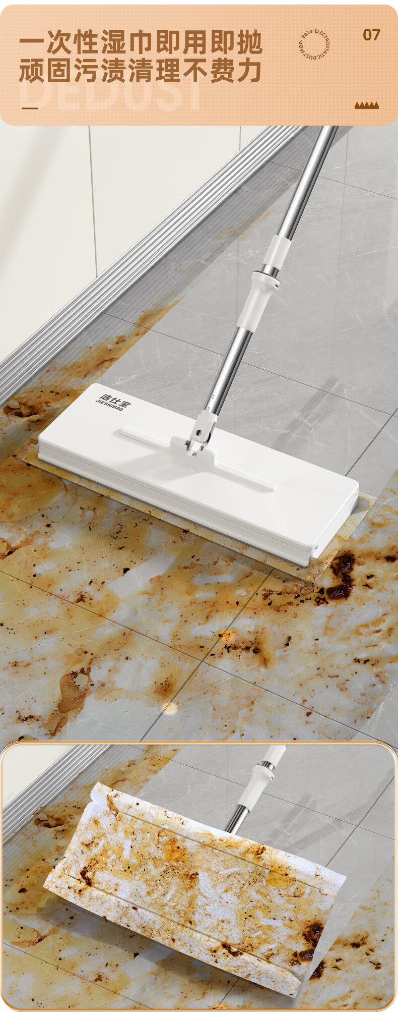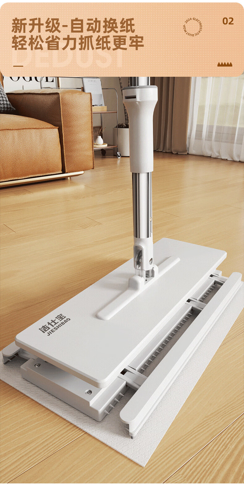 洁仕宝自动夹布拖把洗脸巾懒人拖把新款静电除尘纸大号加长一次性拖把 【洗脸巾拖把32cm】单拖把