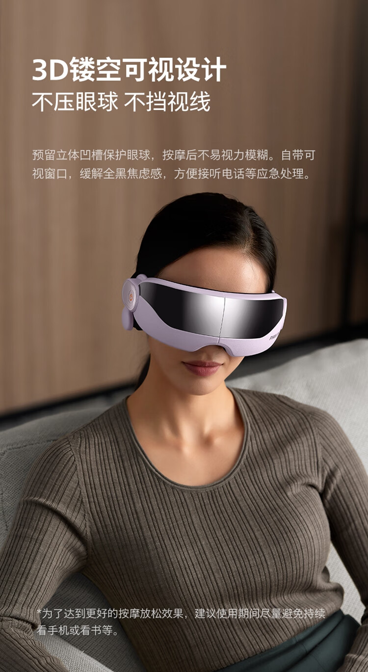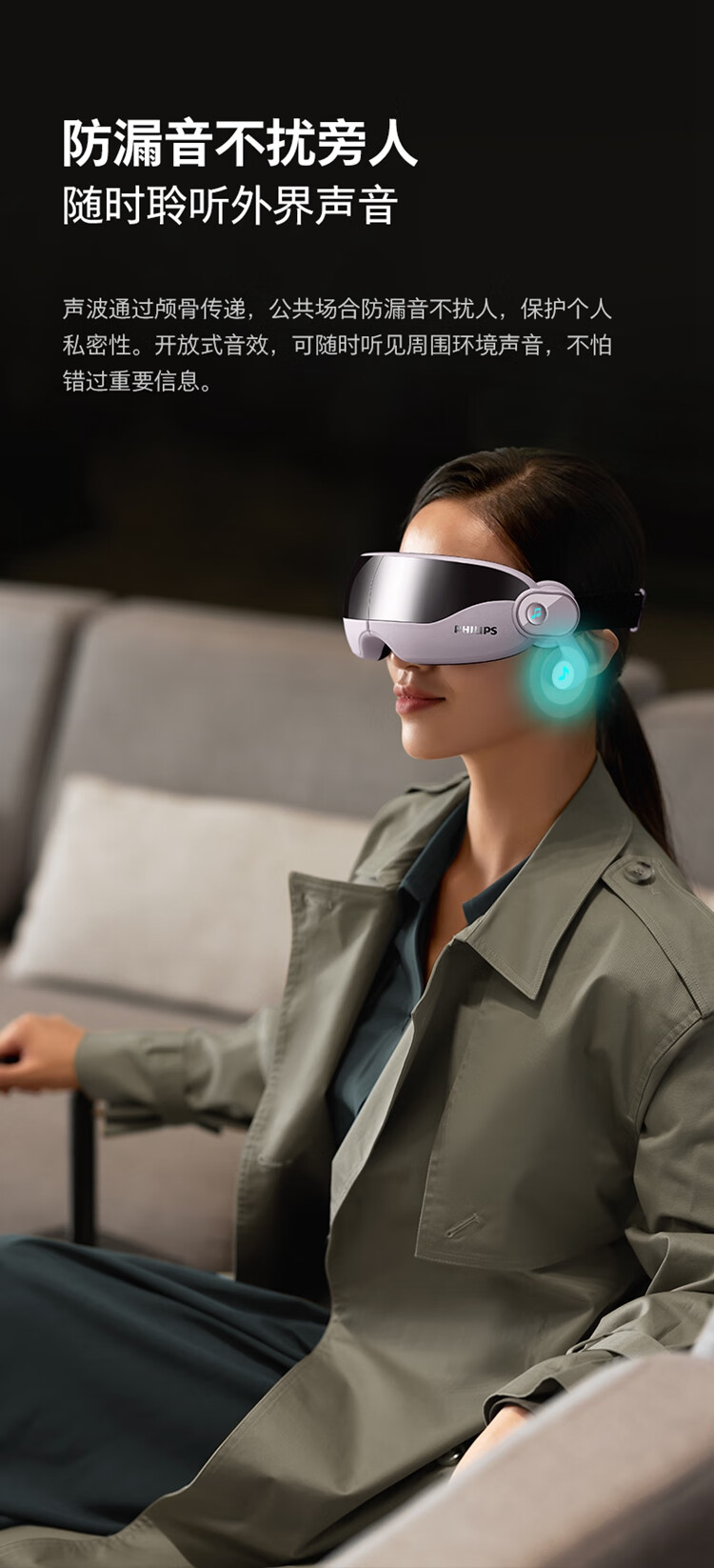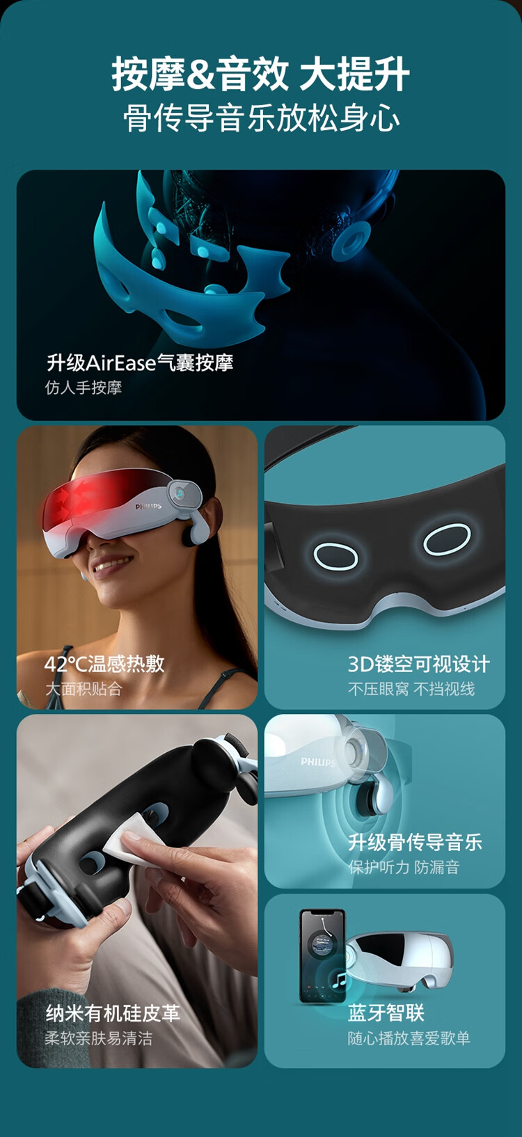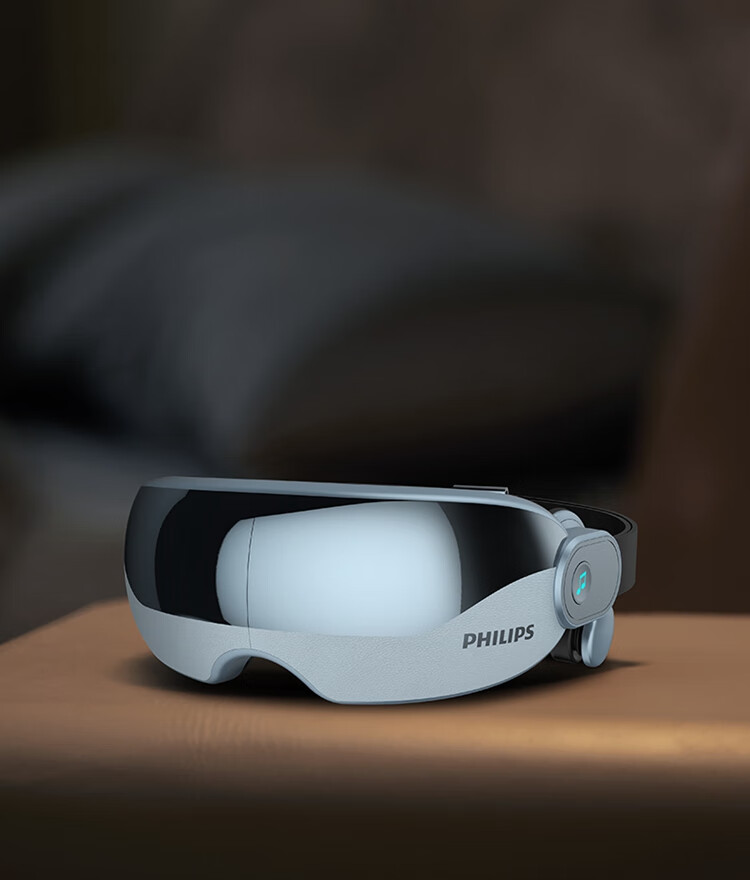 飞利浦(PHILIPS)眼部按摩仪 睡眠眼罩按摩器热敷护眼仪眼周揉按【音乐骨传导】送男女友生日元旦新年礼物7102E浅蓝
