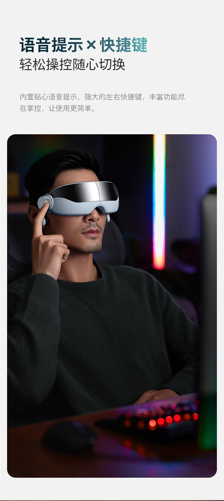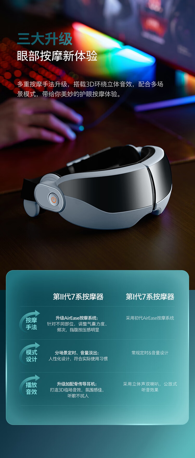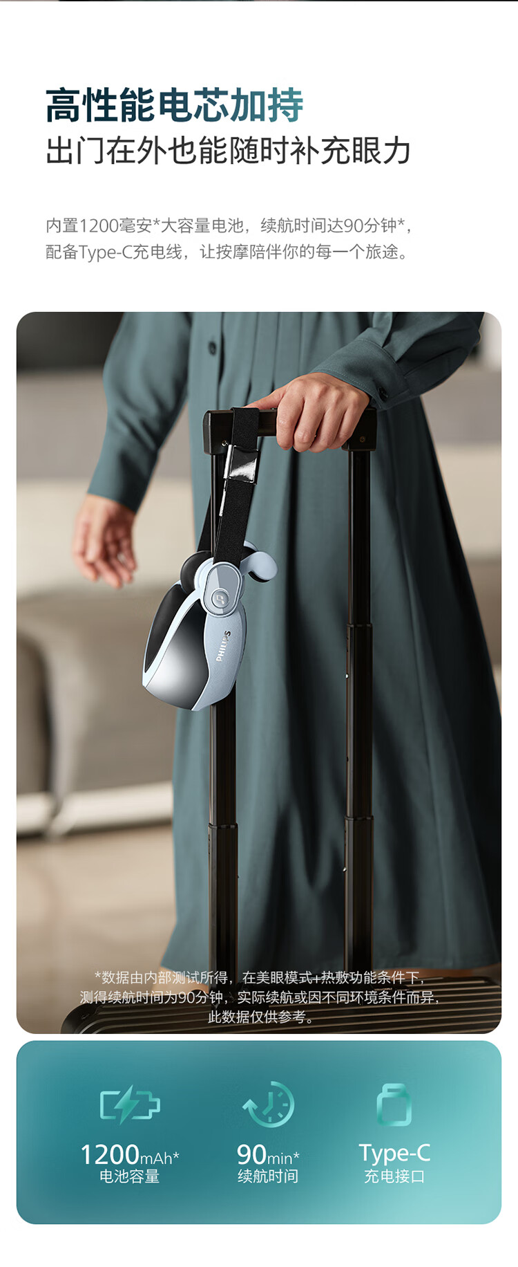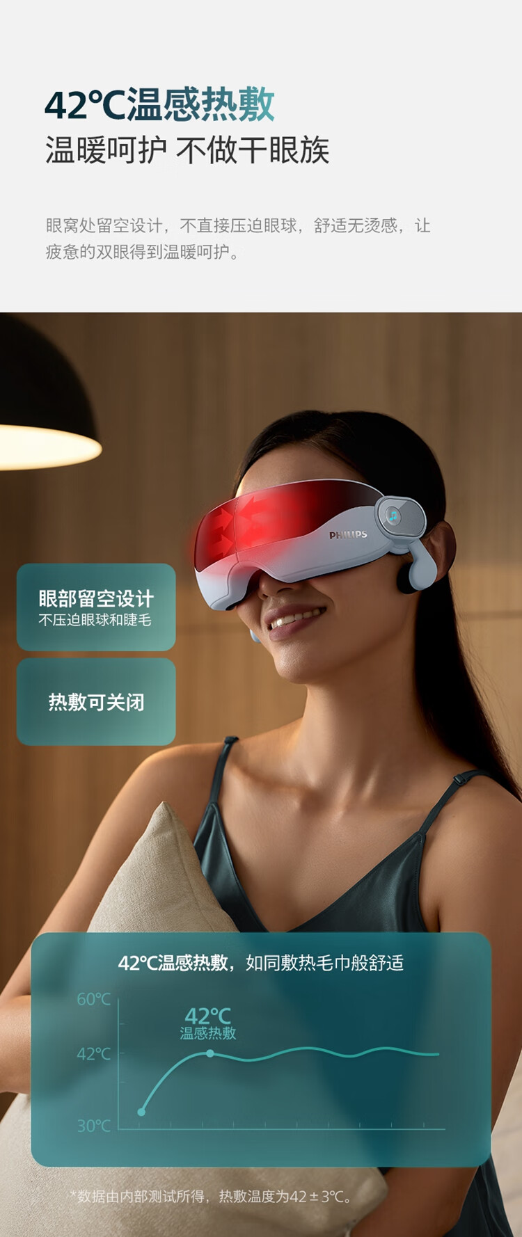 飞利浦(PHILIPS)眼部按摩仪 睡眠眼罩按摩器热敷护眼仪眼周揉按【音乐骨传导】送男女友生日元旦新年礼物7102E浅蓝