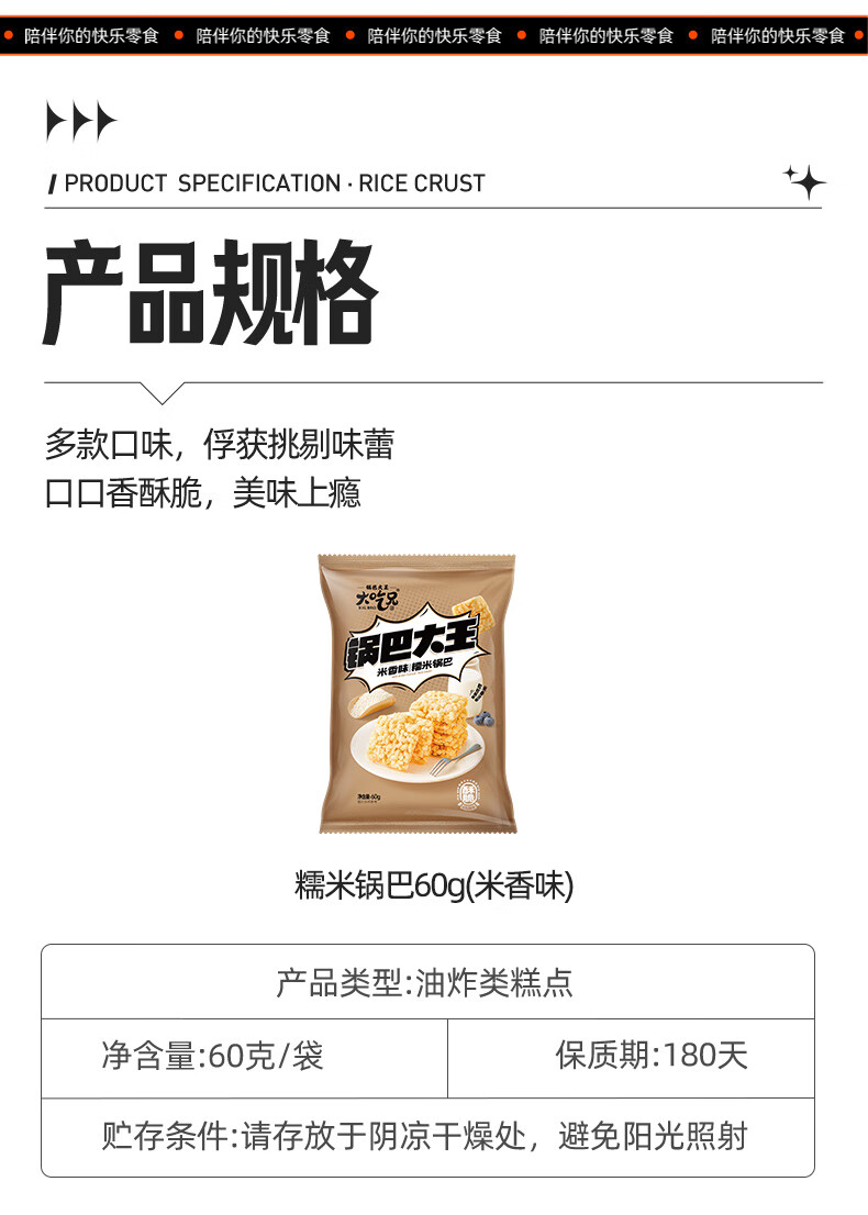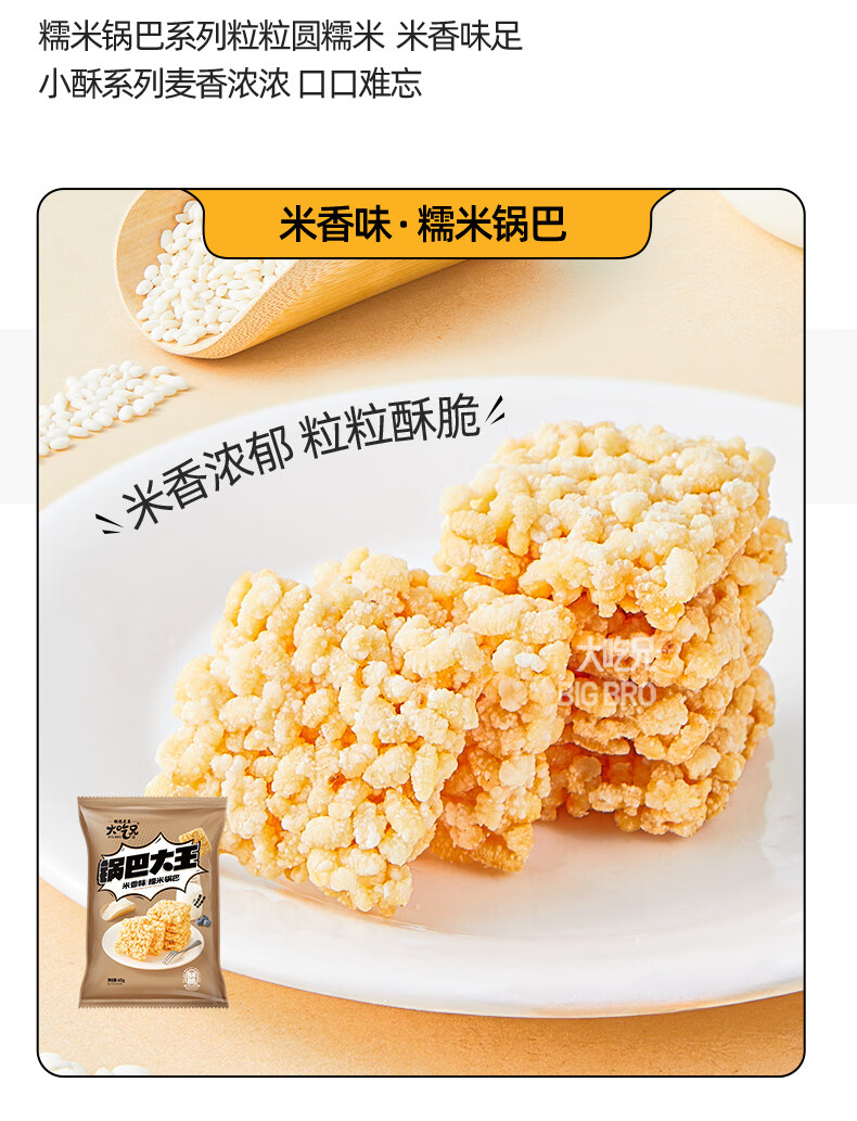 粮悦(LIRAY)大吃兄糯米锅巴 休闲零食同年怀旧踏青网红风味小吃独立包装特产 米香味锅巴 60g*9袋