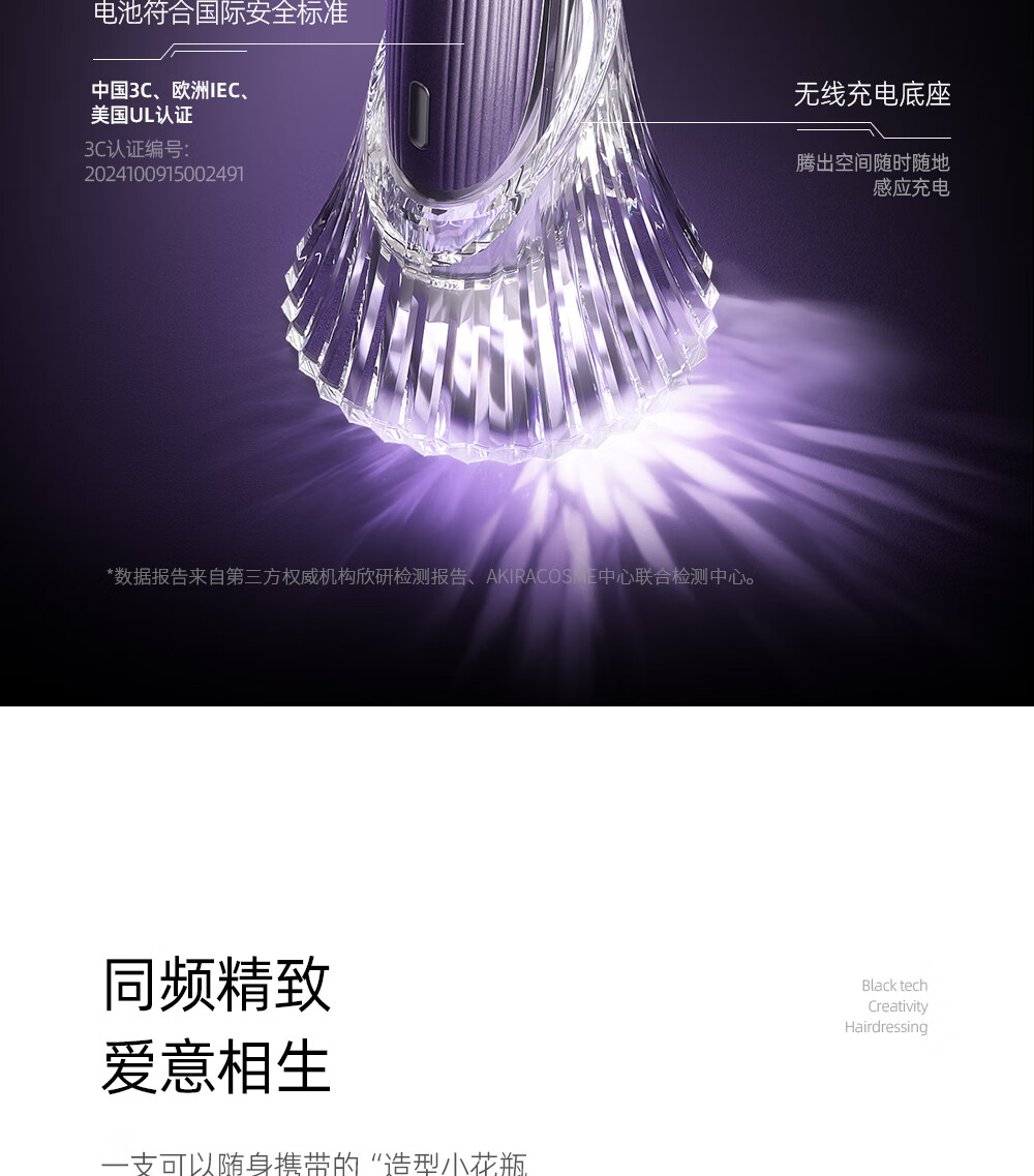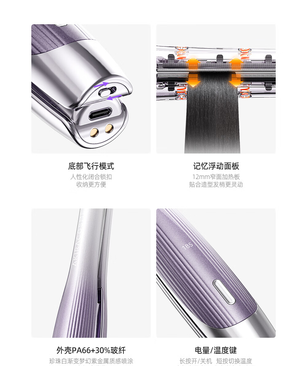 AKiracosme爱极拉直板夹无线迷你自动卷发棒小功率卷直两用负离子轻巧便携速热刘海直发器【新年春节礼物】 鎏光白【卷直两用】