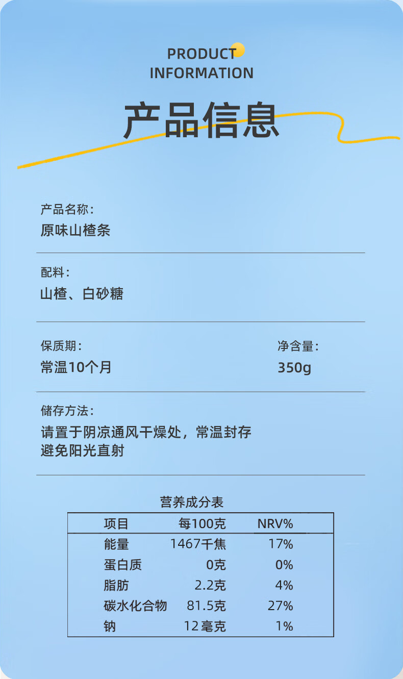 金晔 0添加剂休闲零食 蜜饯果脯 原味山楂条350g/袋