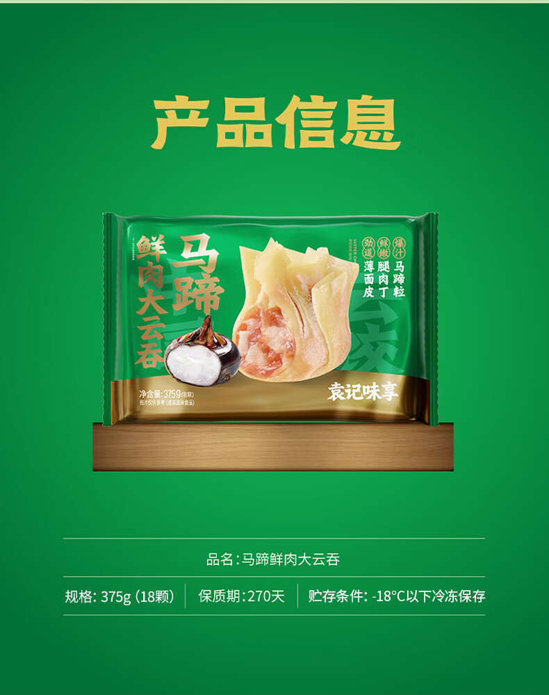 袁记味享袁记云饺 马蹄鲜肉大云吞375g 18颗 早餐夜宵馄饨云春节也送货