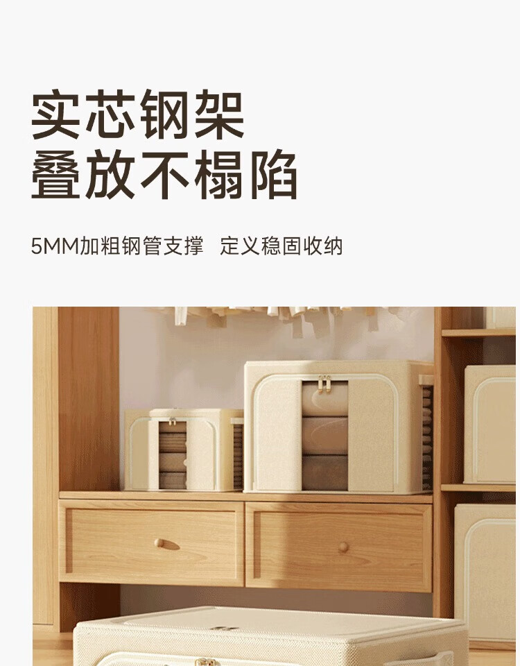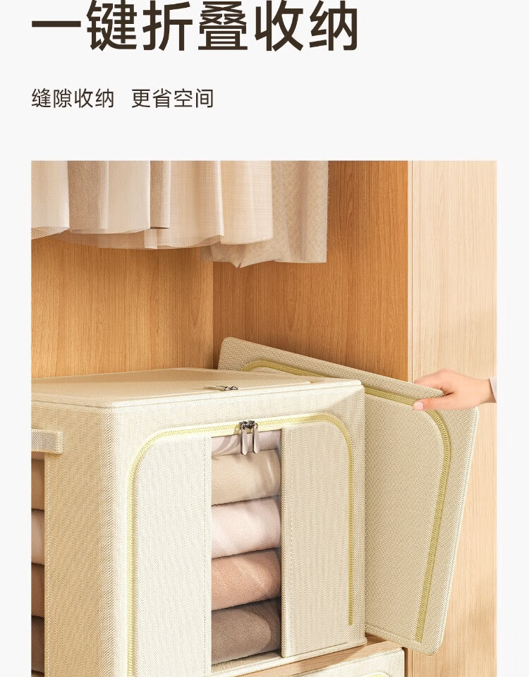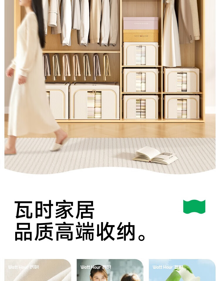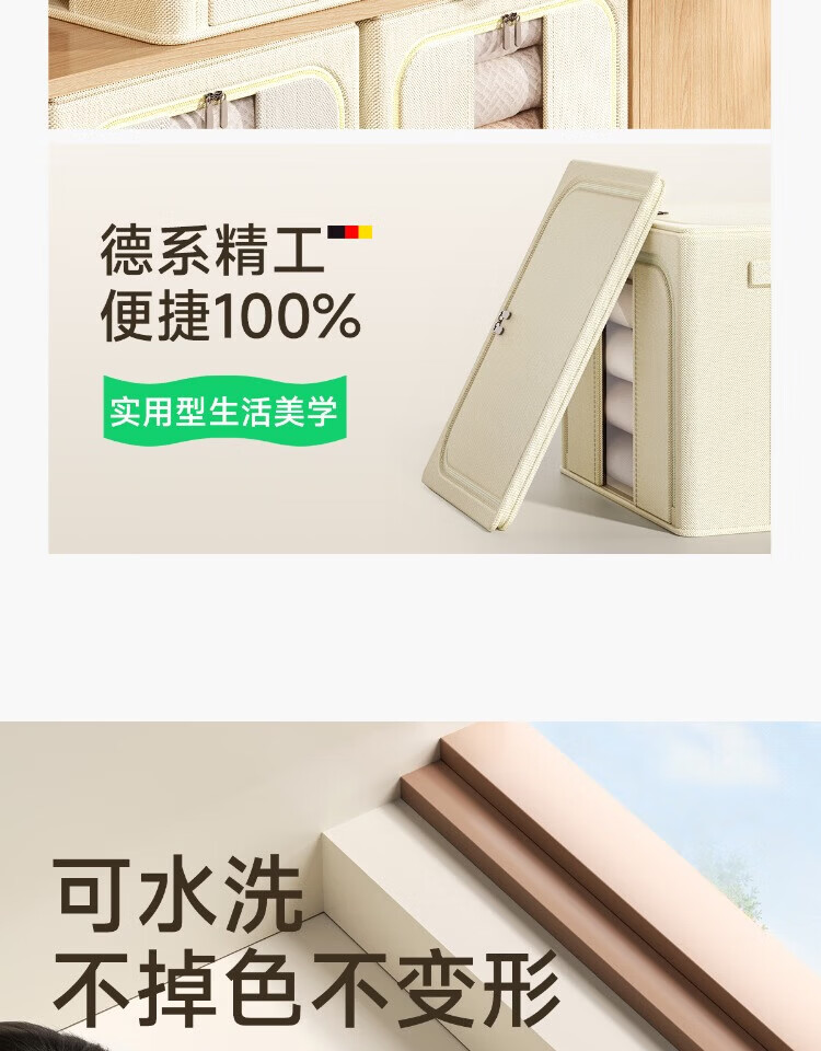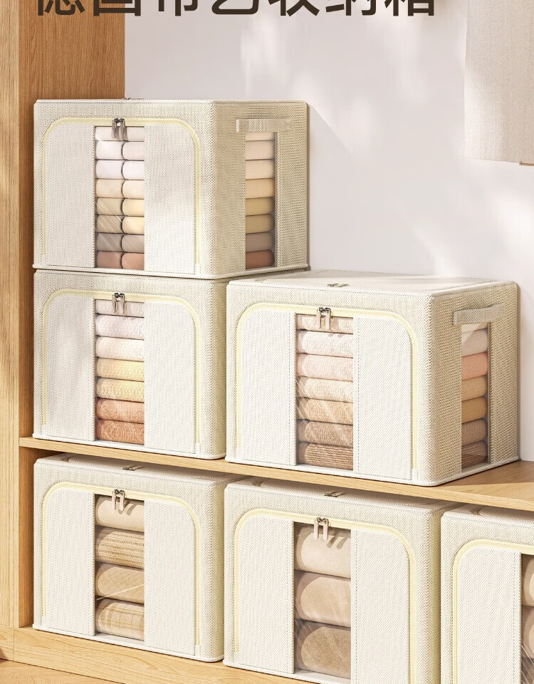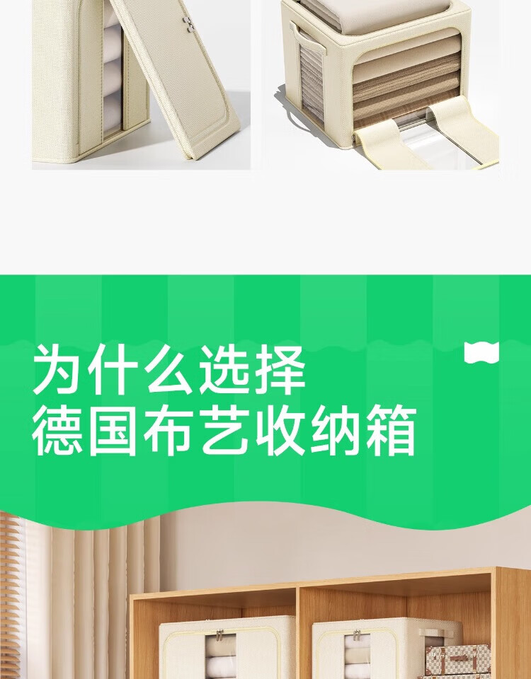 瓦时衣服收纳箱布艺可折叠储物箱可水洗多功能整理箱衣柜收纳筐无异味 德国升级米白色24L【实测可收纳25-30件春秋衣物】 抗压-加厚-耐磨