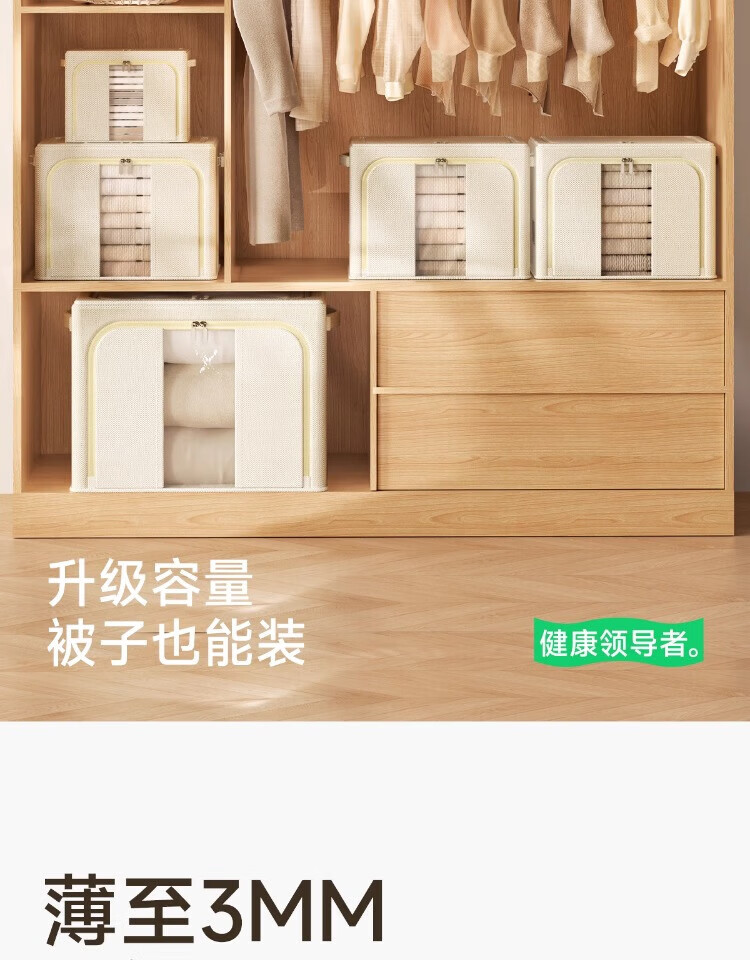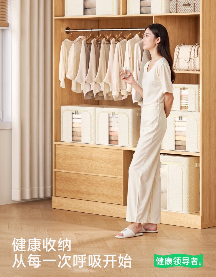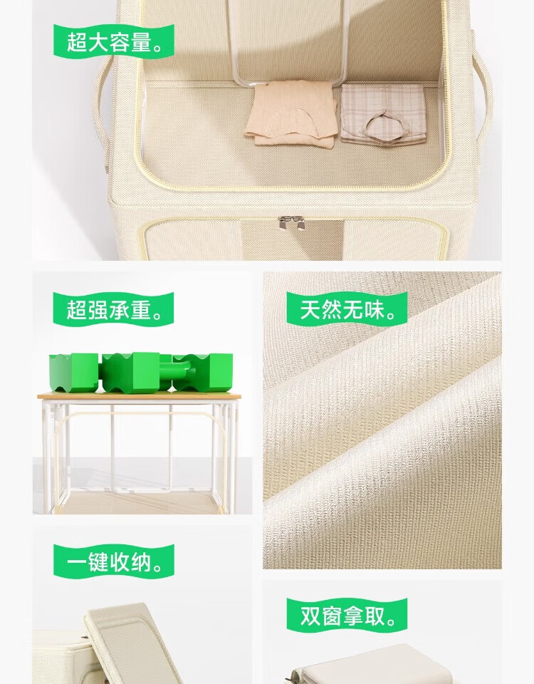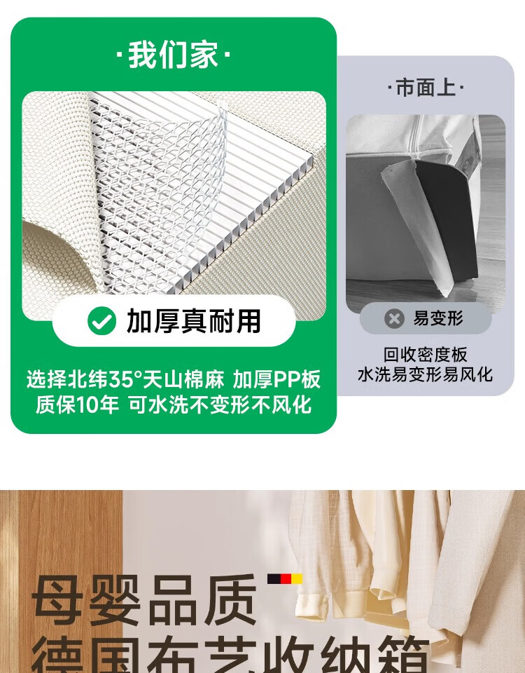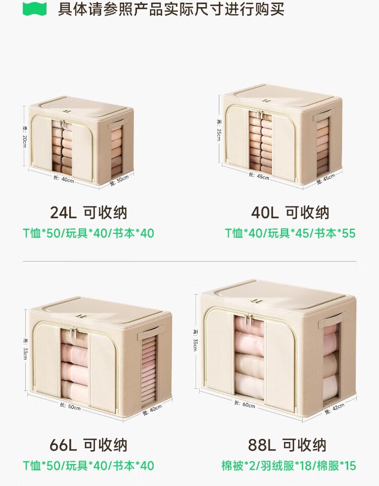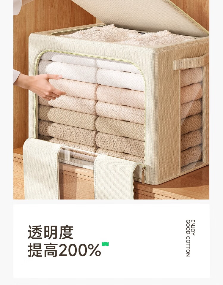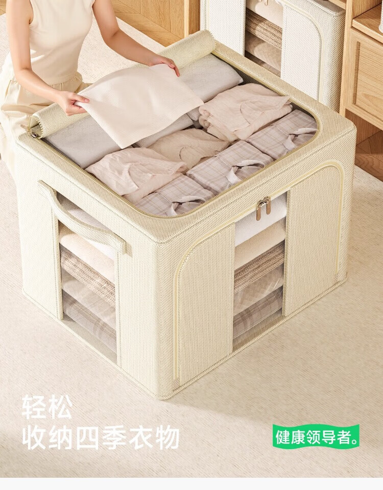 瓦时衣服收纳箱布艺可折叠储物箱可水洗多功能整理箱衣柜收纳筐无异味 德国升级米白色24L【实测可收纳25-30件春秋衣物】 抗压-加厚-耐磨