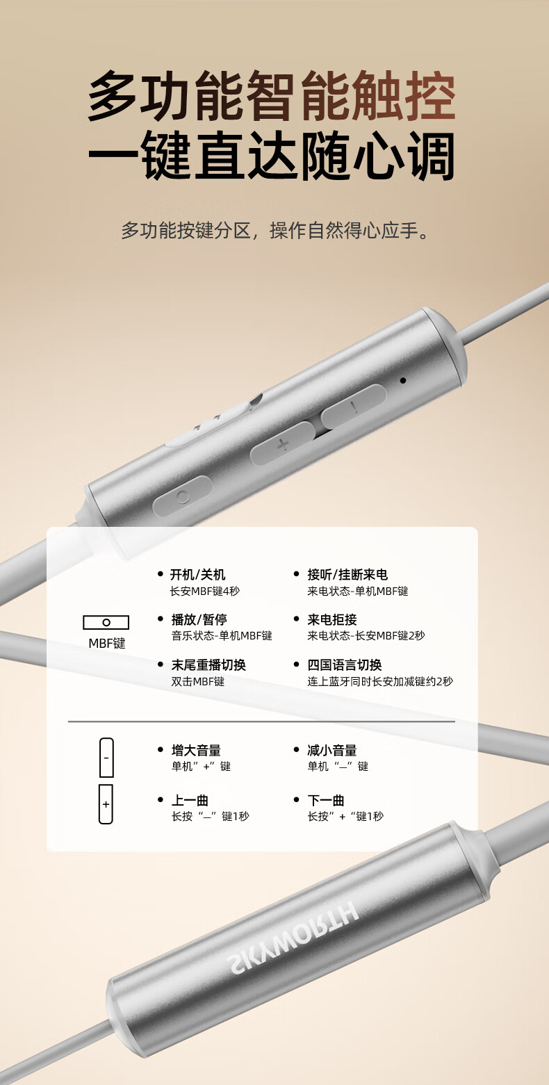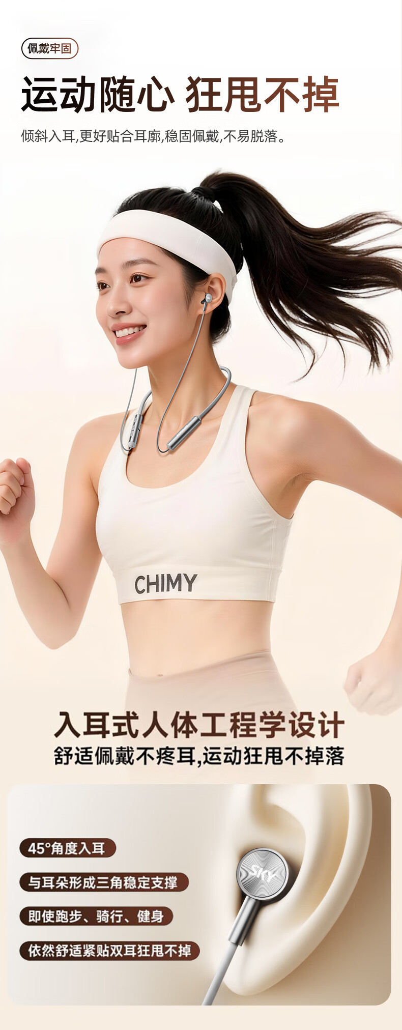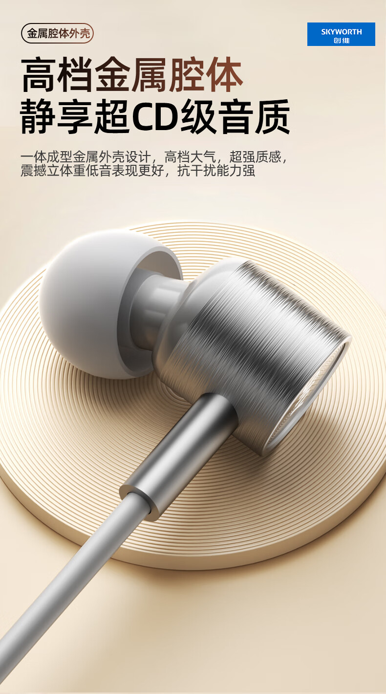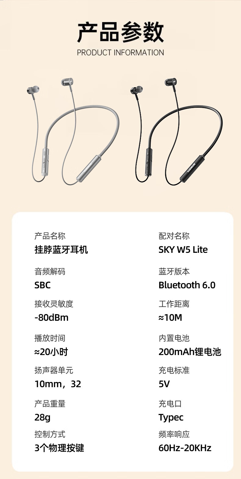 创维(Skyworth)重磅首发丨千元级音质】W5 Lite银色 蓝牙耳机挂脖式颈挂式无线大电量待机运动降噪挂耳式新年送礼