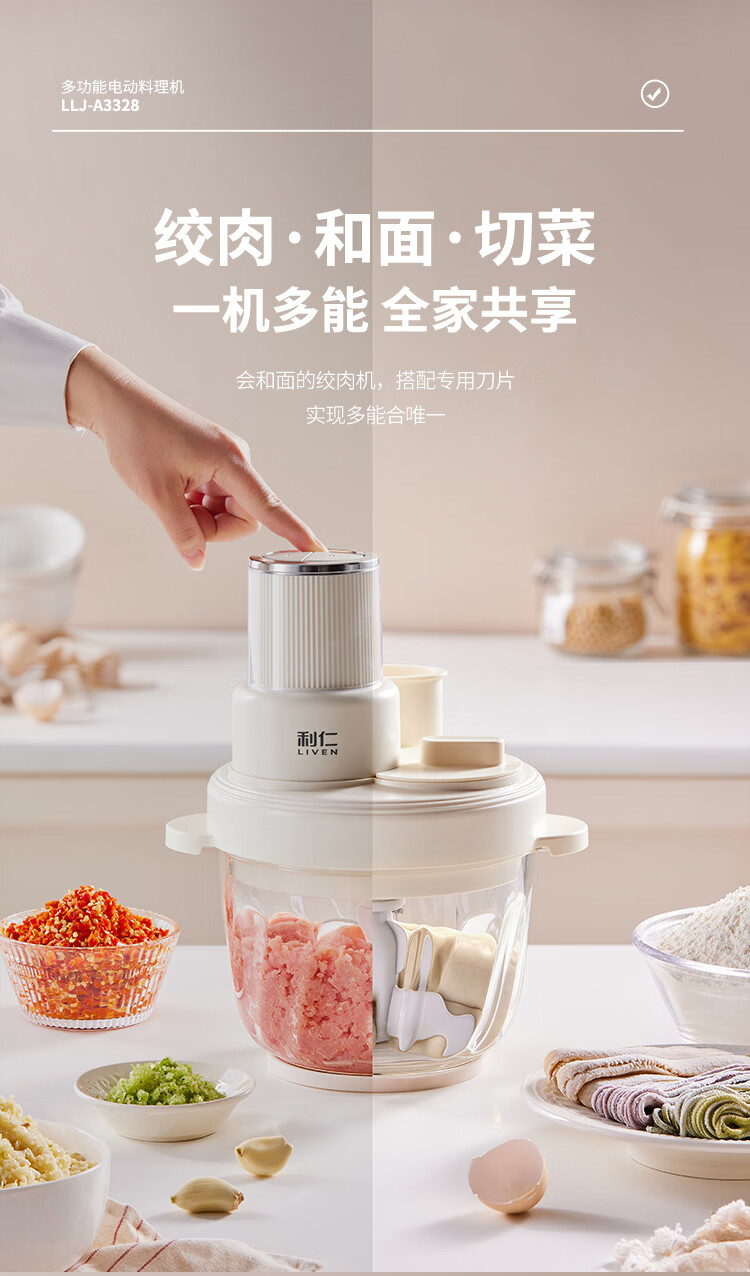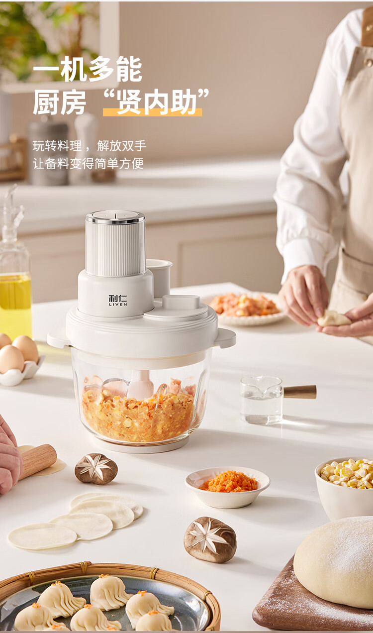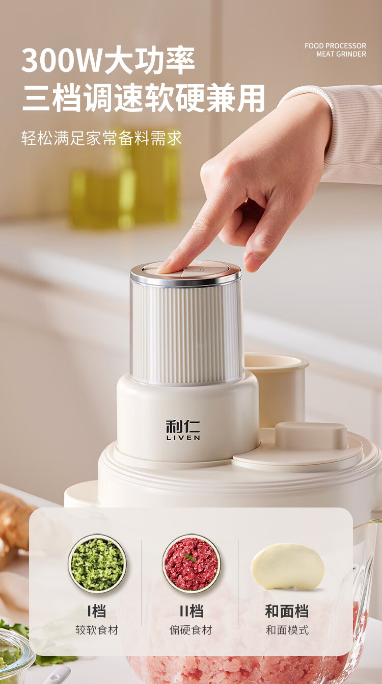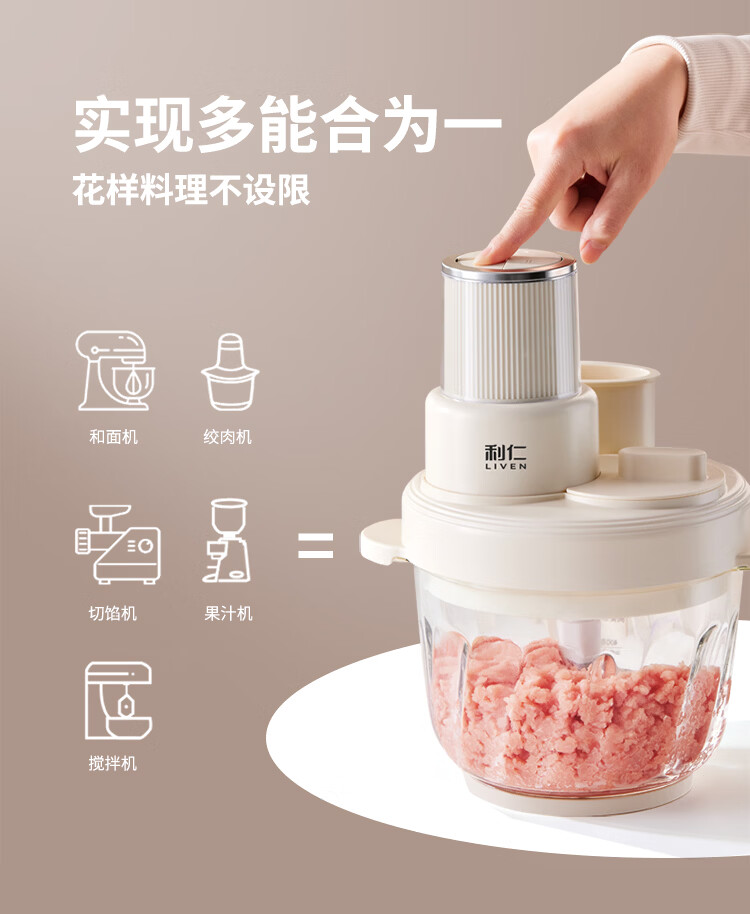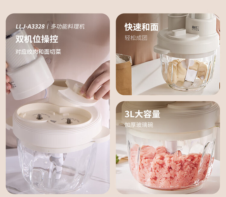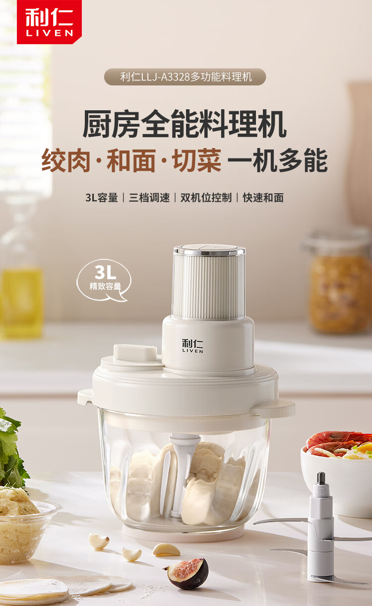 利仁(Liven)绞肉和面一体机2026新品家用绞馅和面机绞菜机切菜器三档饺子肉馅机多功能辅食机3L容量 LLJ-A3328