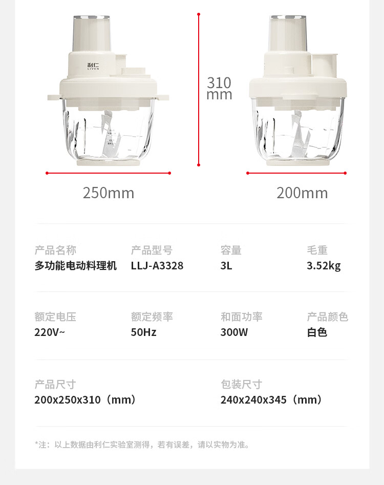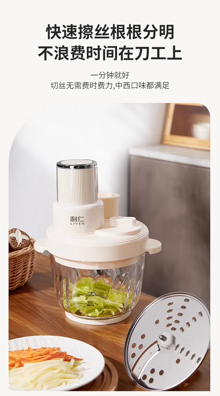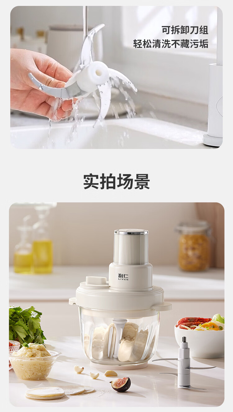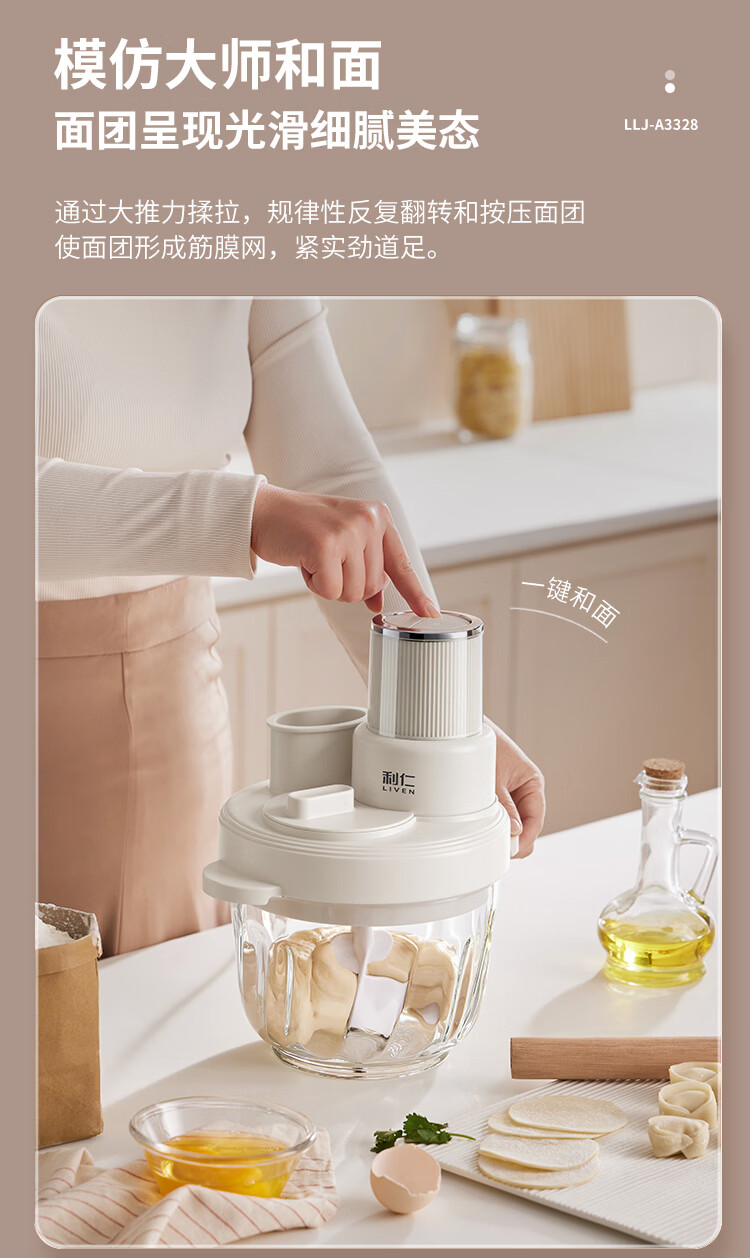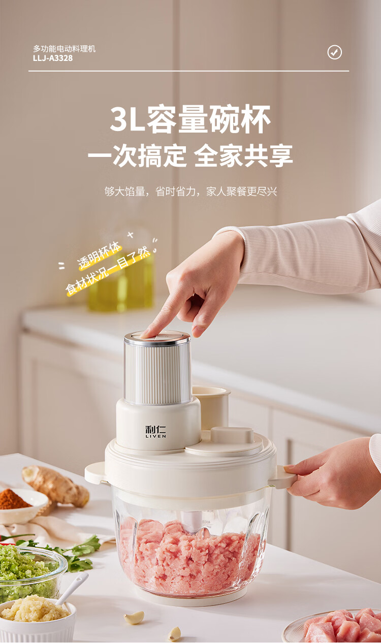 利仁(Liven)绞肉和面一体机2026新品家用绞馅和面机绞菜机切菜器三档饺子肉馅机多功能辅食机3L容量 LLJ-A3328