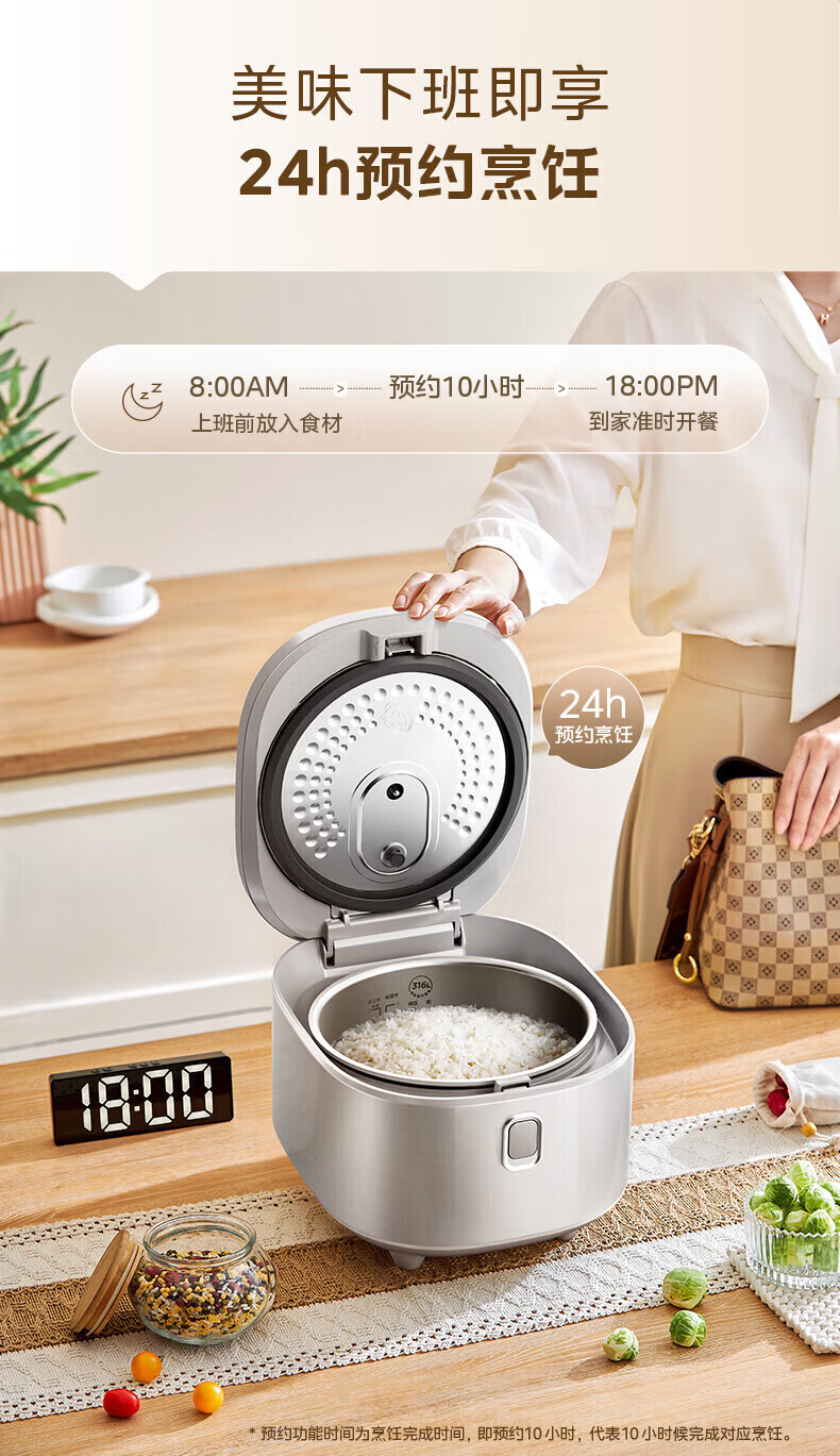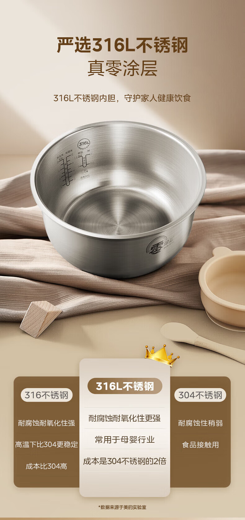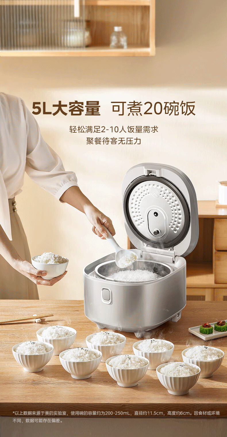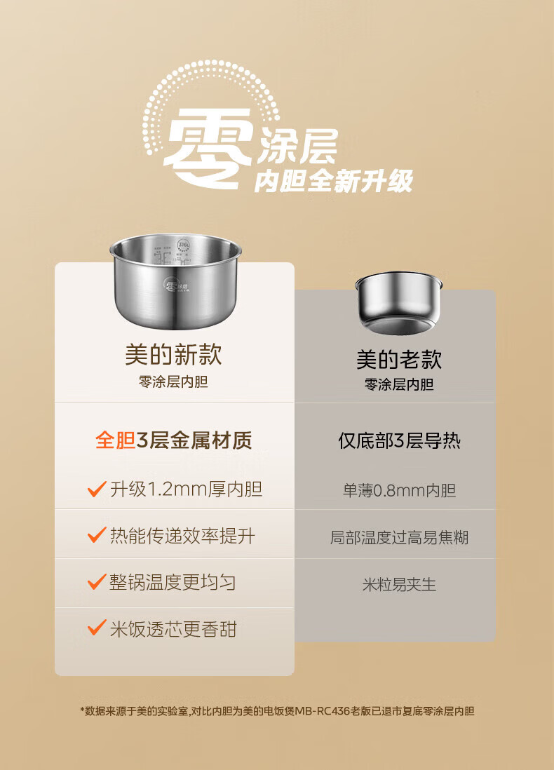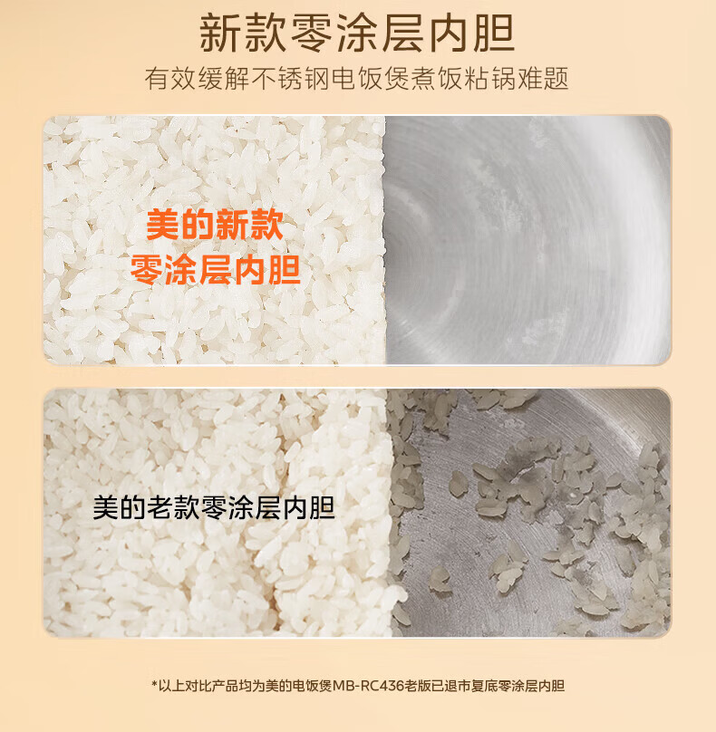 美的(Midea)电饭煲0涂层电饭锅5L大容量316L不锈钢内胆4-5人无涂层家用多功能电饭煲
