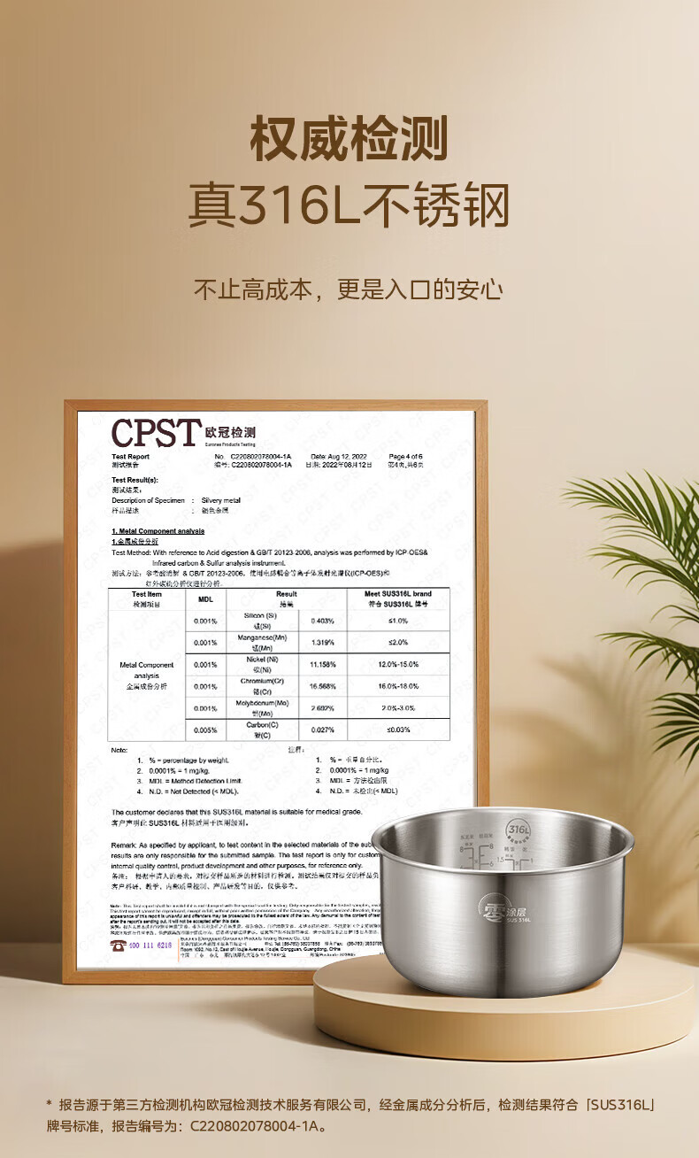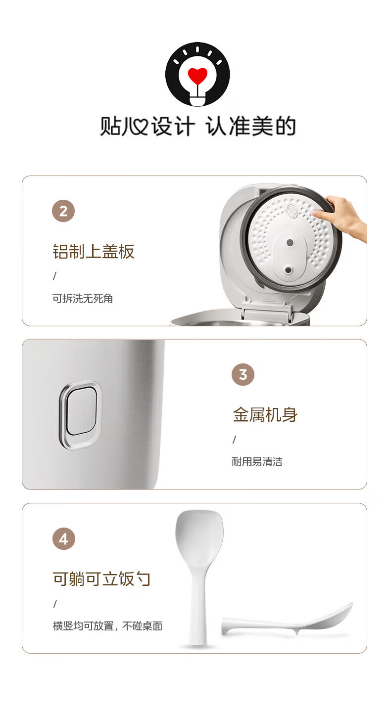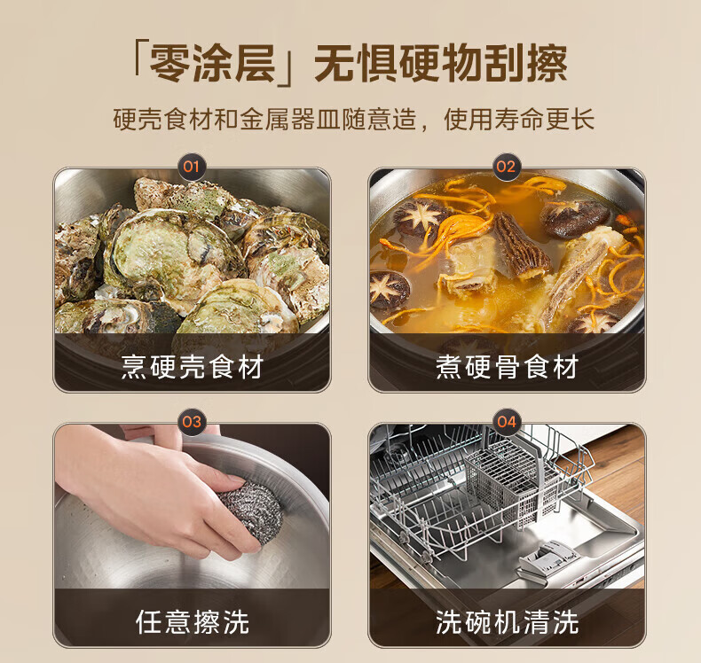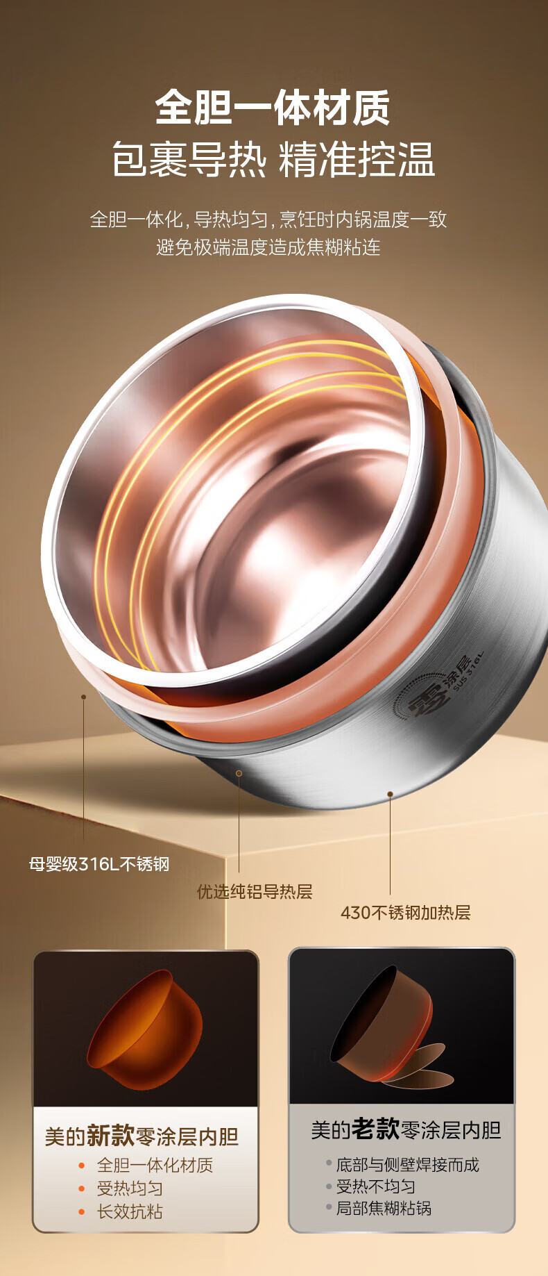 美的(Midea)电饭煲0涂层电饭锅5L大容量316L不锈钢内胆4-5人无涂层家用多功能电饭煲