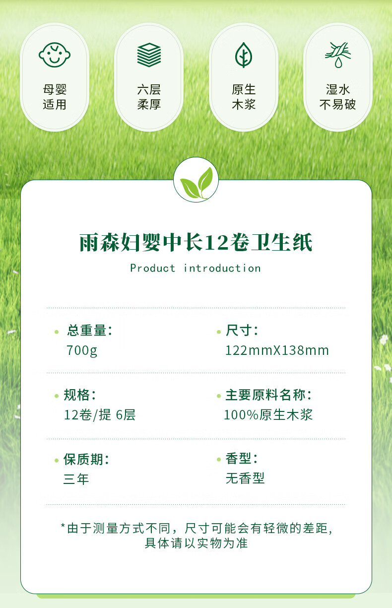 雨森(YUSEN)无芯卷纸妇婴6层58g*12卷 加厚卫生纸家用厕纸 6层 58g/卷*12卷 【1提】活动款