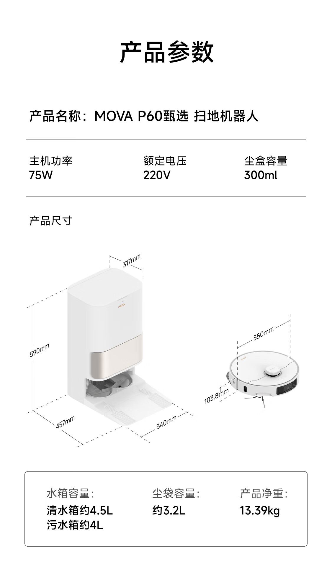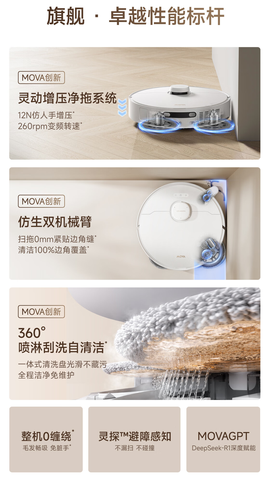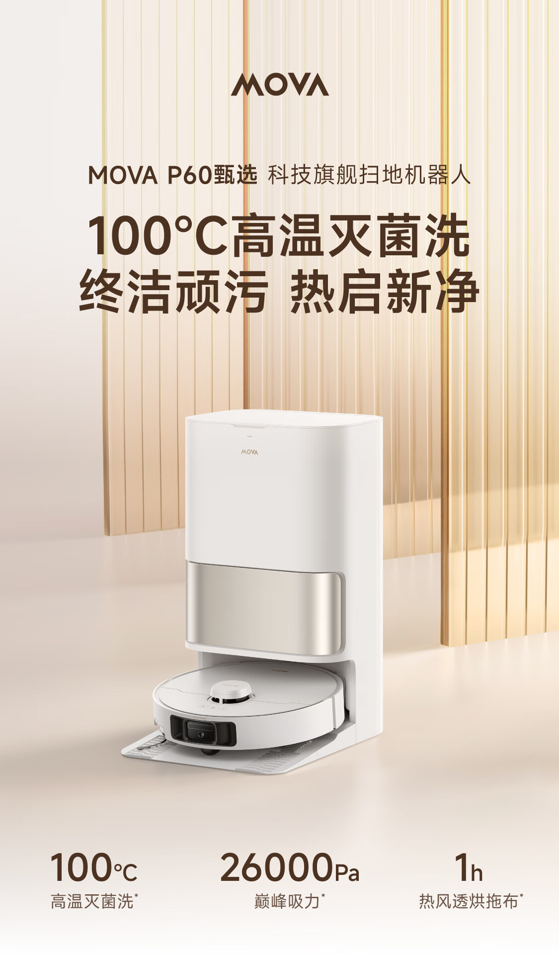 Mova【春晚&宋威龙同款】P60甄选扫地机器人扫拖一体自动清洗家用智能烘干拖布扫地机洗拖一体水箱版