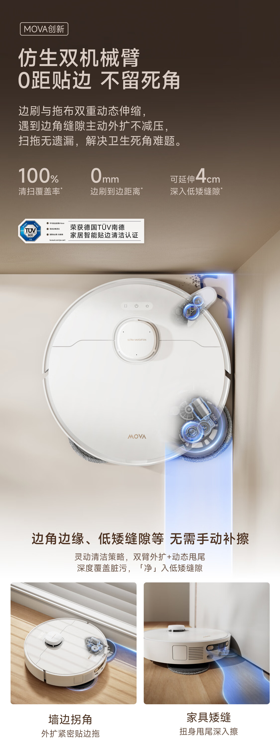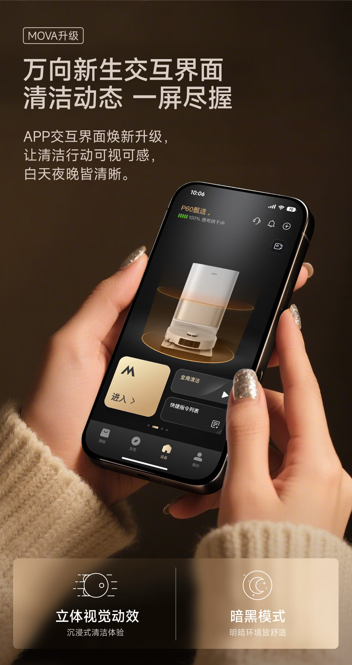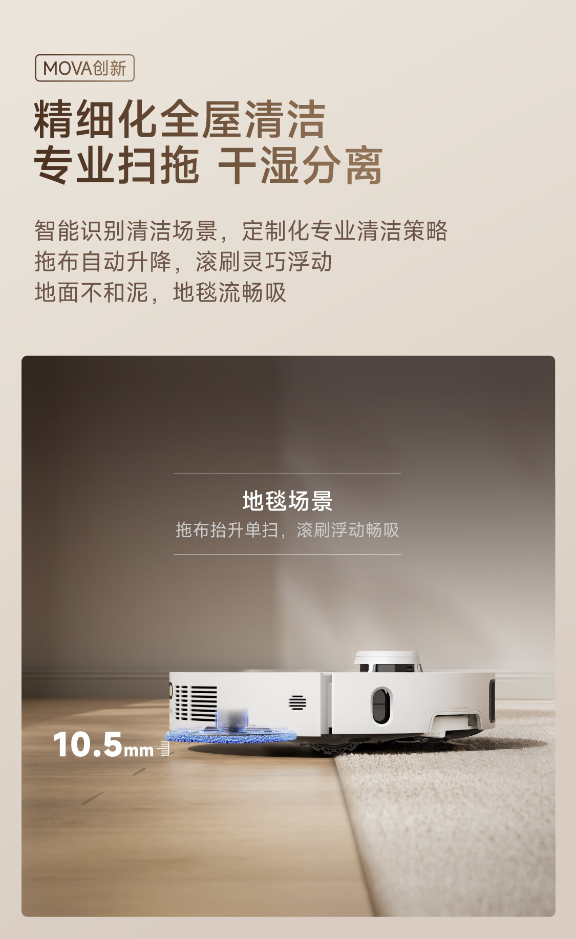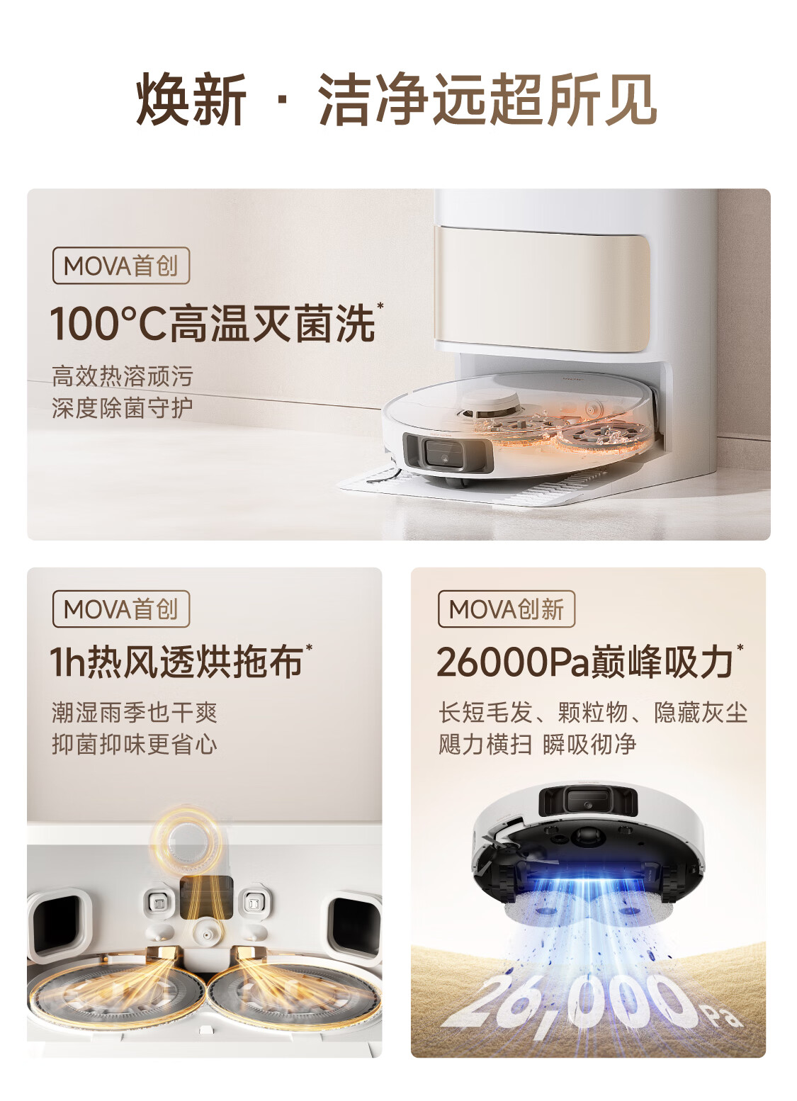Mova【春晚&宋威龙同款】P60甄选扫地机器人扫拖一体自动清洗家用智能烘干拖布扫地机洗拖一体水箱版