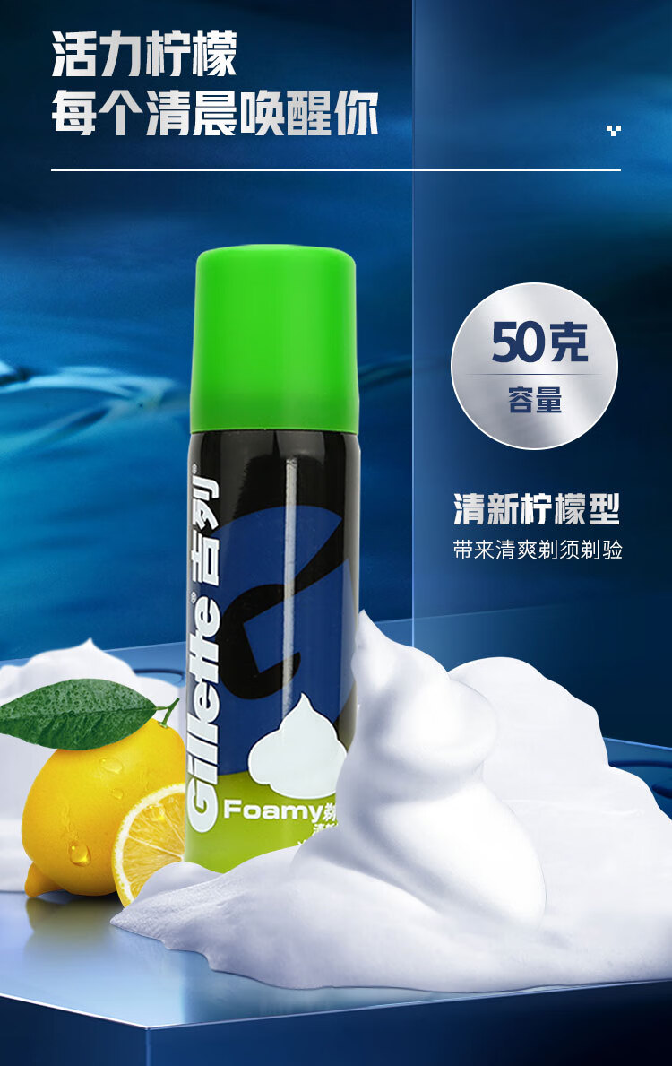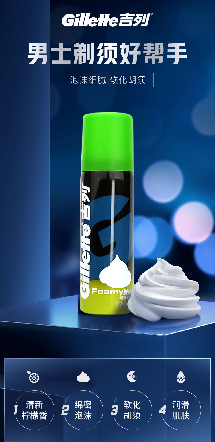 吉列剃须泡沫 剃刮胡须刀手动 清新柠檬型50g 剃须膏剃须啫喱 非刀头男士京东自营旗舰非吉利 年货
