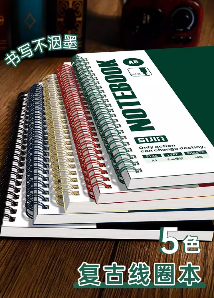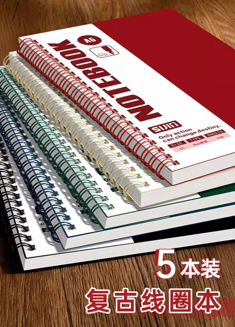 少年伴线圈本 60张/本A5复古线圈本加厚笔记本本子大学生考研横线记事本初中高中课堂记录本 全套五本装