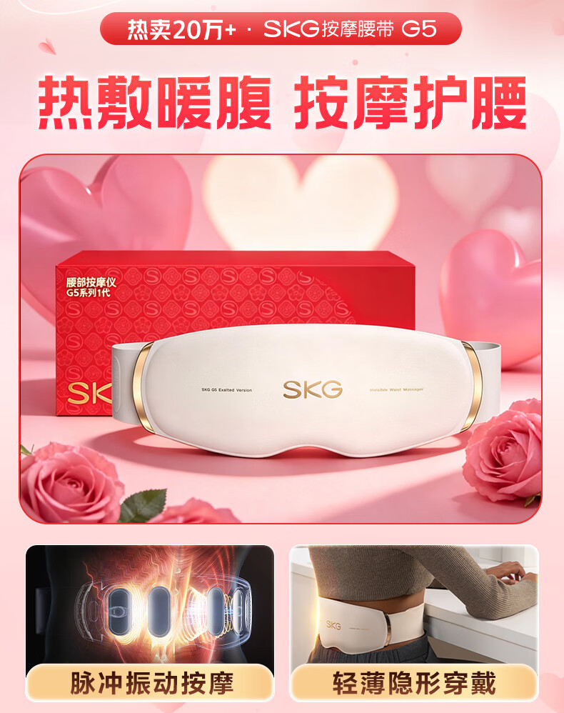 skg按摩仪腰部按摩器G5【王一博同款】暖宫腰带姨妈神器护腰热敷中频脉冲 送女友三八妇女节女神礼物