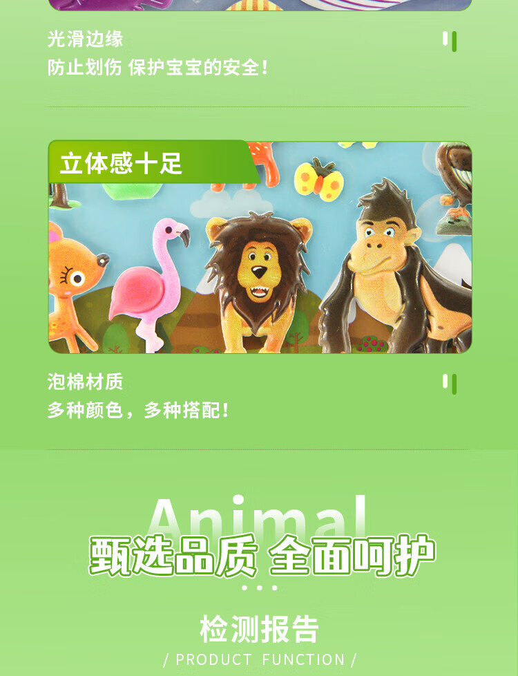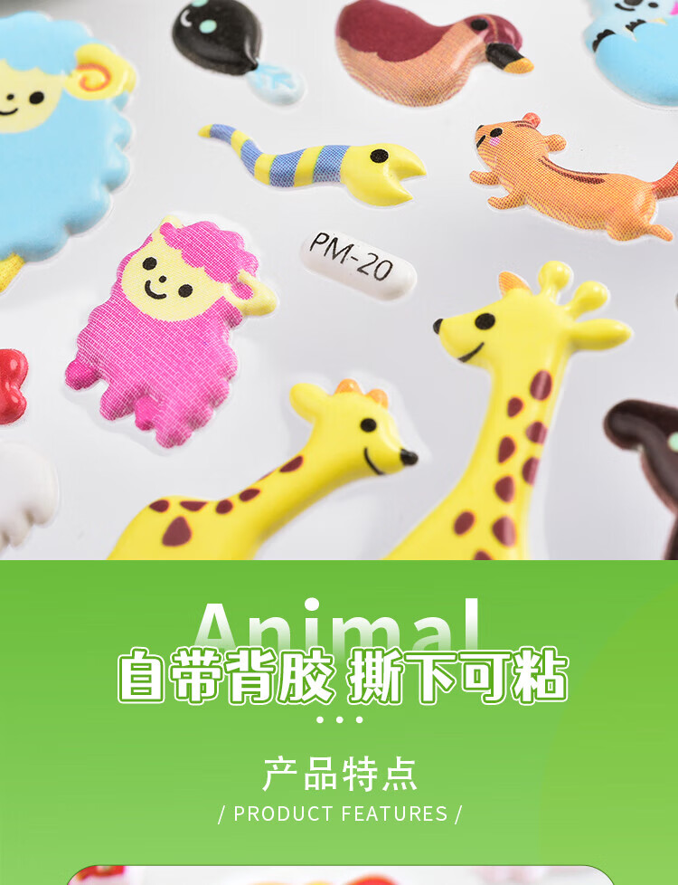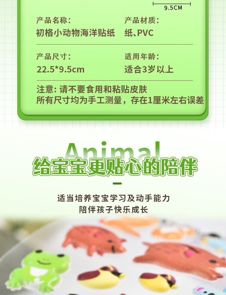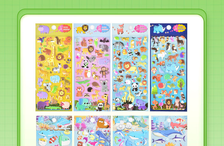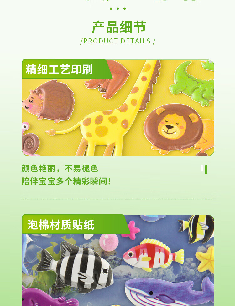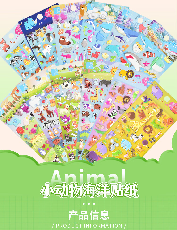 初格儿童贴纸贴画玩具男女孩卡通3d立体小动物海洋鱼开学季礼物