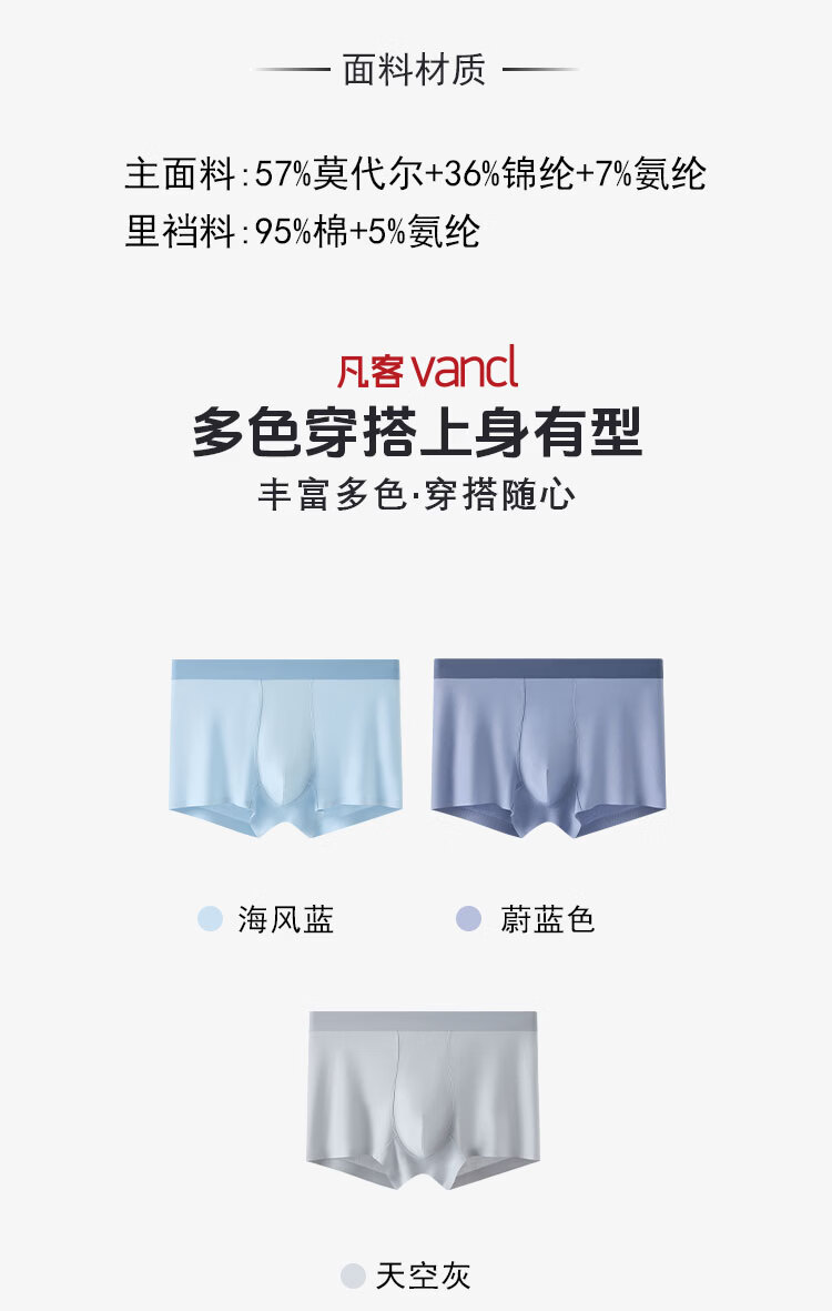 凡客诚品(VANCL)凡客官方店莫代尔珠光男士内裤 混色三条 L