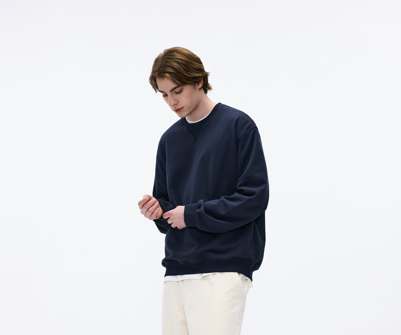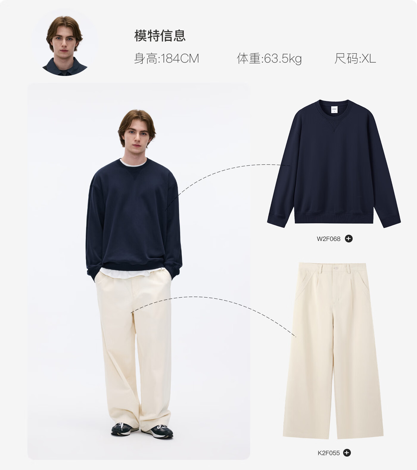 熊猫·本(ben.panda)肌理圆领罗纹肌理卫衣男士宽松长袖上衣2026春季新款 藏青色 M