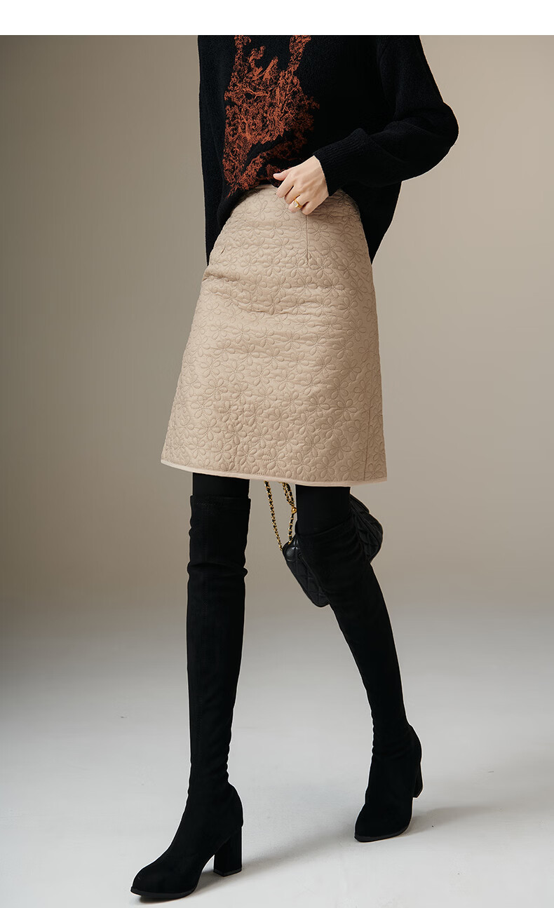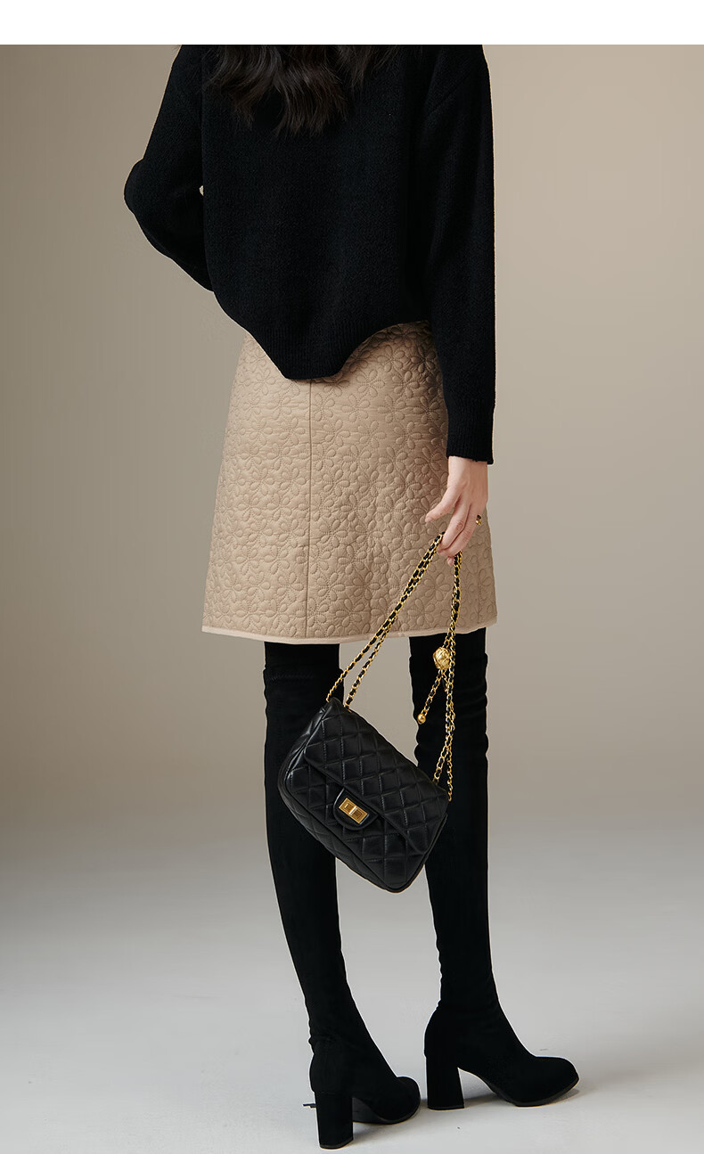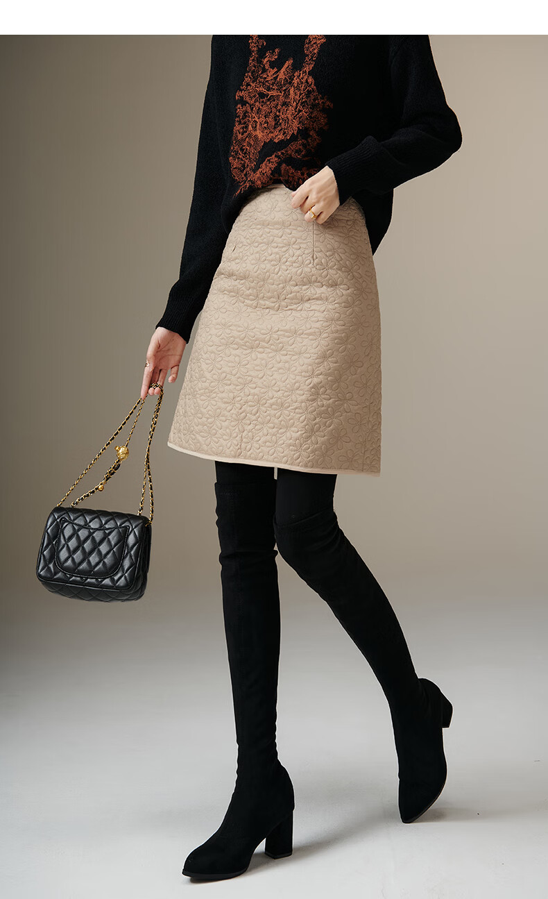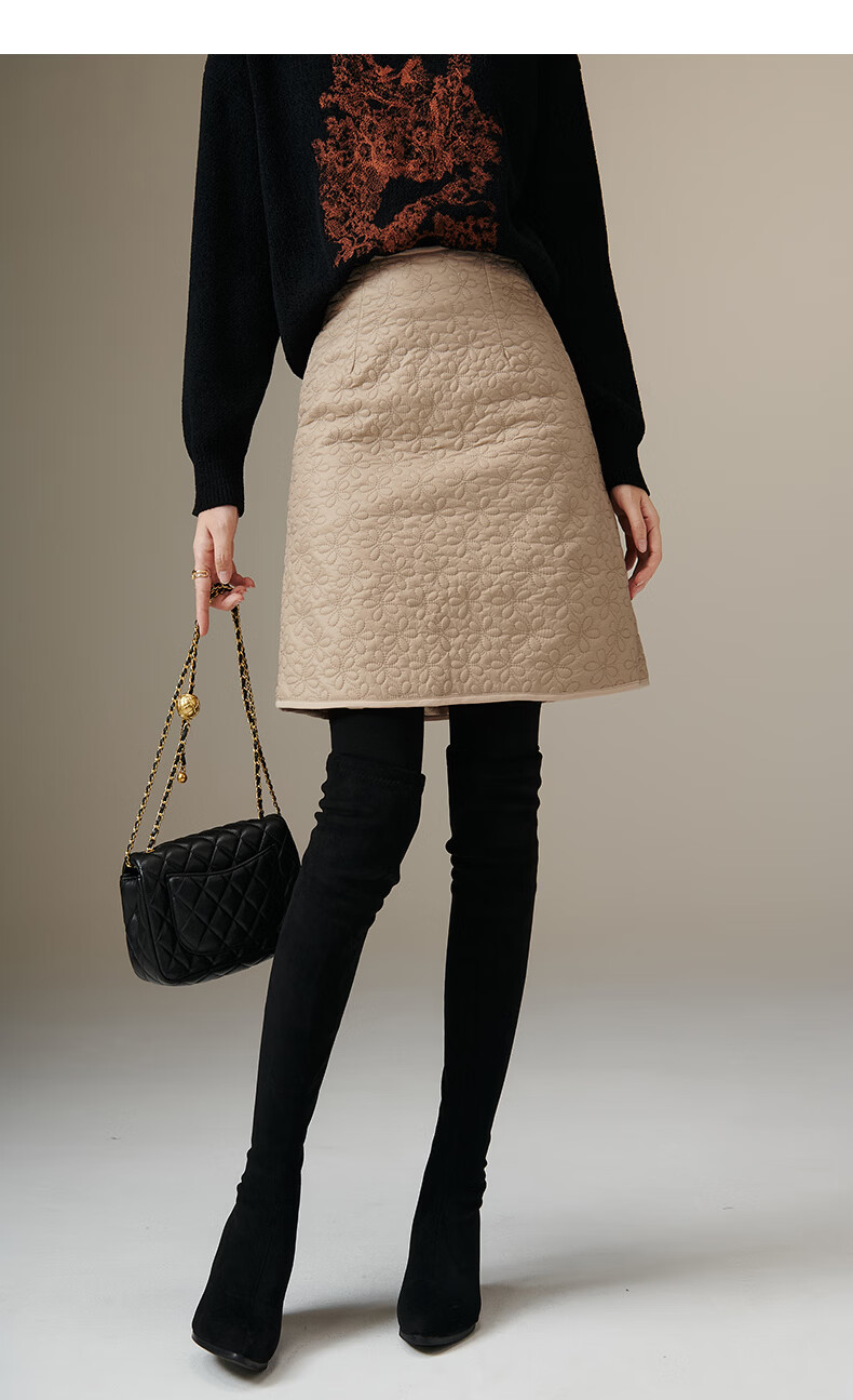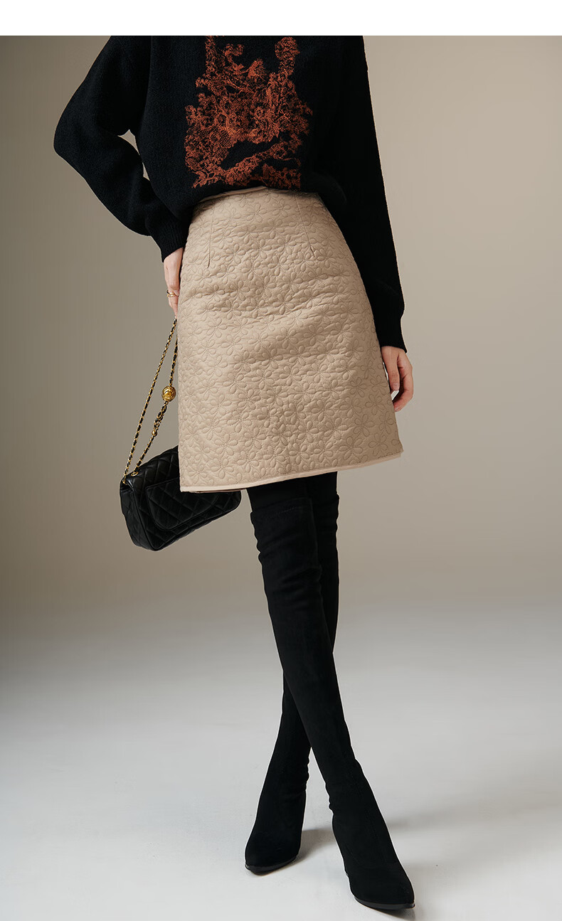 晚白【新品】2026年春款复古时尚裙子高腰显瘦夹棉保暖百搭小A短裙 卡其色 S