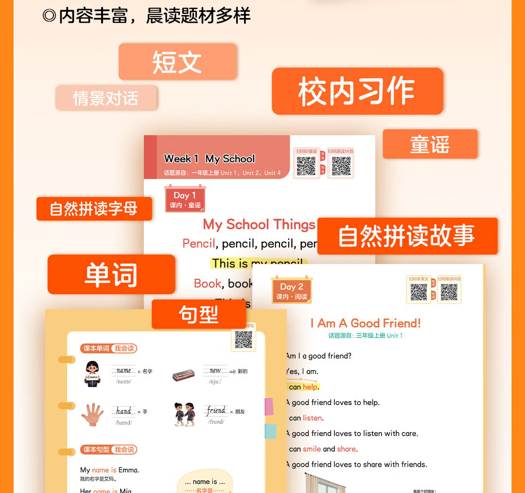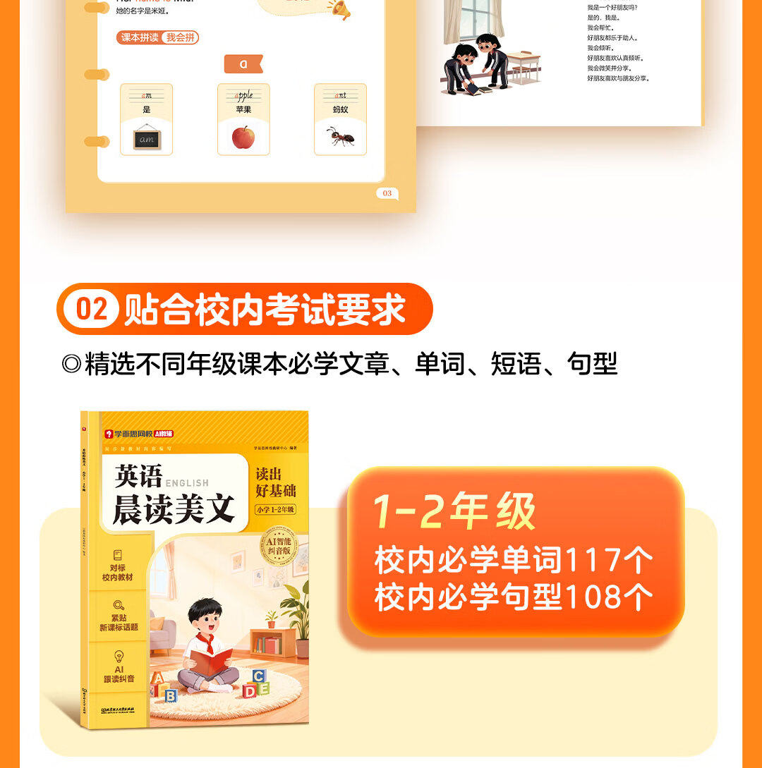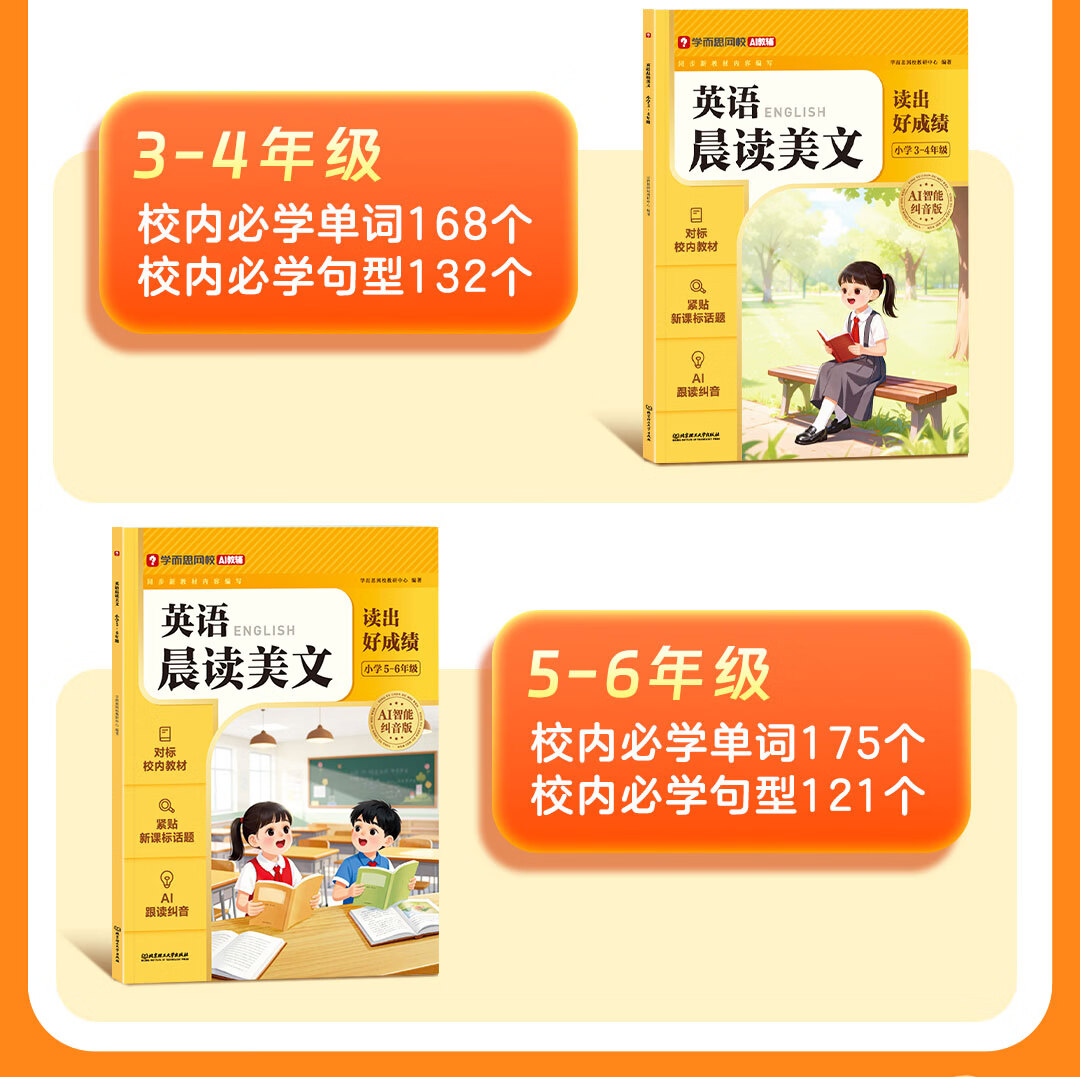学而思小学英语晨读美文 小学一二三四五六年级 英语晨读美文单词语法口语练习智能跟读AI纠音自然拼读趣味记单词搞定核心词汇零基础入门-WX 英语晨读美文·小学3-4年级