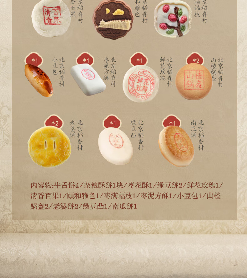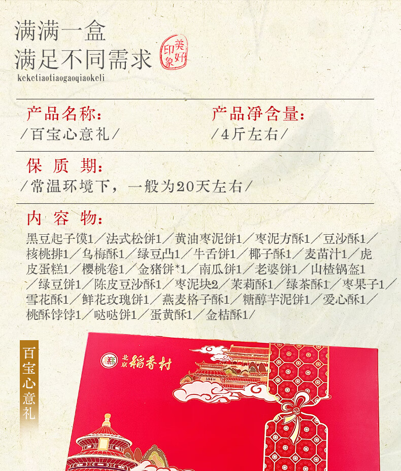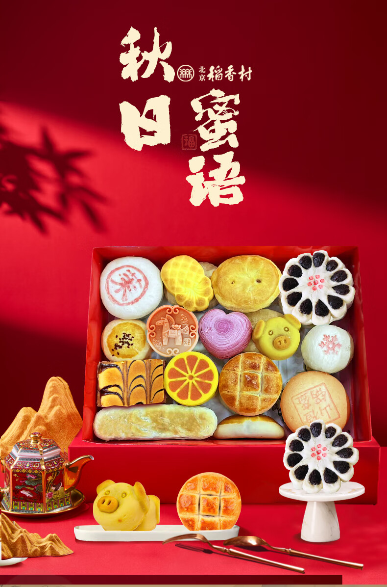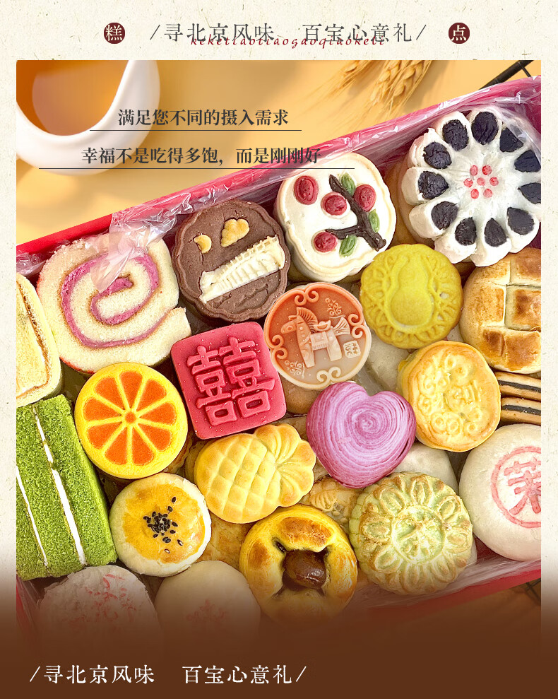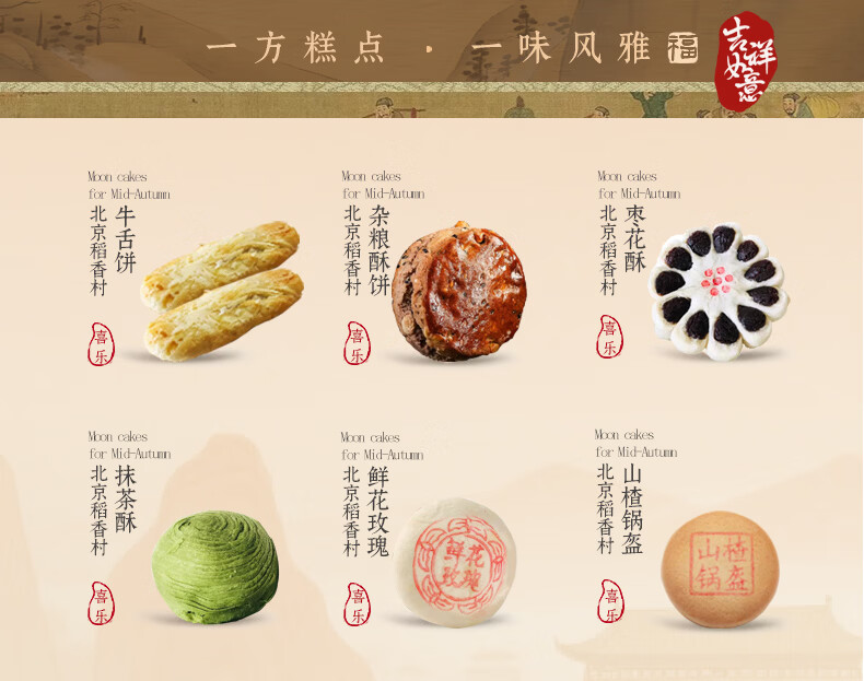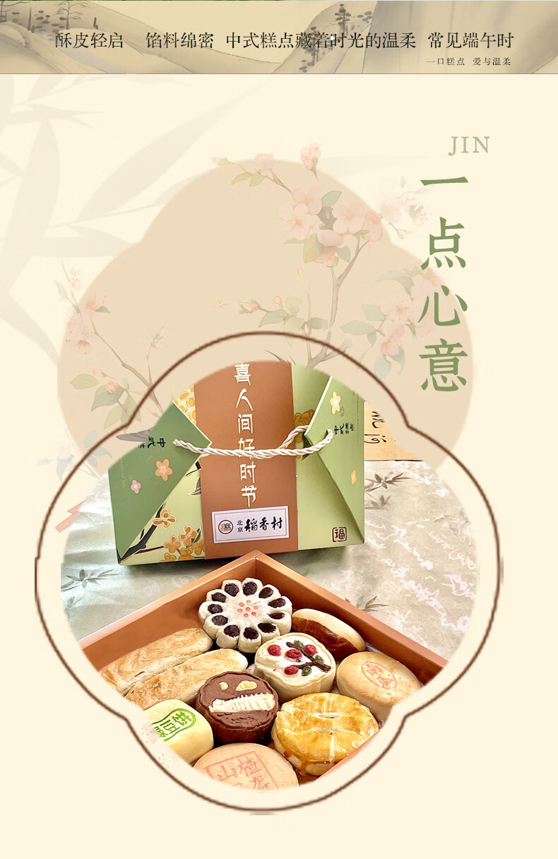 北京稻香村稻香村糕点礼盒北京特产中华老字号中秋礼盒大礼包京八件节日送礼 小团圆1050g送礼品袋