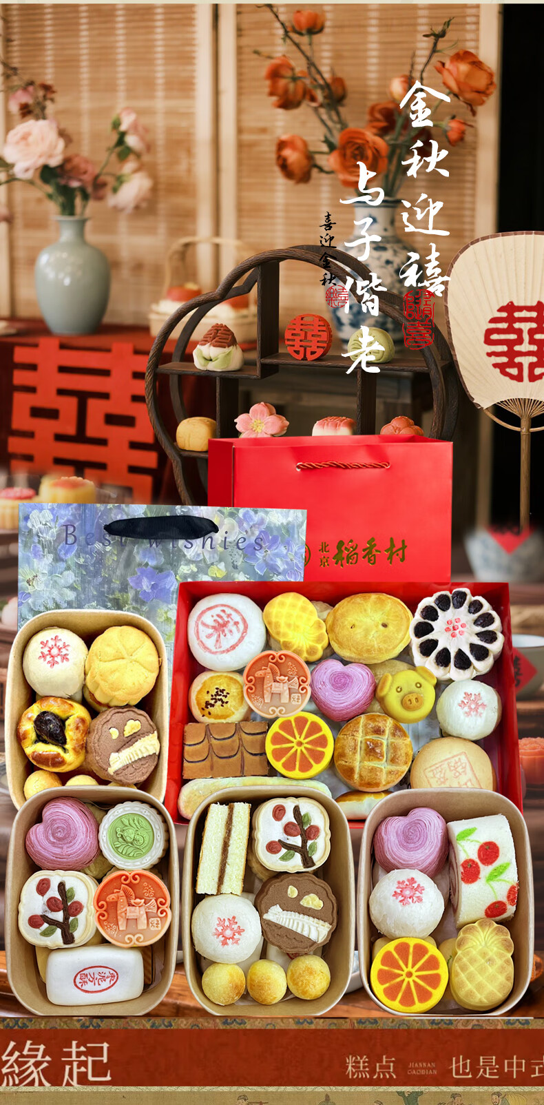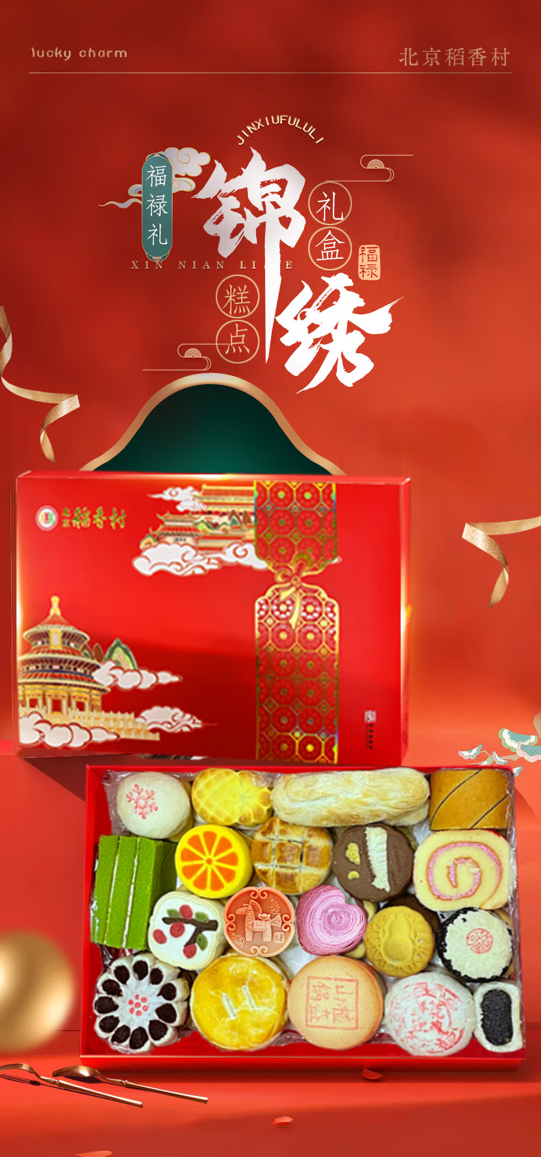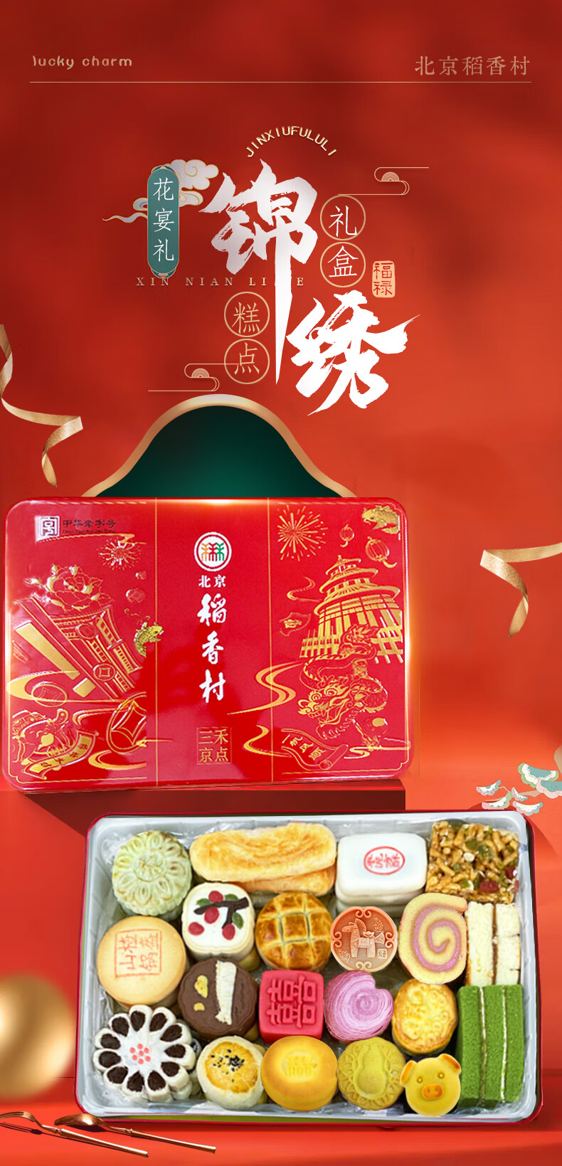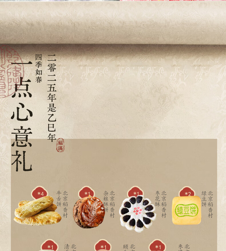 北京稻香村稻香村糕点礼盒北京特产中华老字号中秋礼盒大礼包京八件节日送礼 小团圆1050g送礼品袋