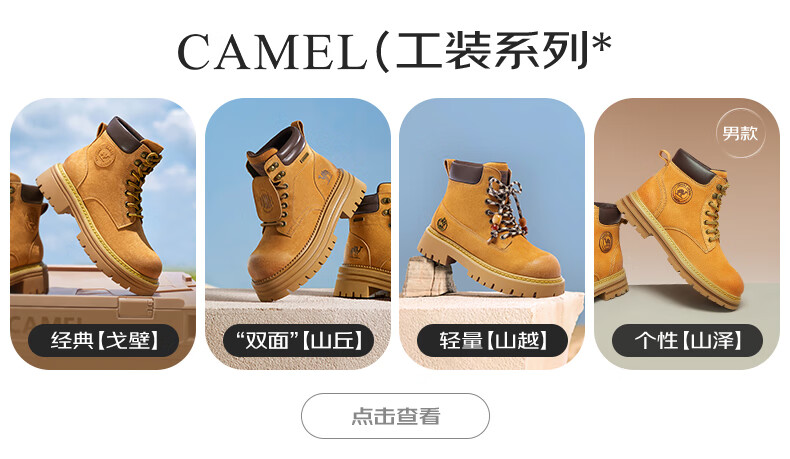骆驼牌 休闲马丁靴户外大黄靴登山工装靴男鞋 P14W307611 沙漠黄 42