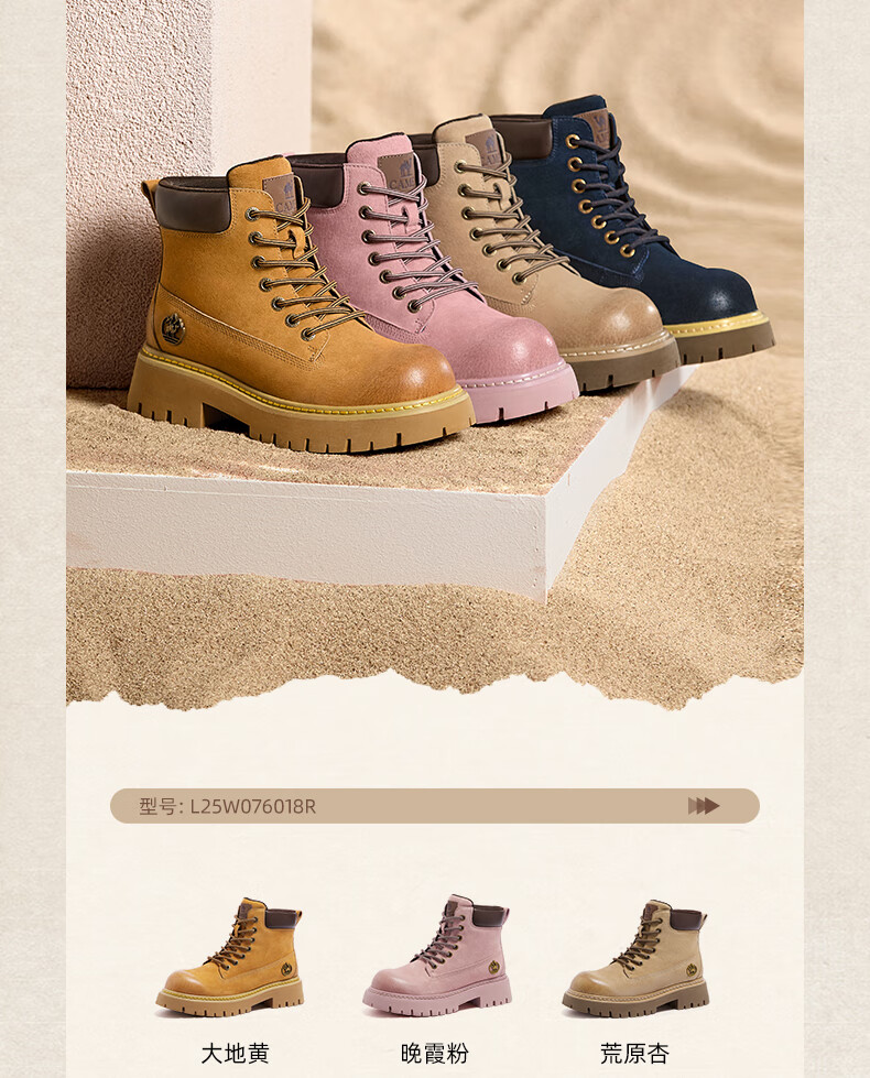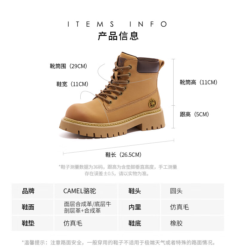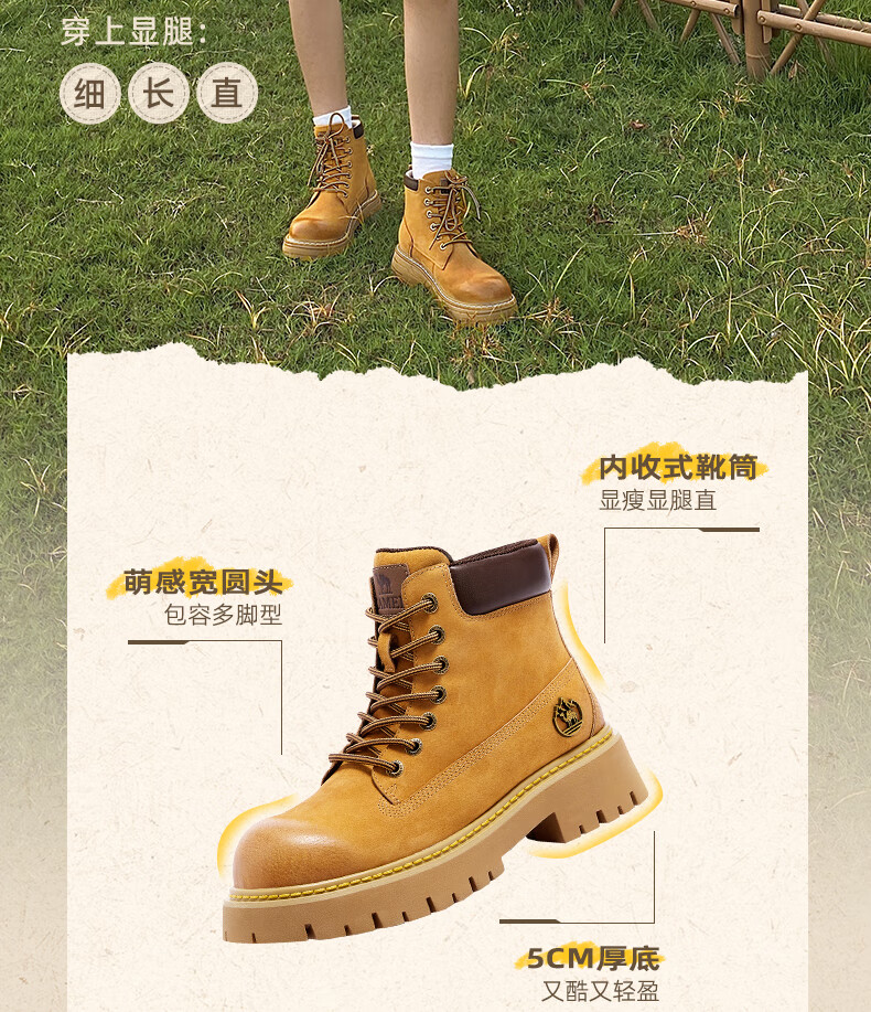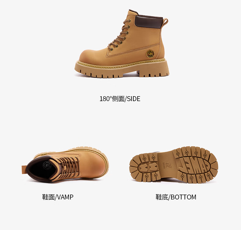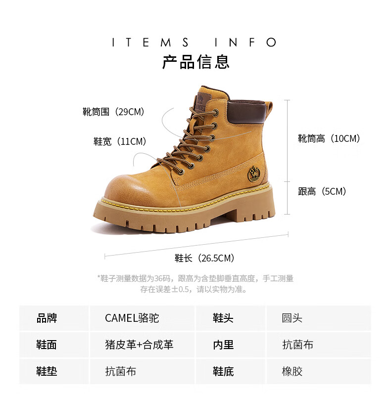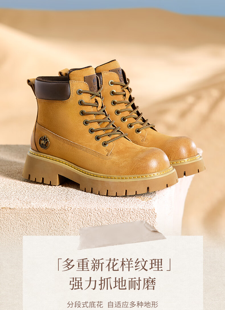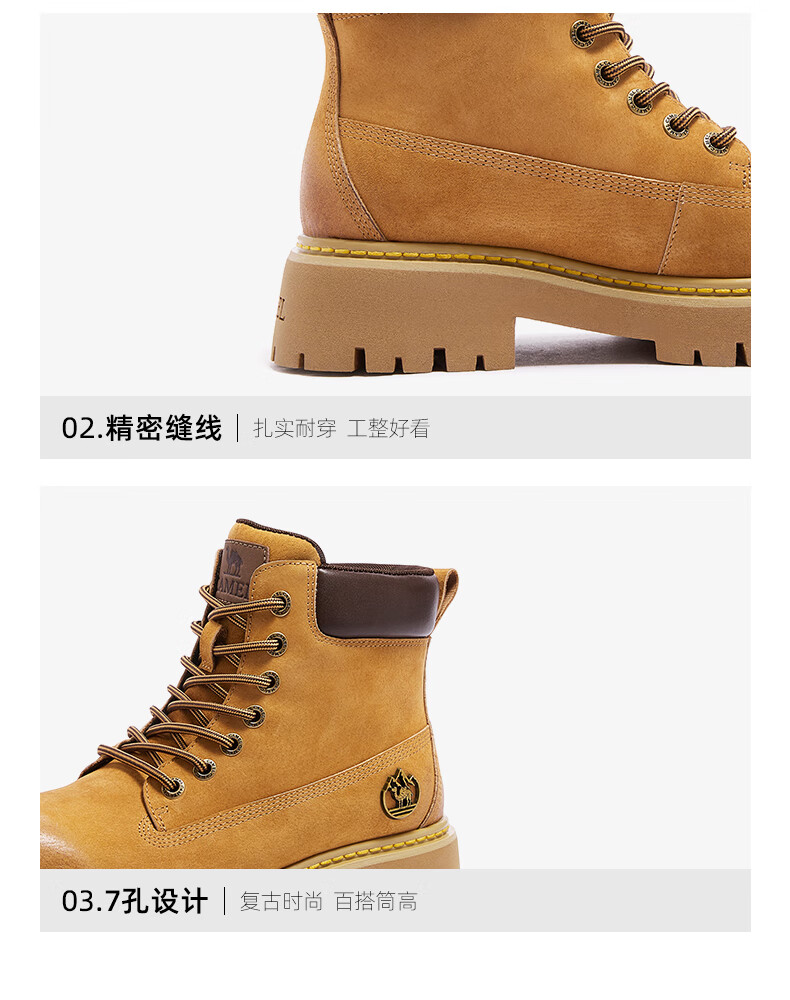 骆驼(CAMEL)【迪丽热巴同款】山越大黄靴经典百搭时尚马丁靴 L25W076018 土黄,女款 37