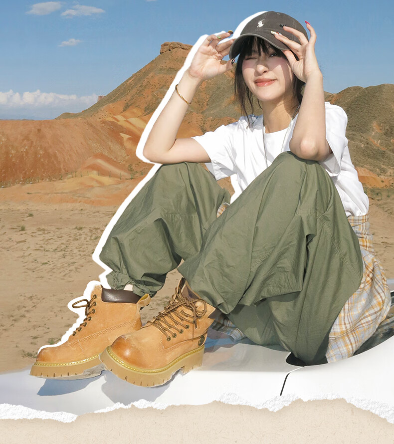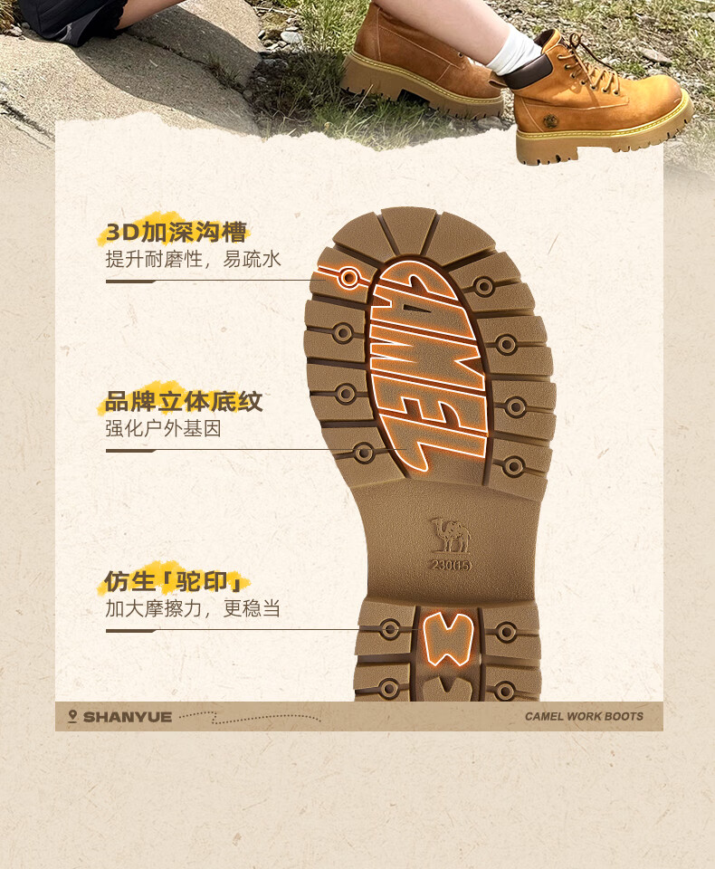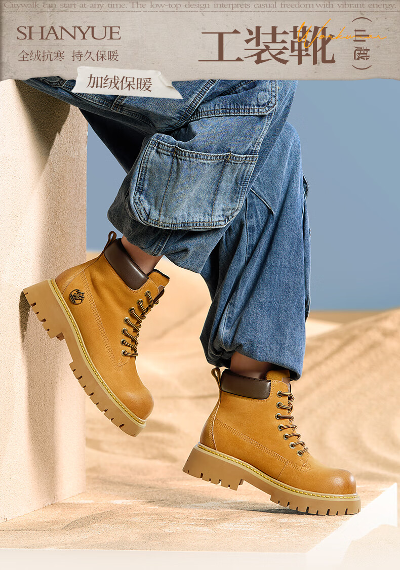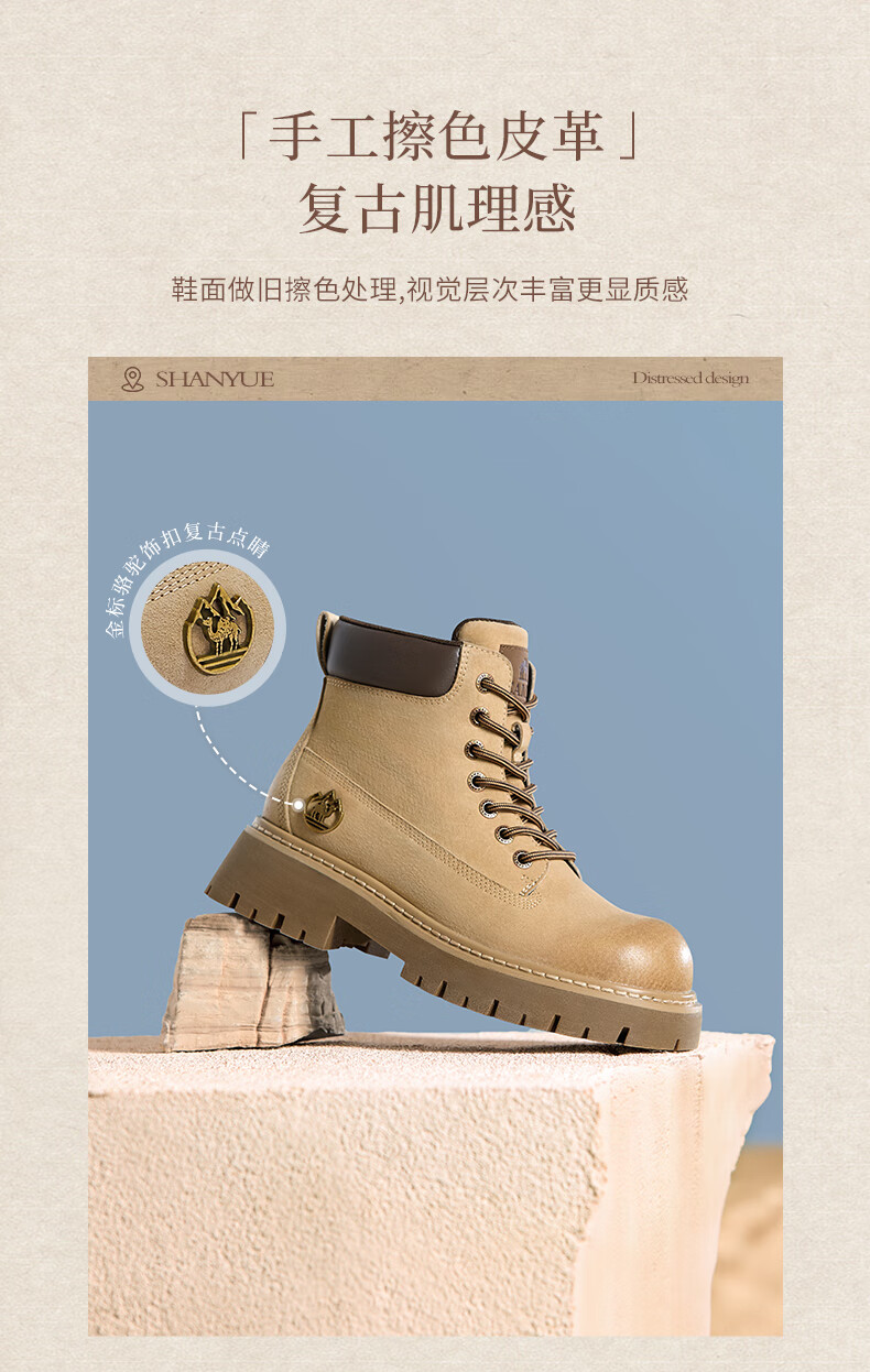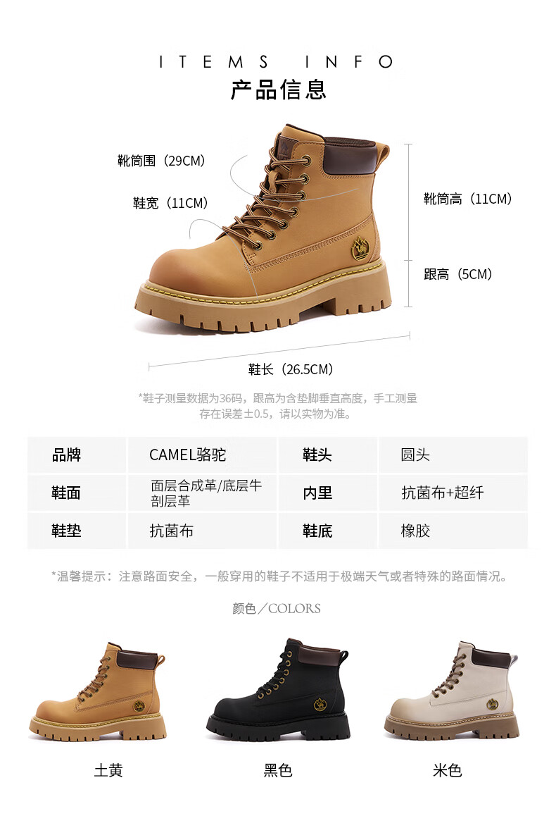 骆驼(CAMEL)【迪丽热巴同款】山越大黄靴经典百搭时尚马丁靴 L25W076018 土黄,女款 37