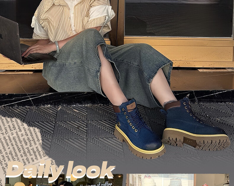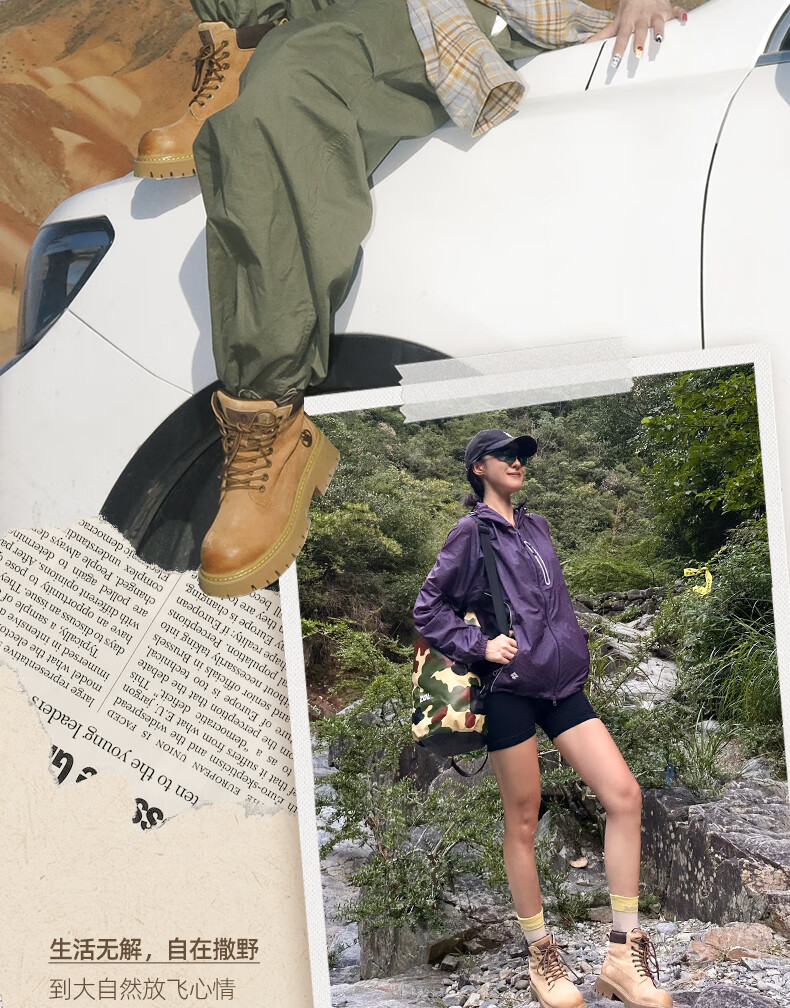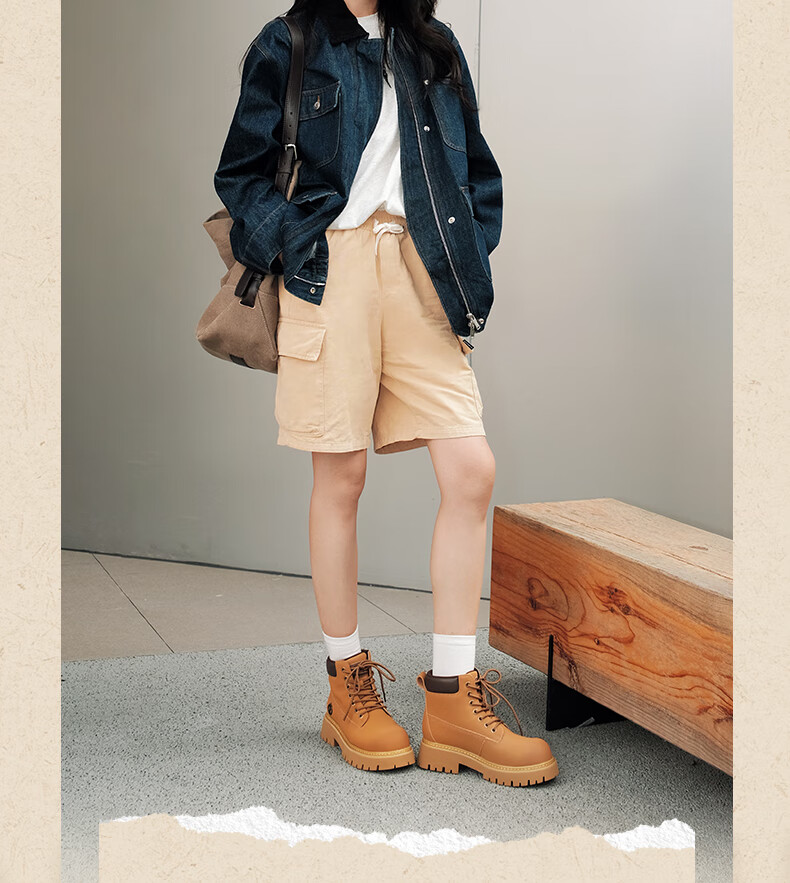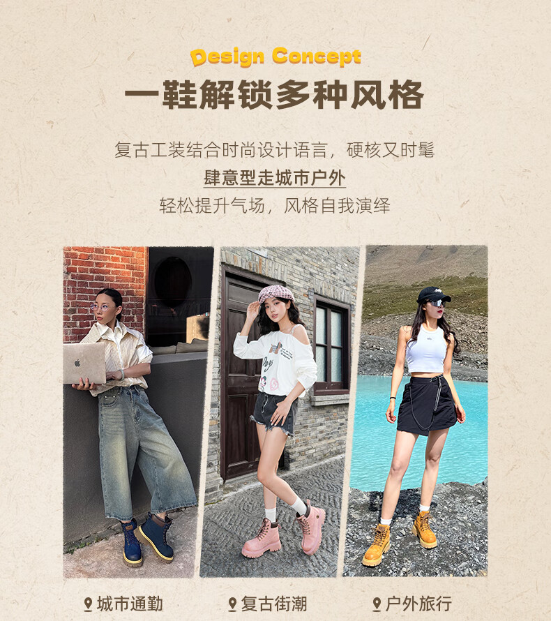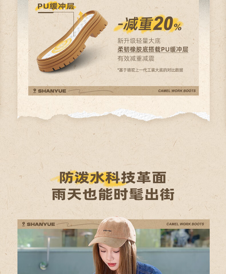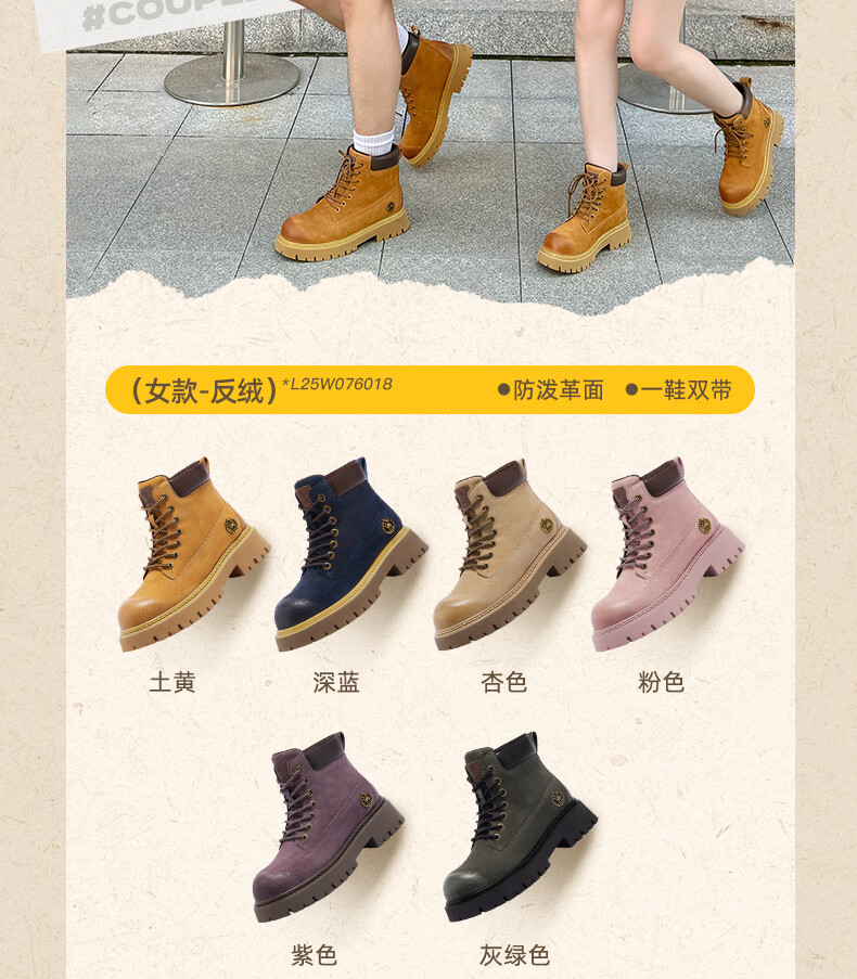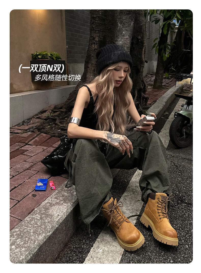 骆驼(CAMEL)【迪丽热巴同款】山越大黄靴经典百搭时尚马丁靴 L25W076018 土黄,女款 37