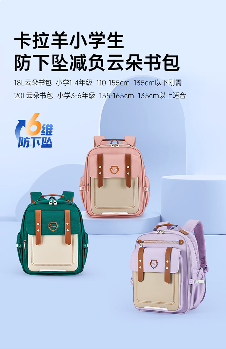 卡拉羊云朵书包小学生1-3-6年级6维减负防下坠超轻减压护脊男女儿童背包