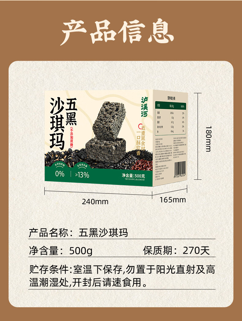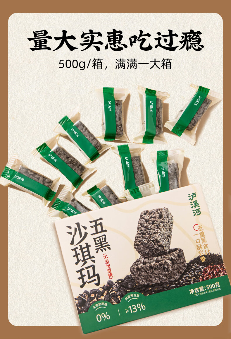 泸溪河 五黑沙琪玛500g 零食早餐糕点网红代餐下午茶整箱