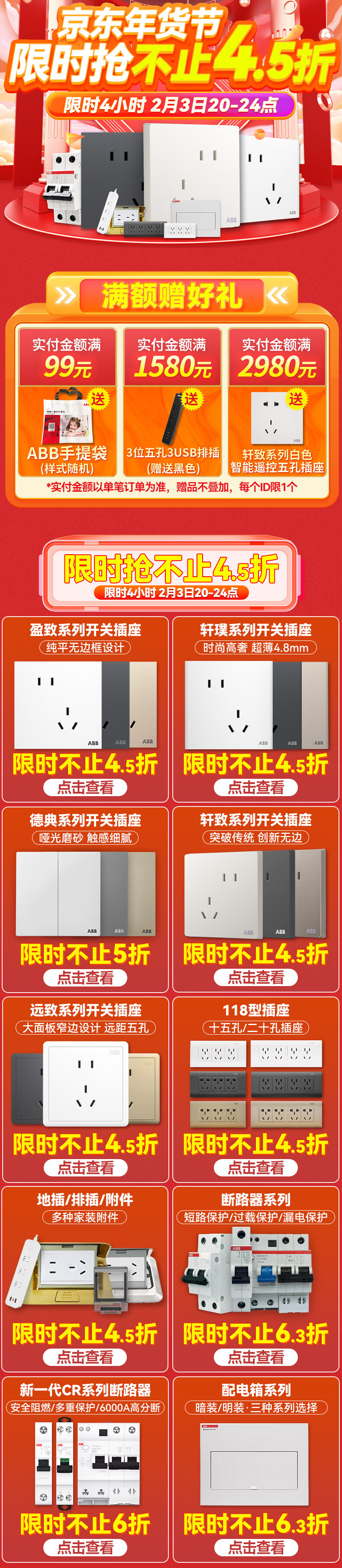 ABB开关插座面板 德典系列香槟金 磨砂哑光奶油风 无边框 86型电源 斜五孔插座