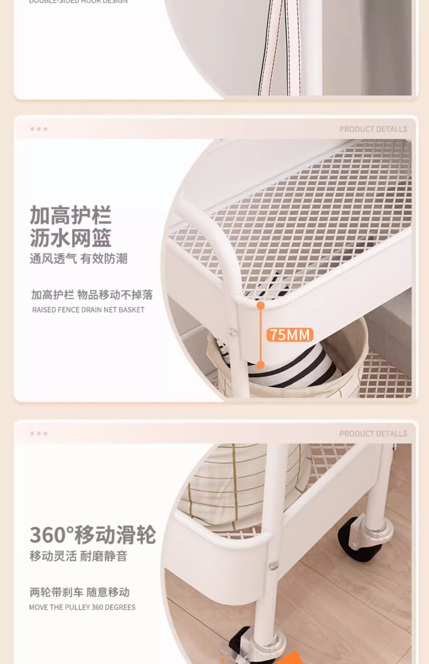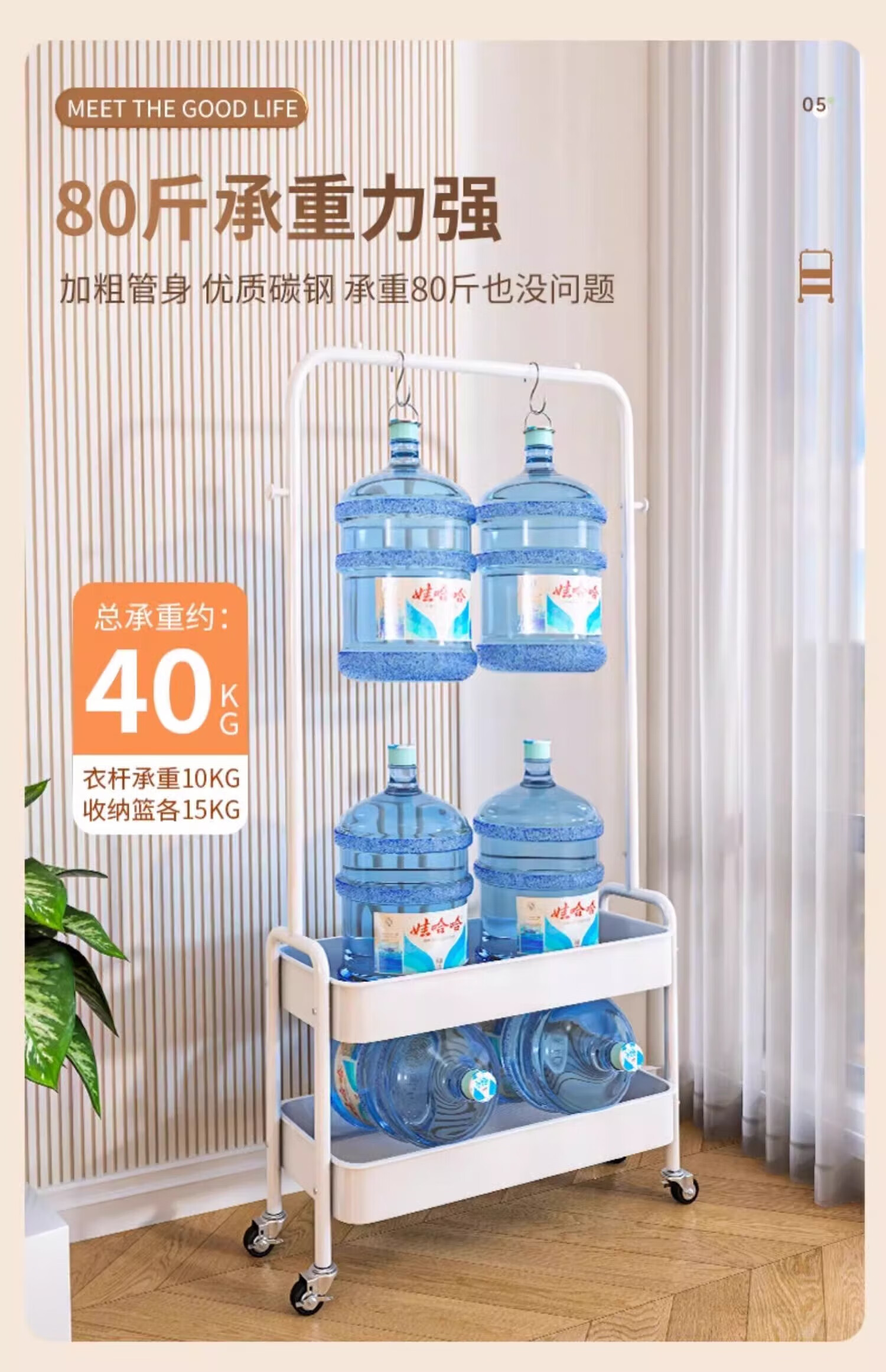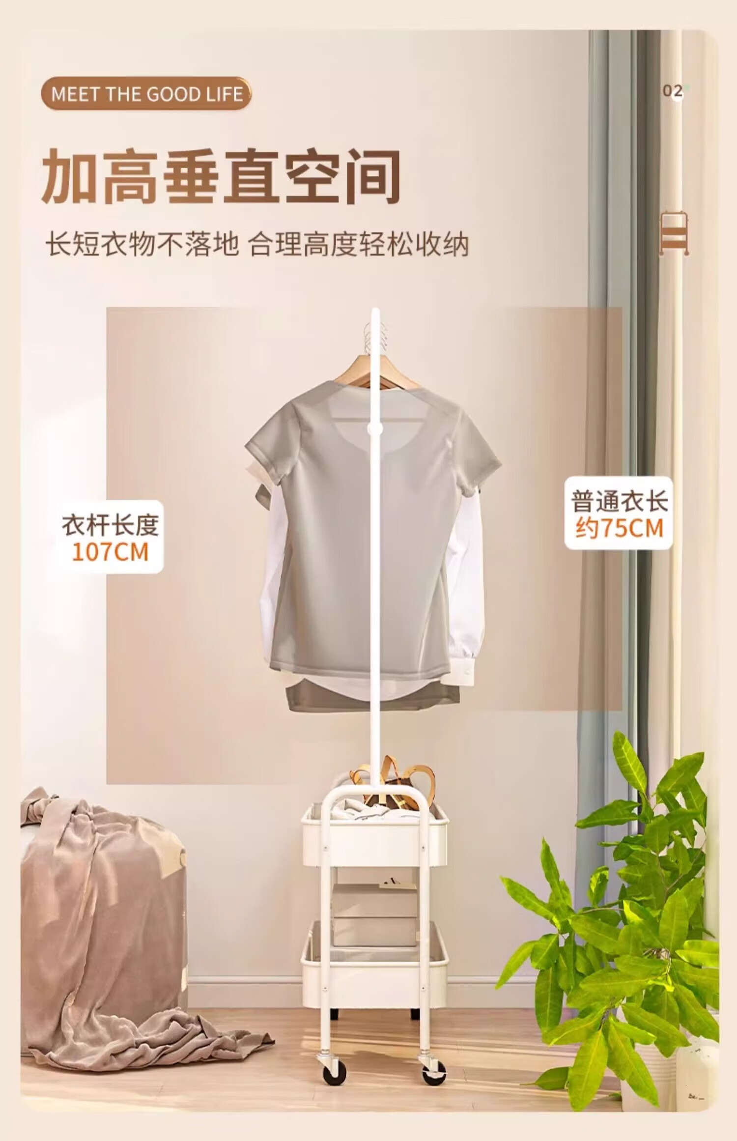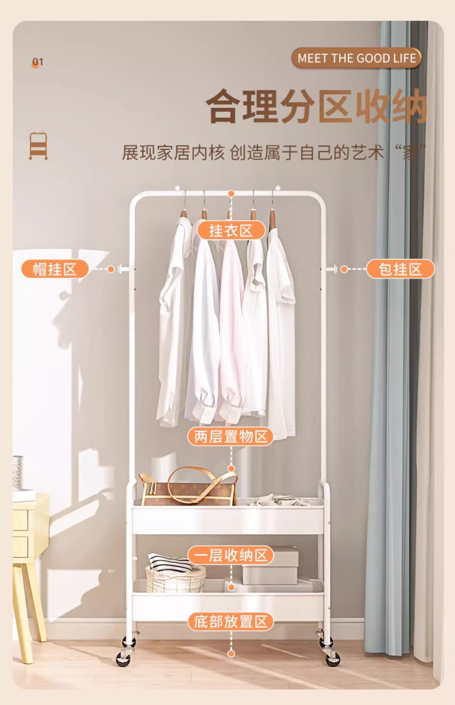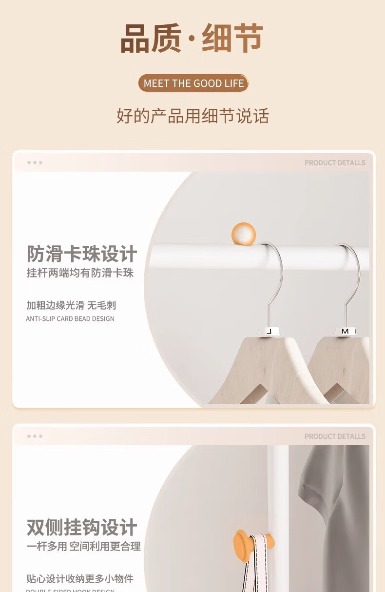 馨婺家衣帽架落地卧室挂衣可移动室内收纳置物架客厅多功能晾衣服挂衣架 白色-单层网框【塑料款】