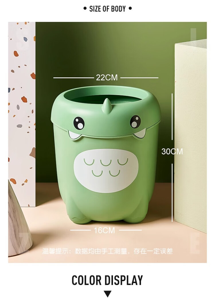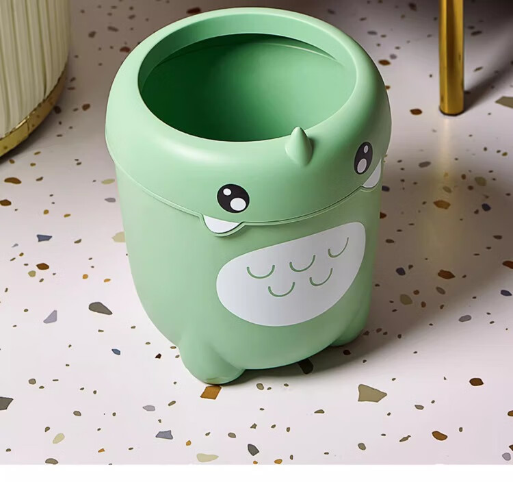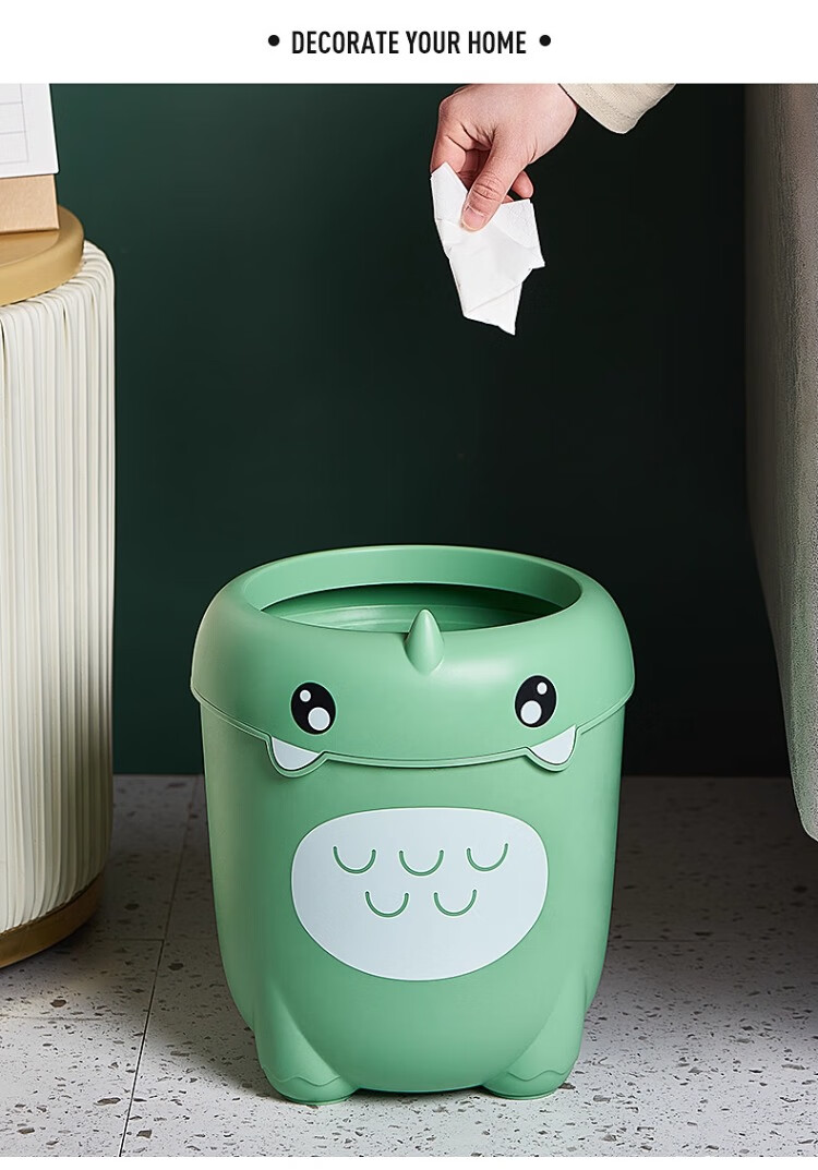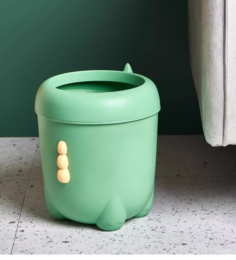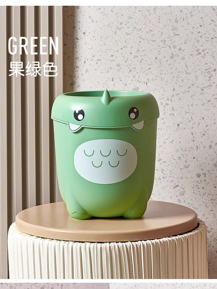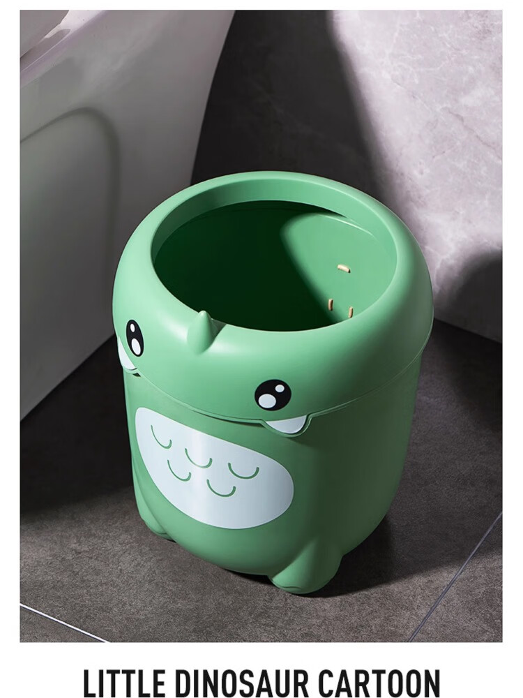 尔思家卡通垃圾桶家用可爱压圈创意客厅卧室卫生间宿舍办公室高颜值纸篓 绿色卡通款