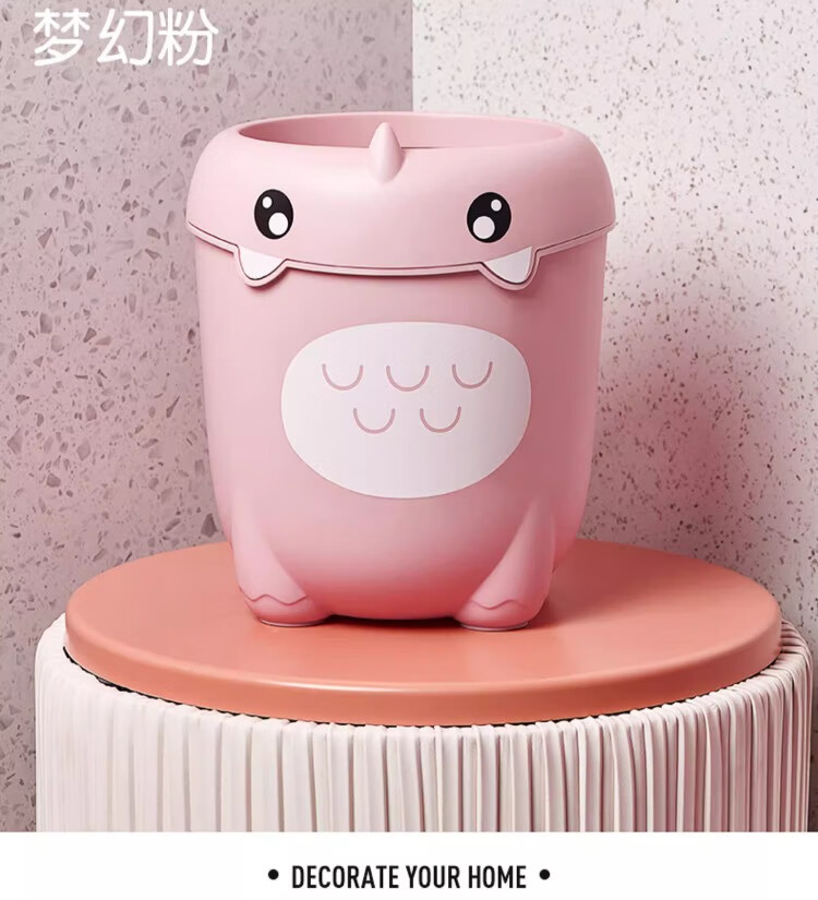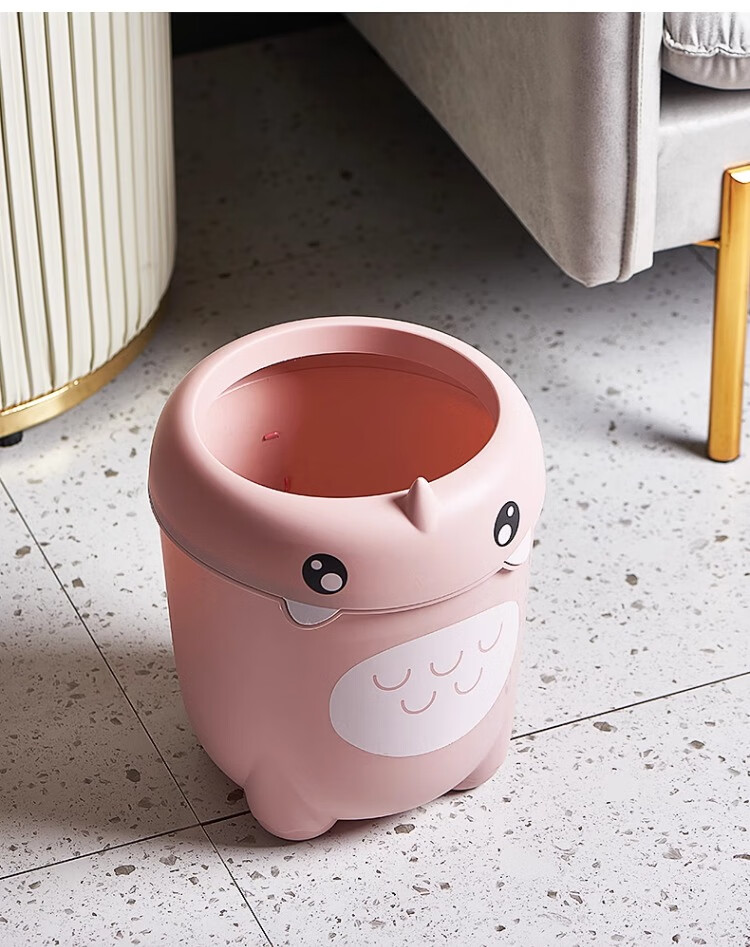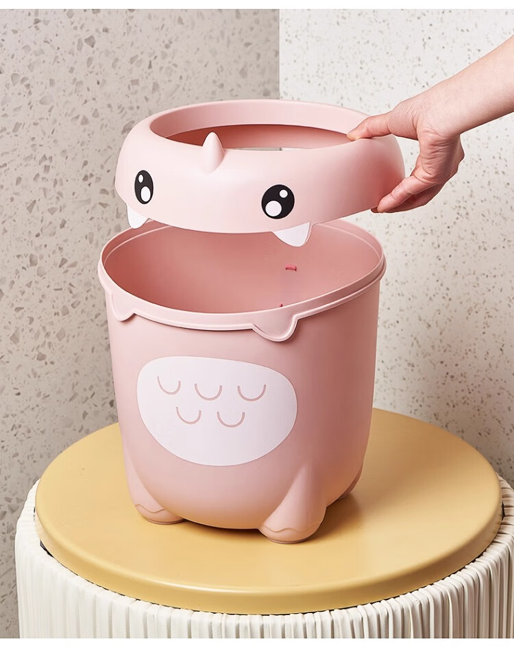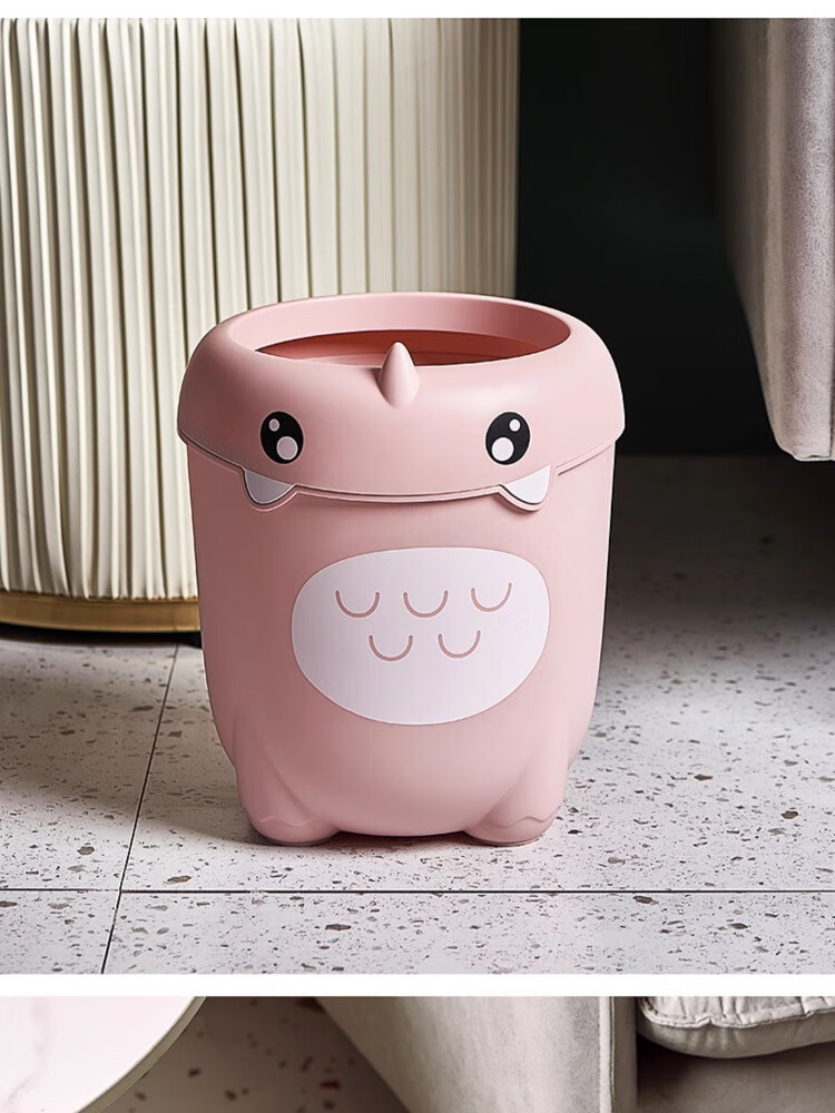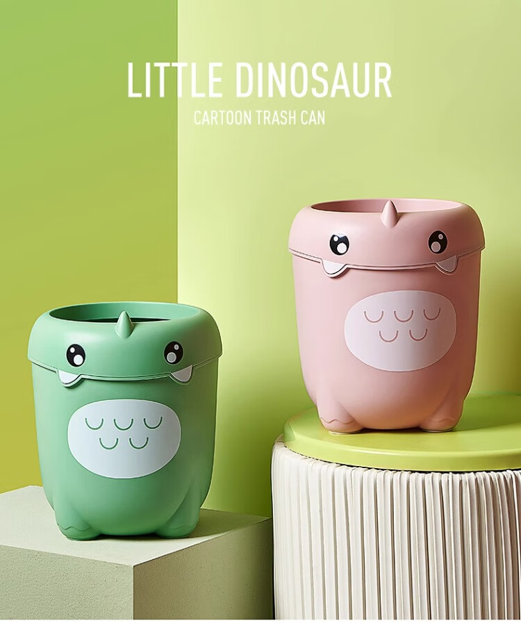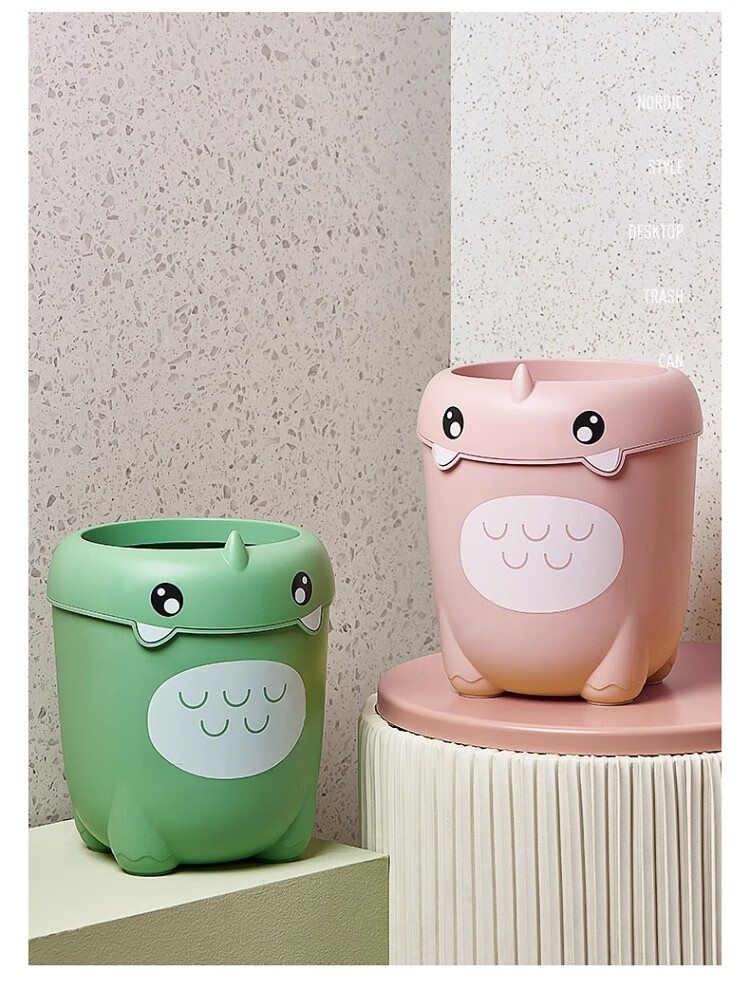 尔思家卡通垃圾桶家用可爱压圈创意客厅卧室卫生间宿舍办公室高颜值纸篓 绿色卡通款