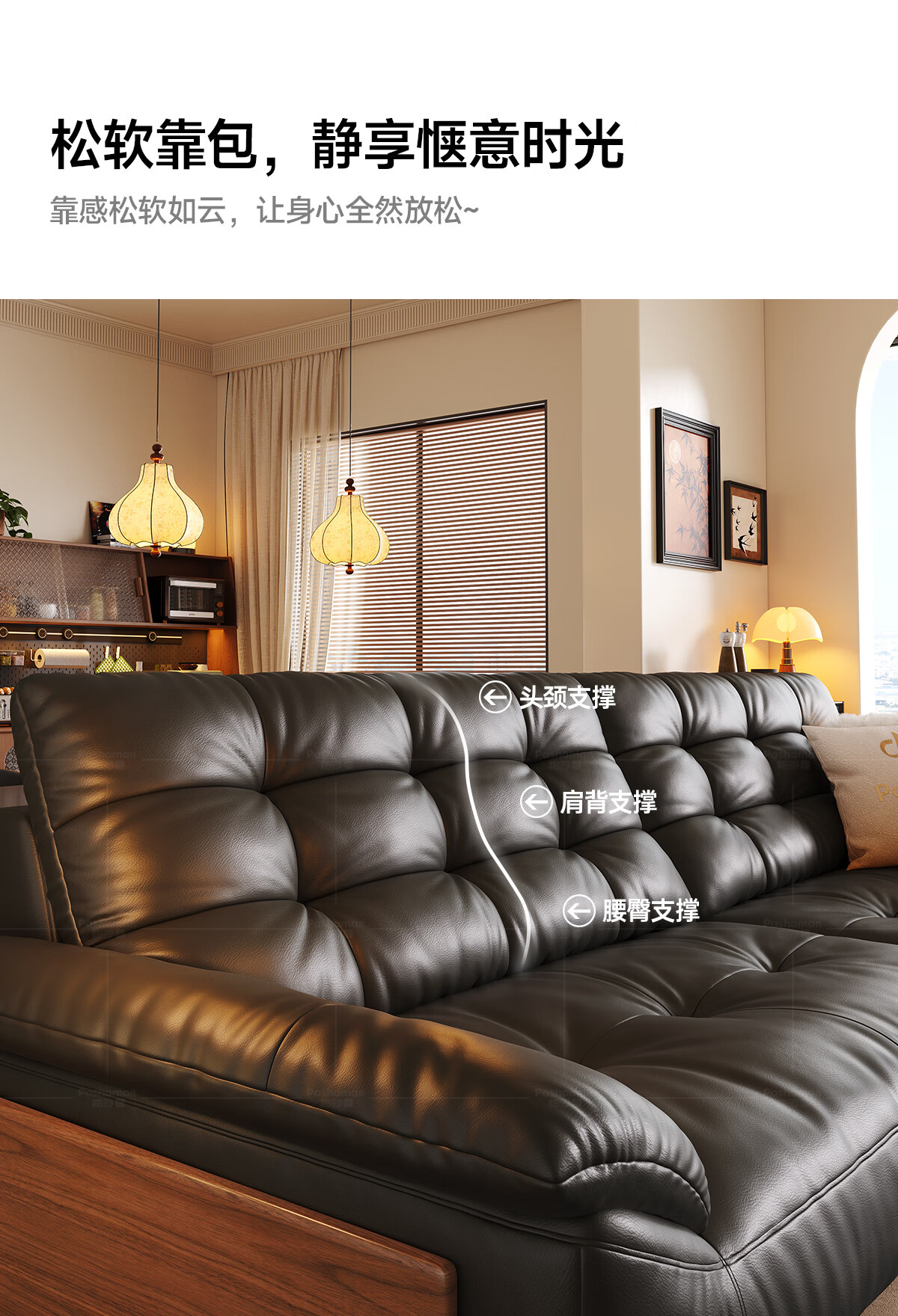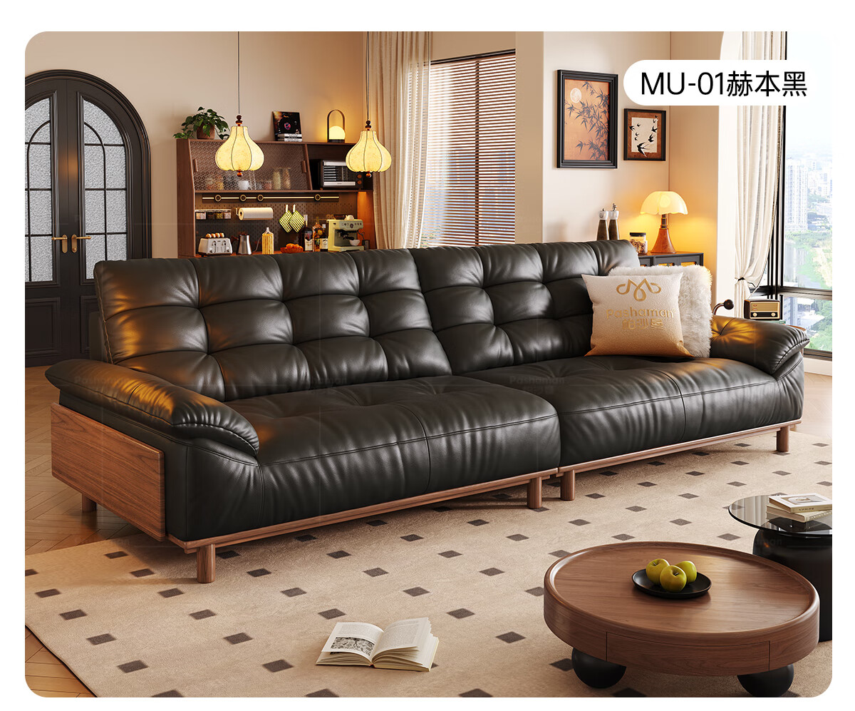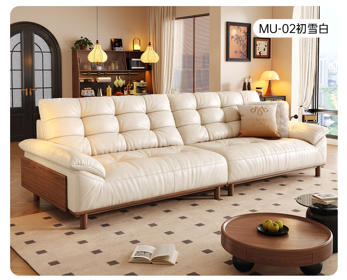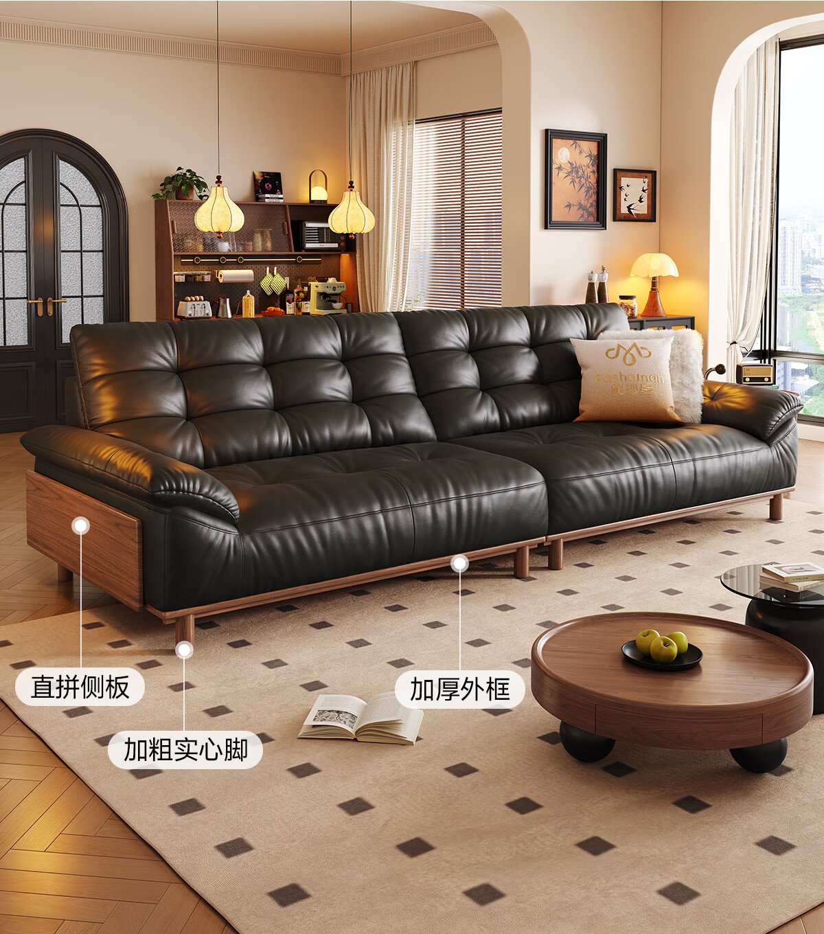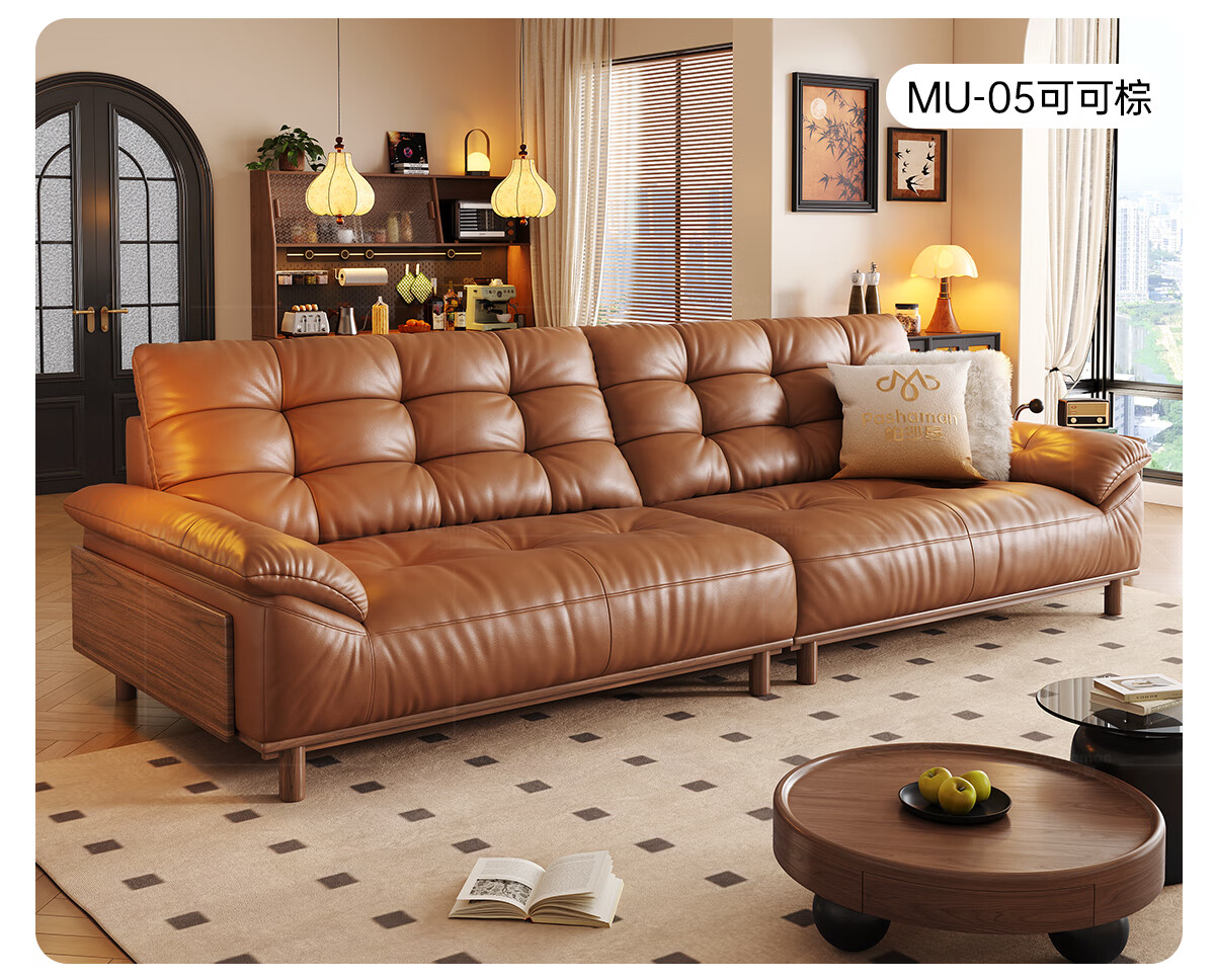 帕沙曼实木真皮沙发意式复古客厅家用小户型中古风直排棉花糖沙发7202ZP 2.3米多人位【全新零压坐感】 【舒享版】MU真皮 羽绒+ 轻弹棉+竹炭海绵