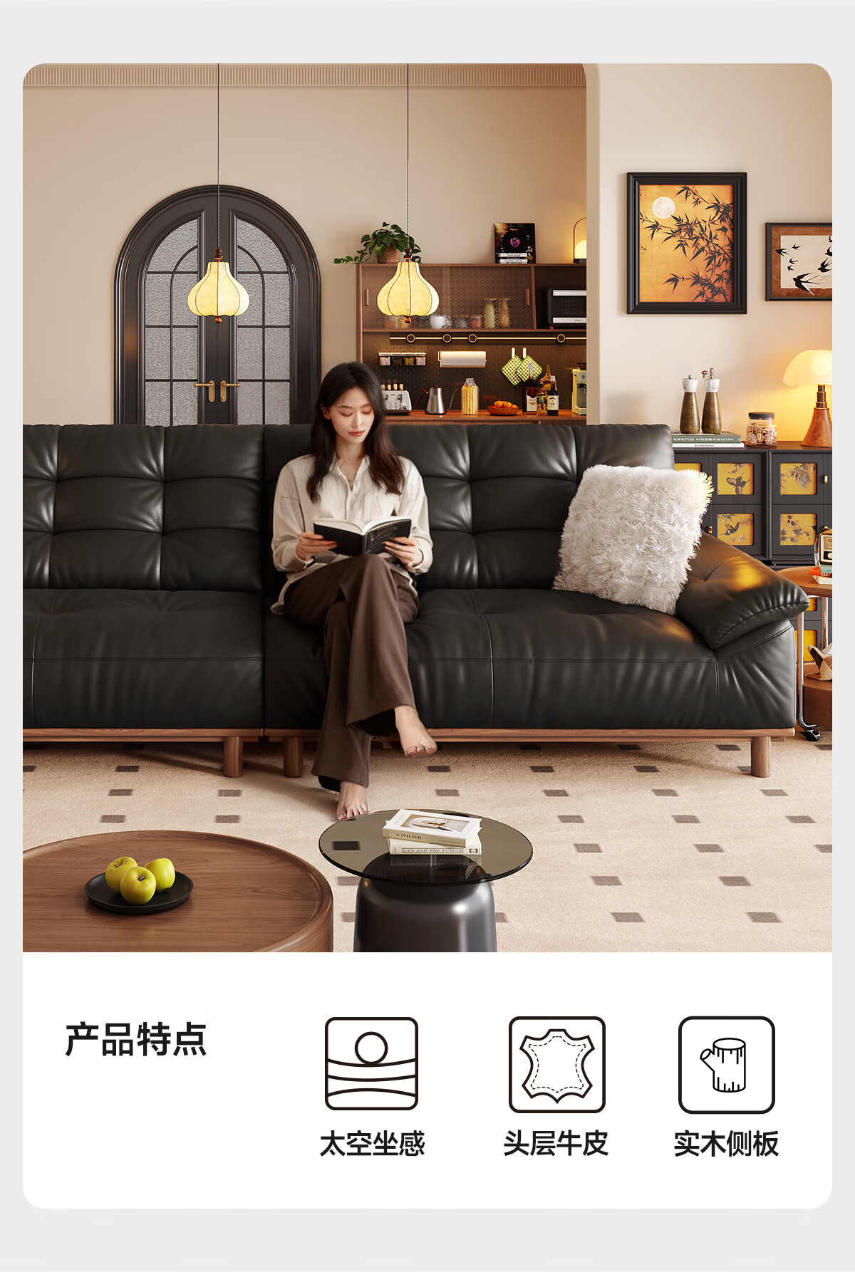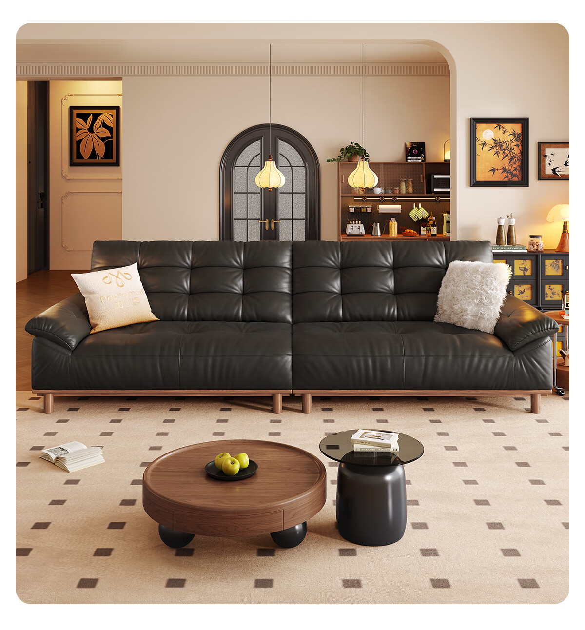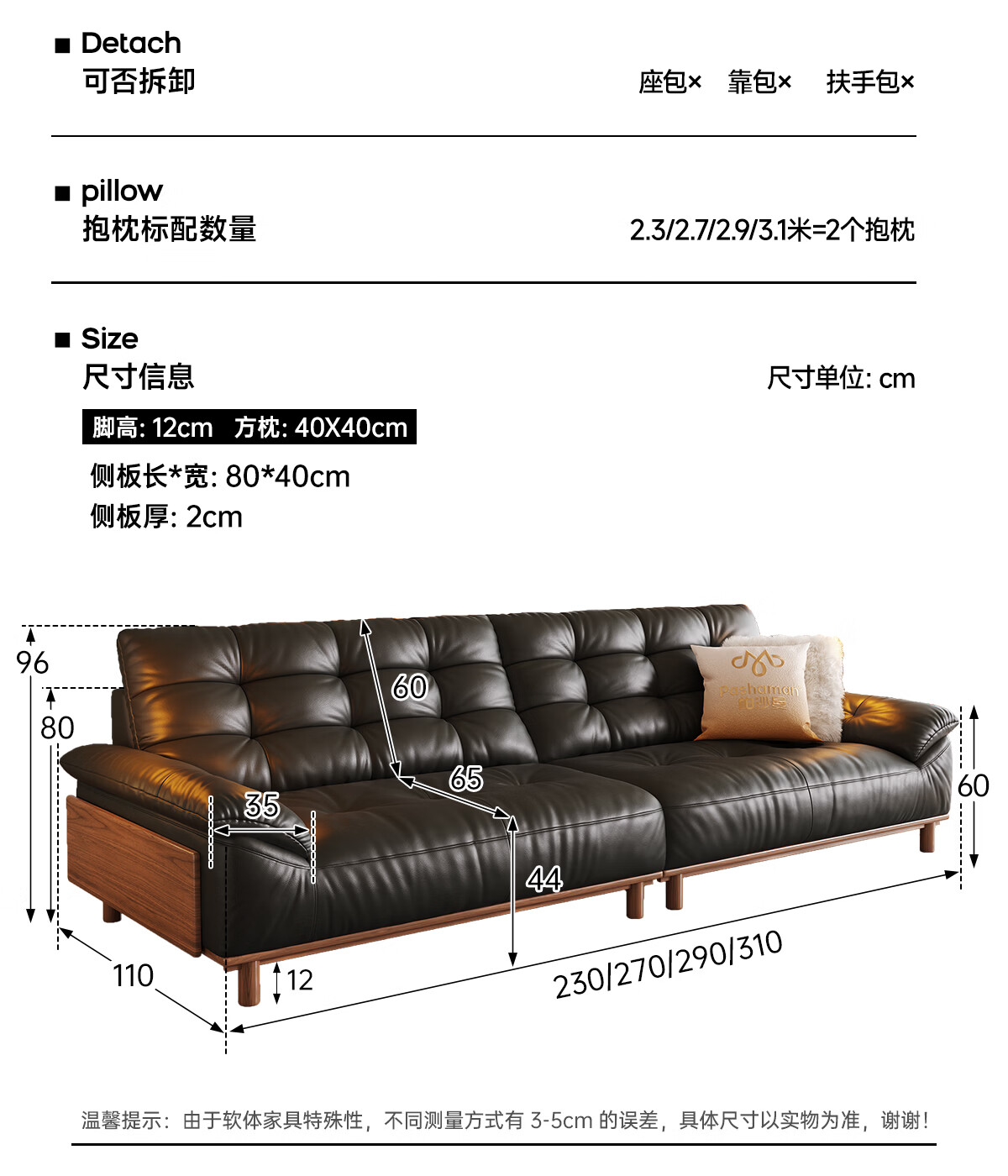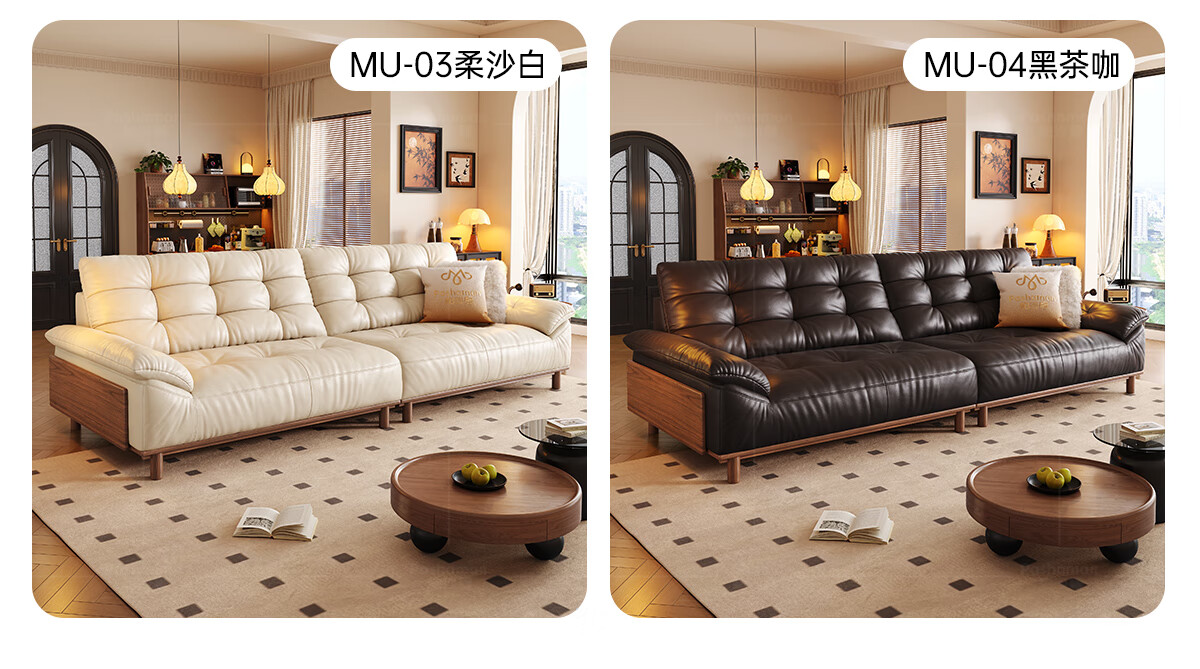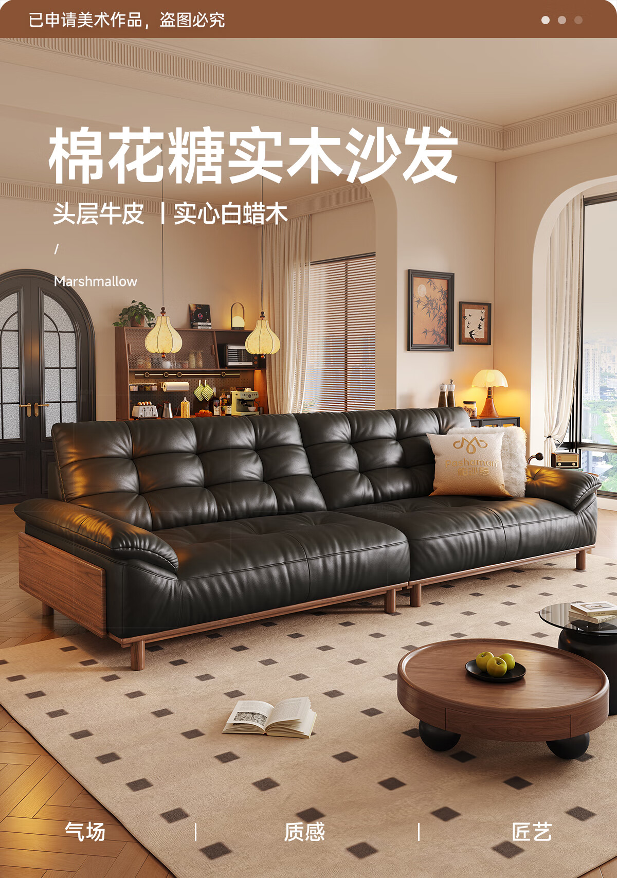 帕沙曼实木真皮沙发意式复古客厅家用小户型中古风直排棉花糖沙发7202ZP 2.3米多人位【全新零压坐感】 【舒享版】MU真皮 羽绒+ 轻弹棉+竹炭海绵