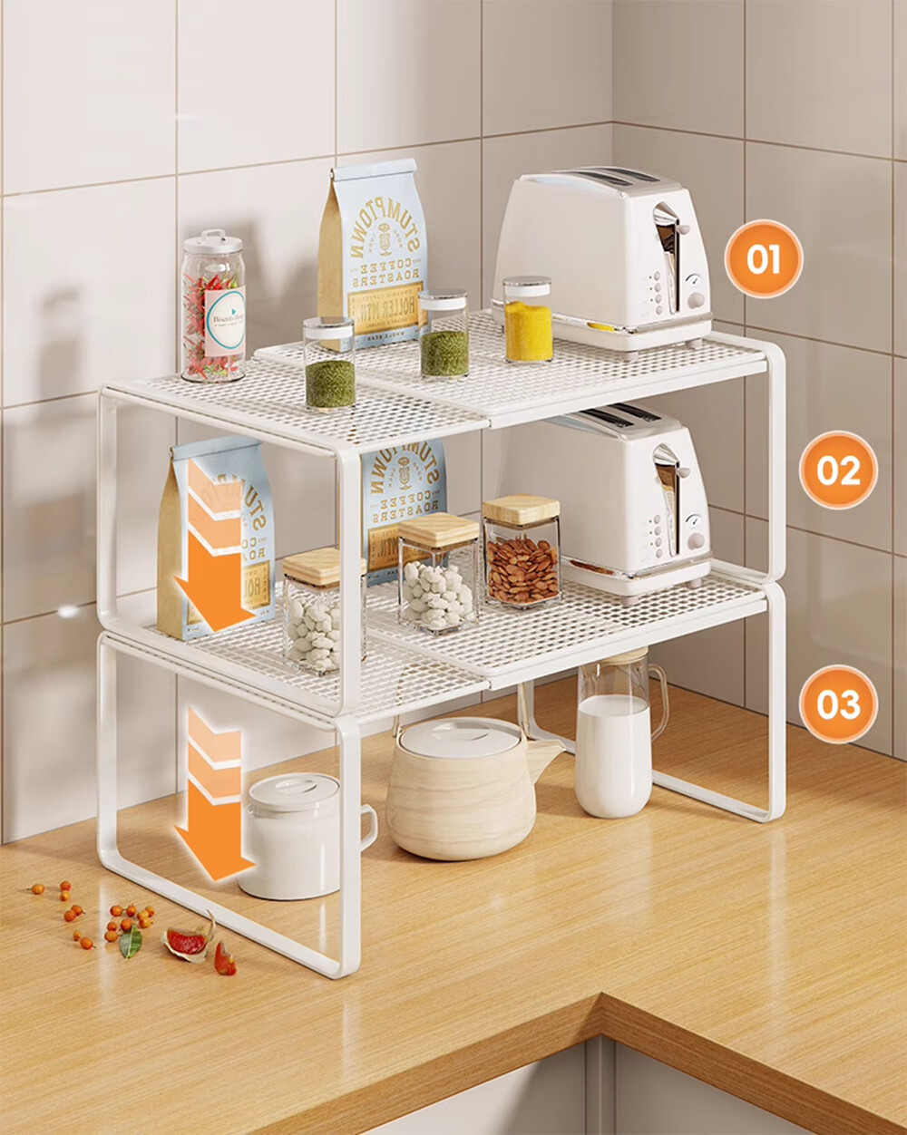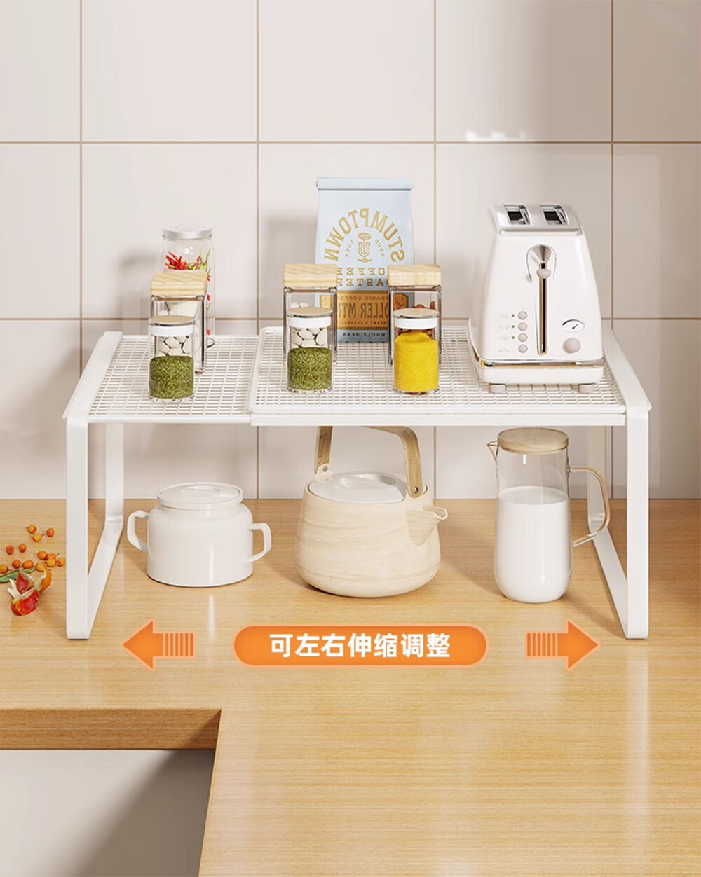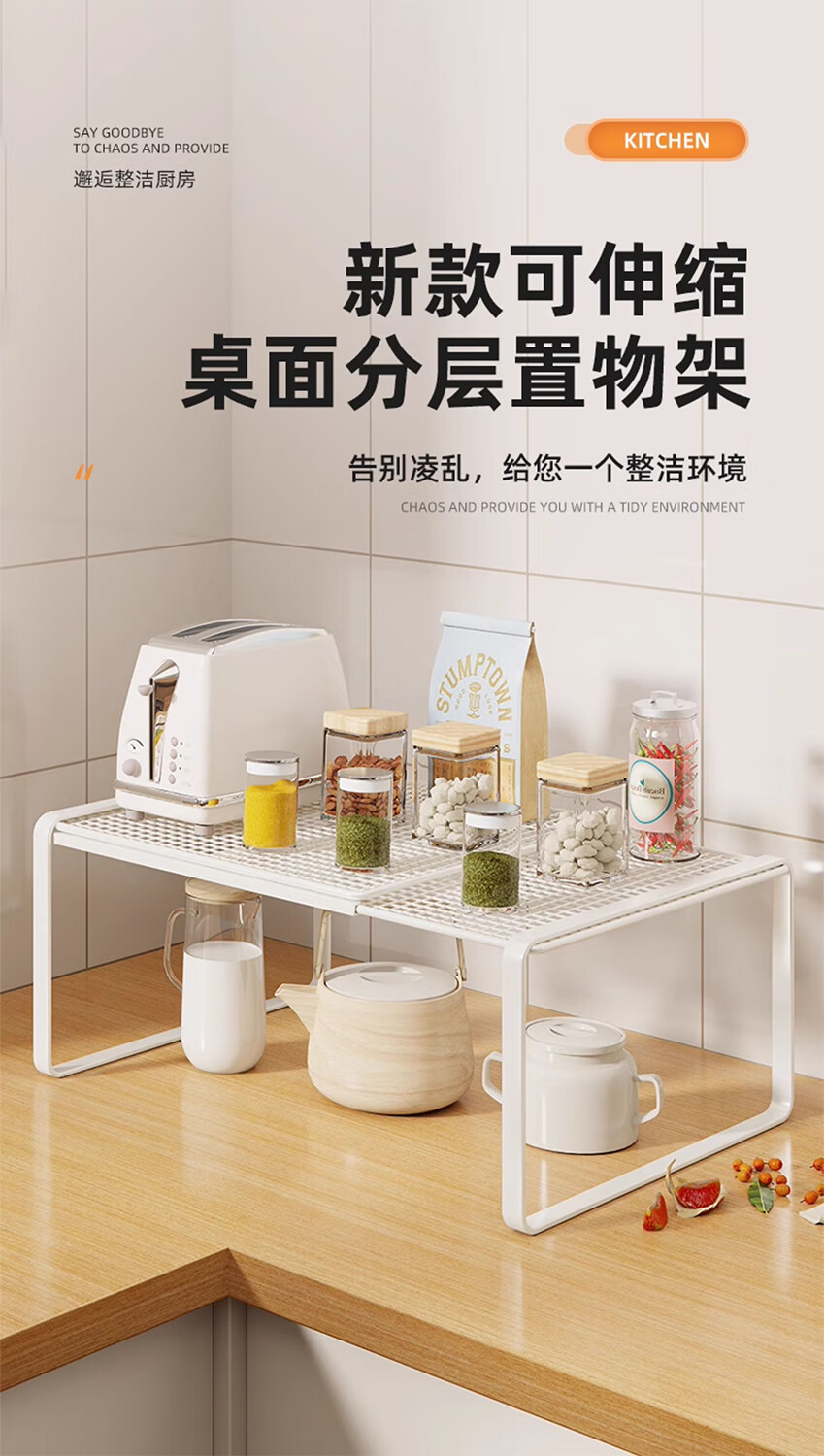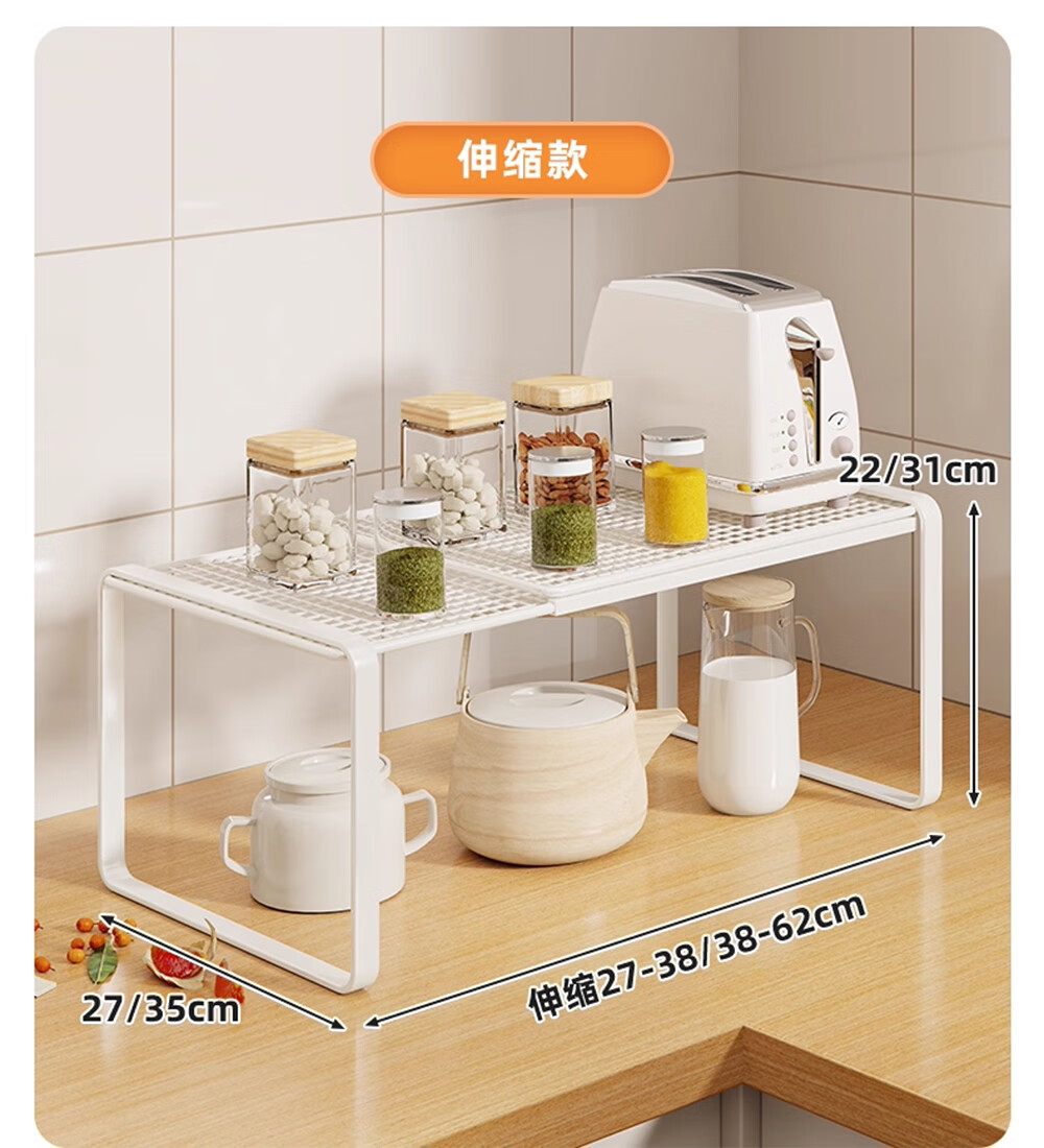 尔思家厨房台面置物架调料放置架高端多功能烤箱架子橱柜内置伸缩收纳架 【固定款】白色小号