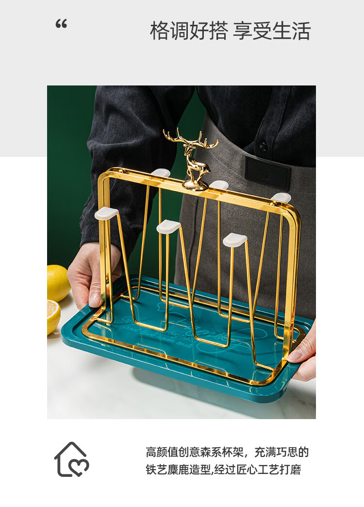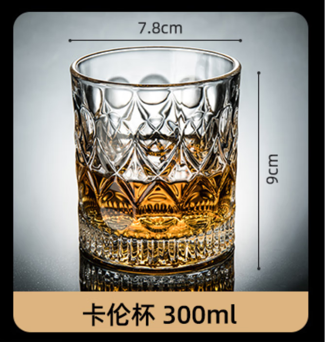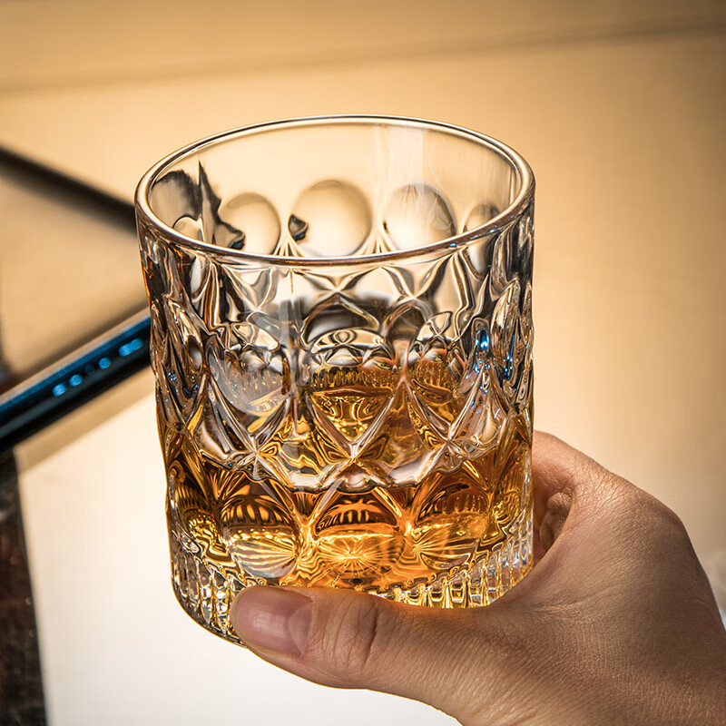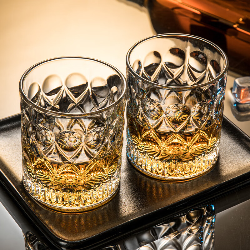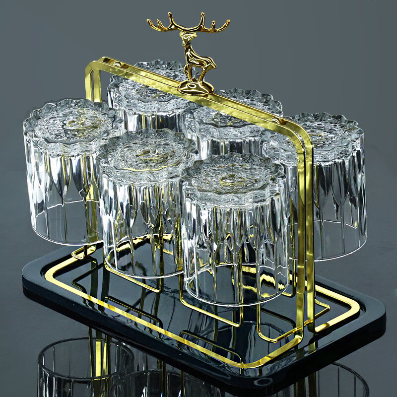 柏登居北欧家用高颜值玻璃杯洋酒杯威士忌杯喝水杯茶杯果汁杯啤酒杯套装 卡伦杯+金色杯架送底盘 8件 6只
