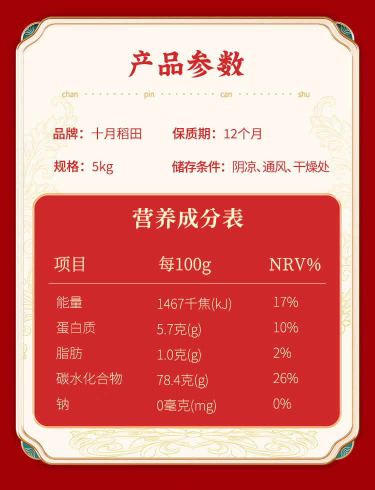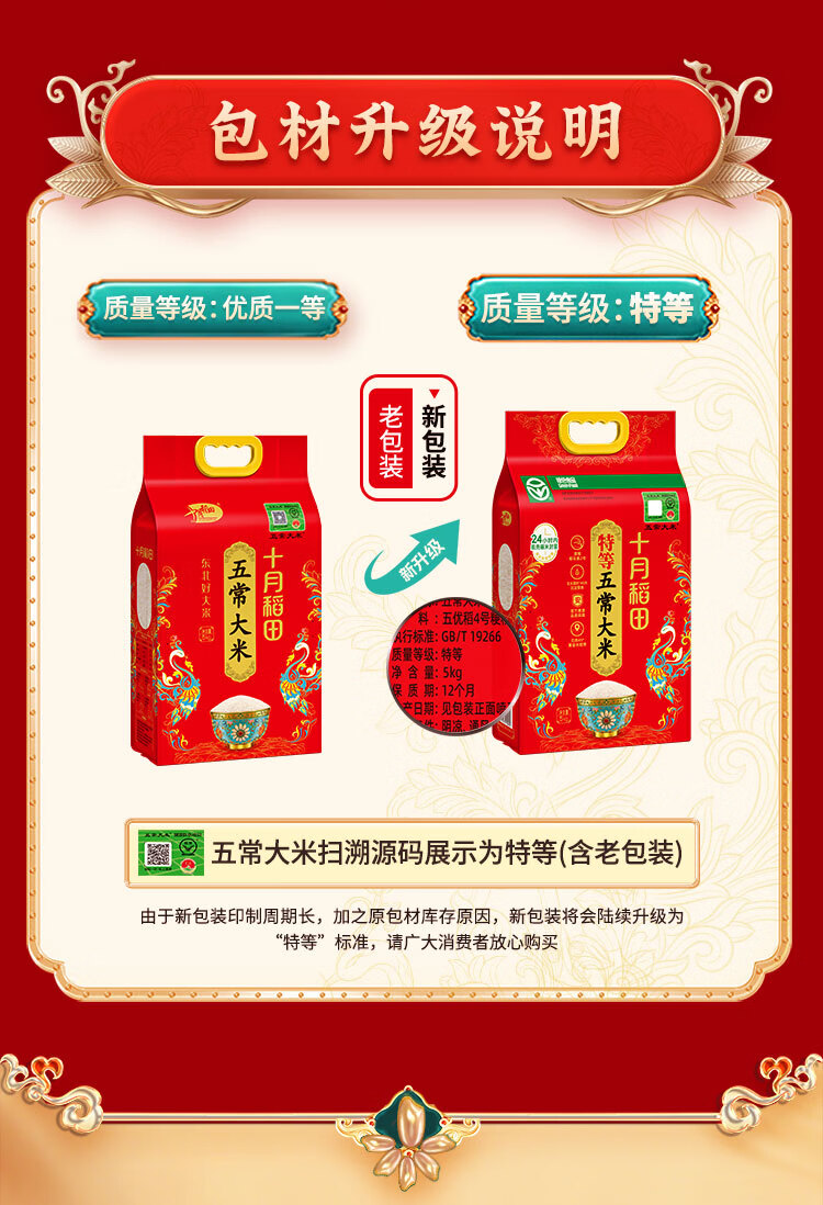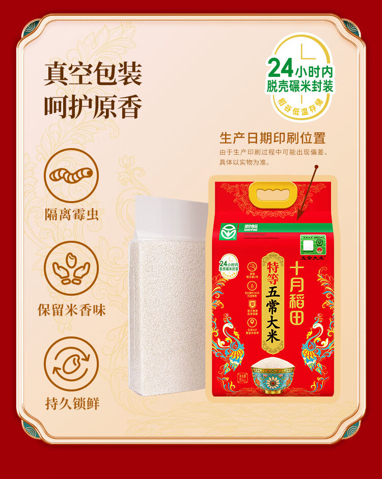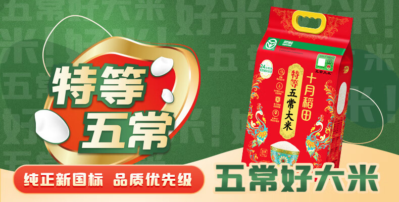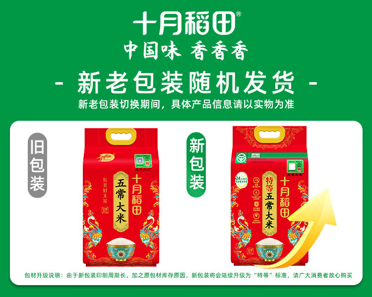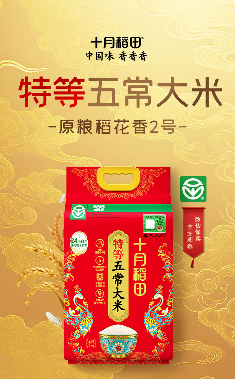 十月稻田 25年新米 特等五常大米 绿色食品 10斤(溯源 原粮稻花香2号 5kg)