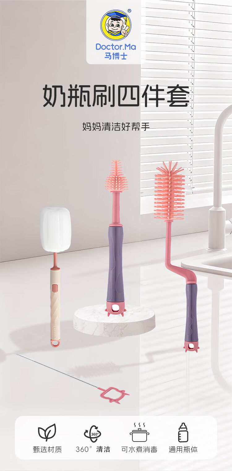 马博士婴儿奶瓶刷清洗刷杯刷奶嘴刷吸管刷洗奶瓶刷子清洁套装神器4件套