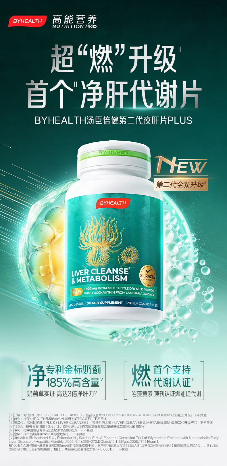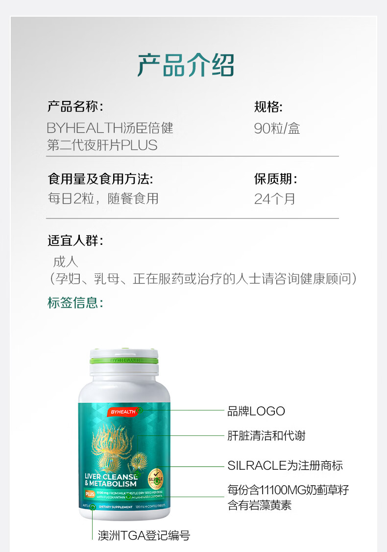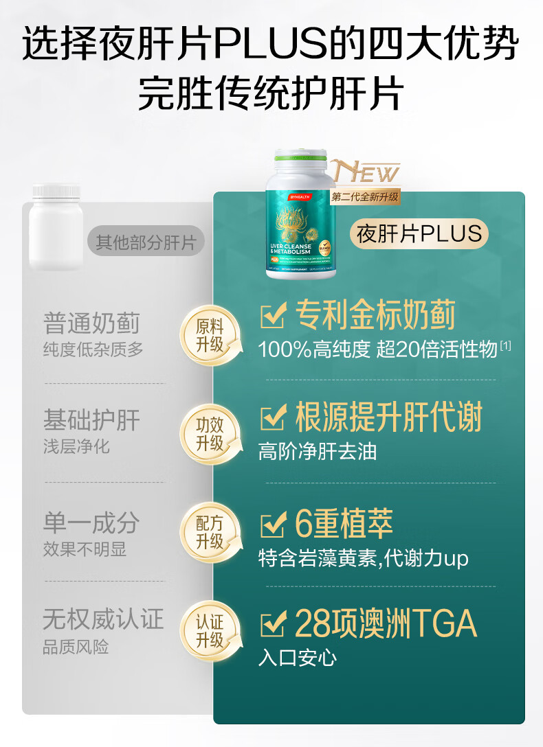 汤臣倍健(BYHEALTH)护肝片二代水飞蓟奶蓟草养肝净肝熬夜解酒脂肪肝转氨酶保健品 夜肝片40粒*3【喝酒应酬保肝护肝】