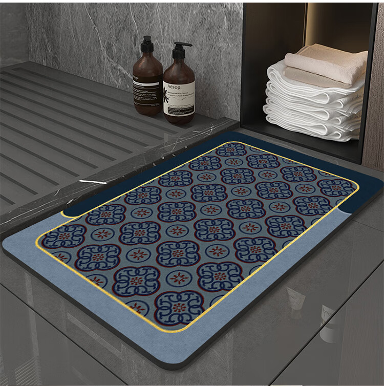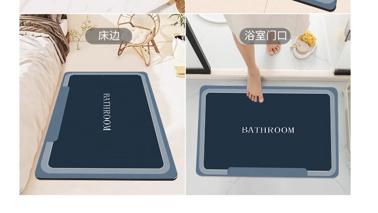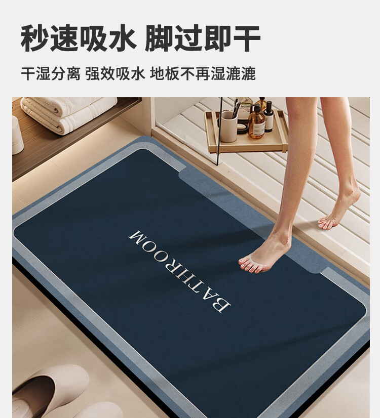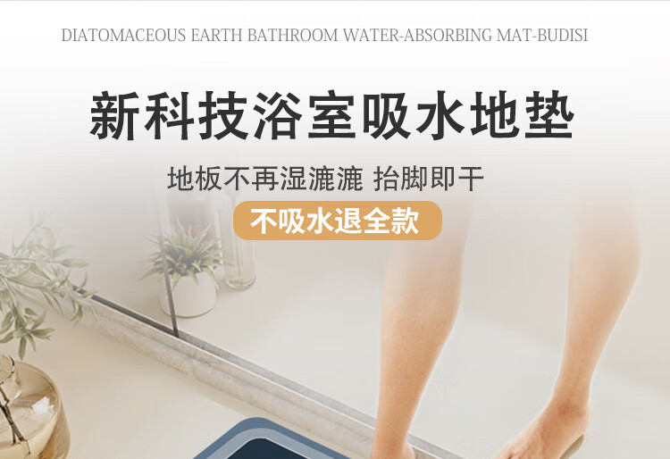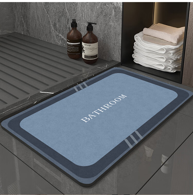 布迪思卫生间地垫硅藻泥浴室门口防滑垫卫浴洗手间吸水垫子轻奢简约款 沐浴时光 45*70CM(吸水速干)