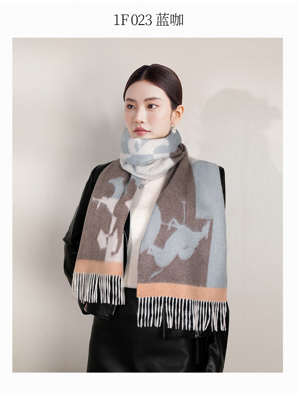 江南故事秋冬保暖100%羊绒围巾女爱在深秋时尚百搭加厚披肩送老婆女友礼物 蓝咖1F023
